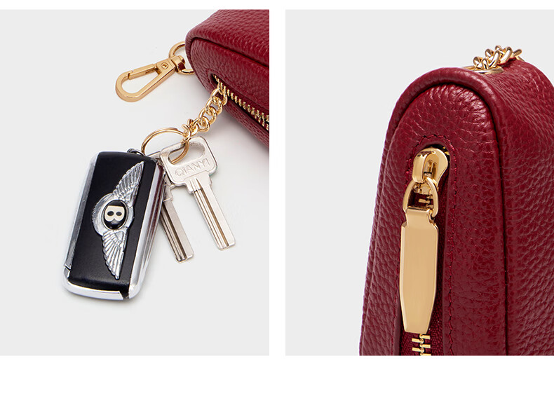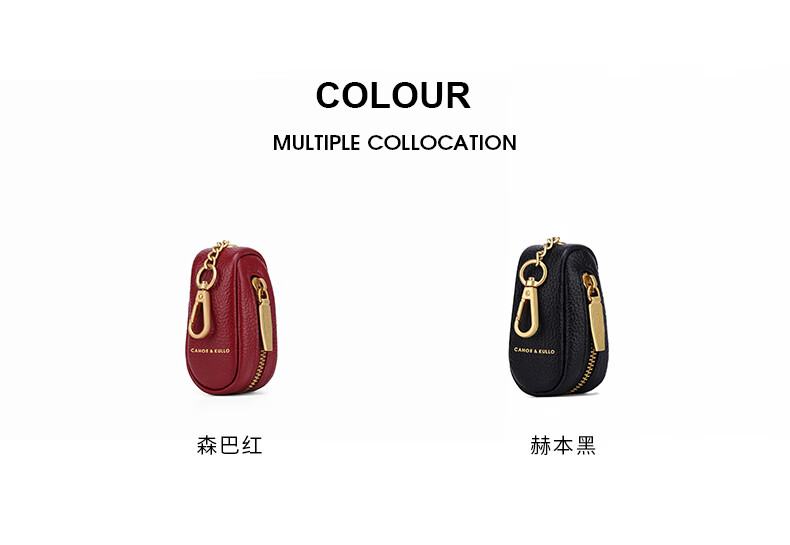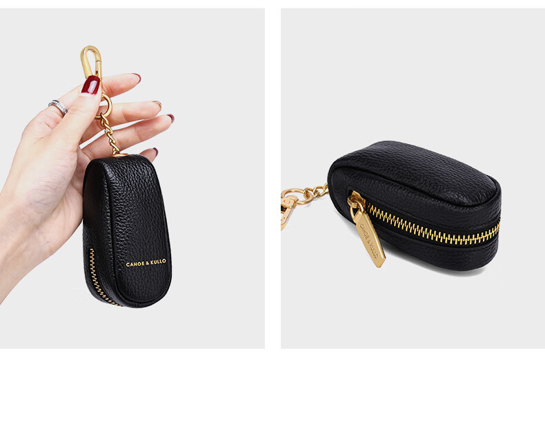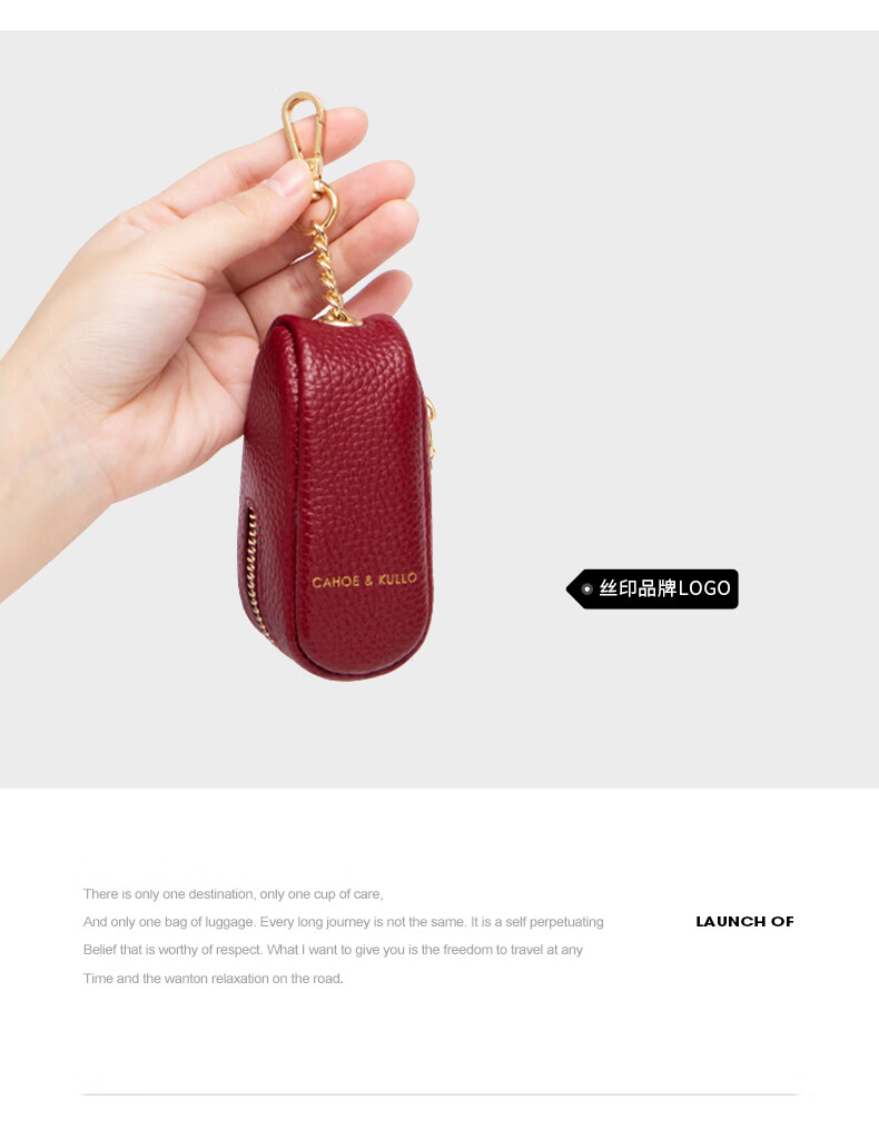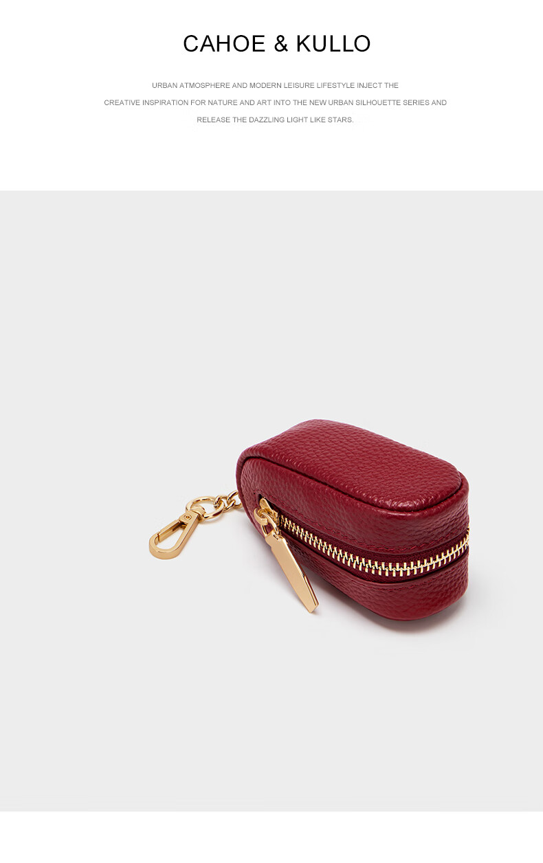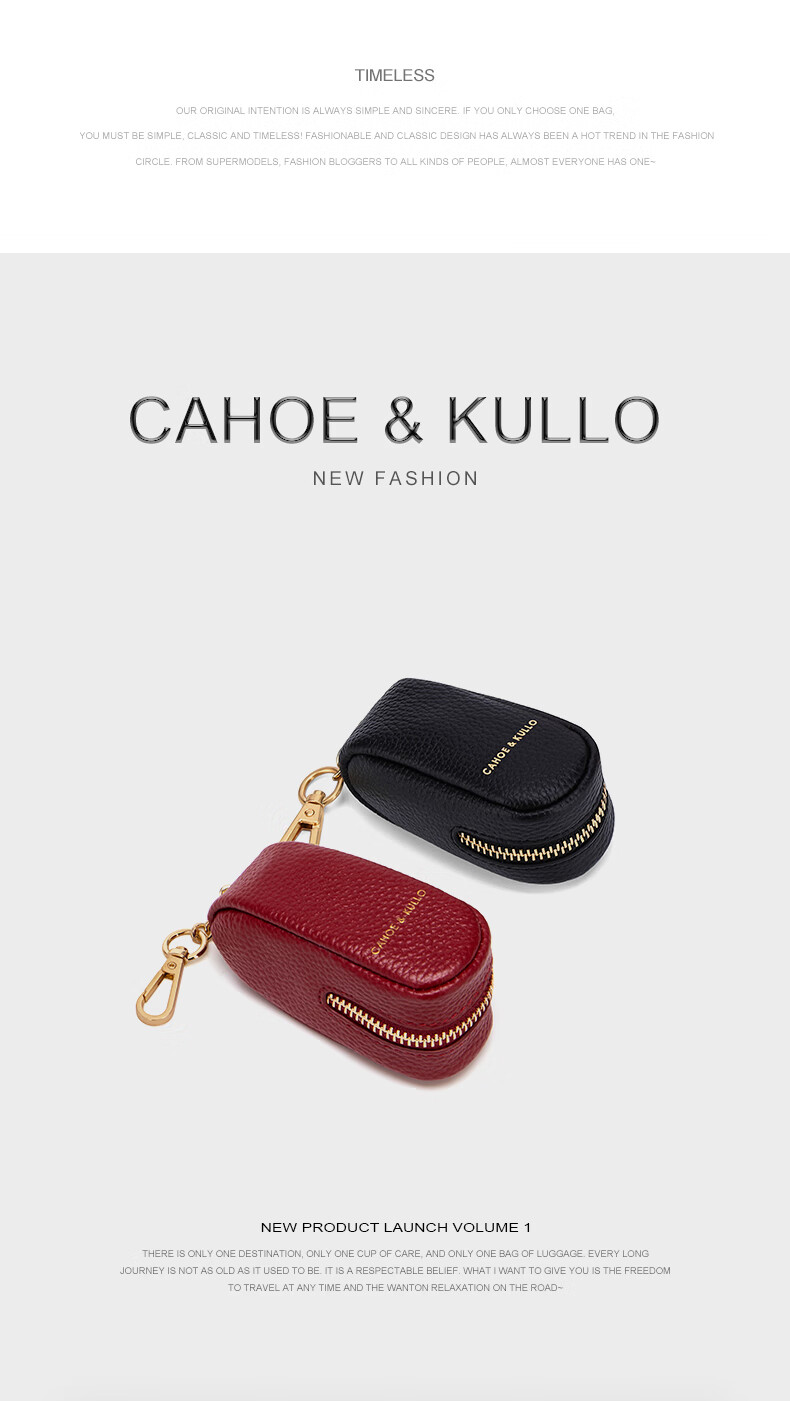 CAHOE KULLO first-layer cowhide car key bag multi-functional cowhide key bag small bag unisex keychain Samba red gift for girlfriend, wife, best friend, birthday and Valentine's Day gift
