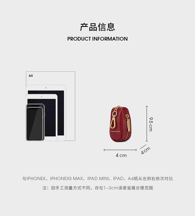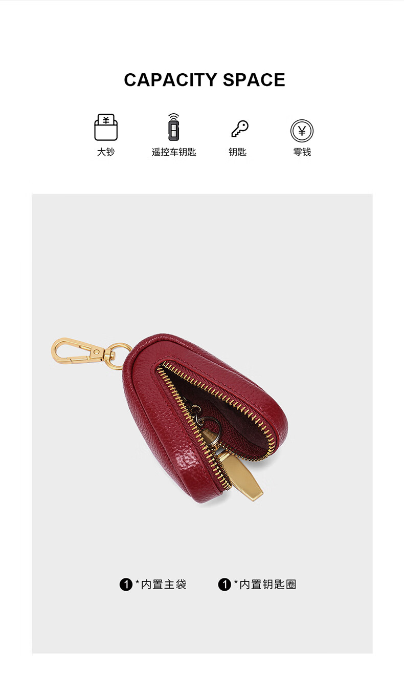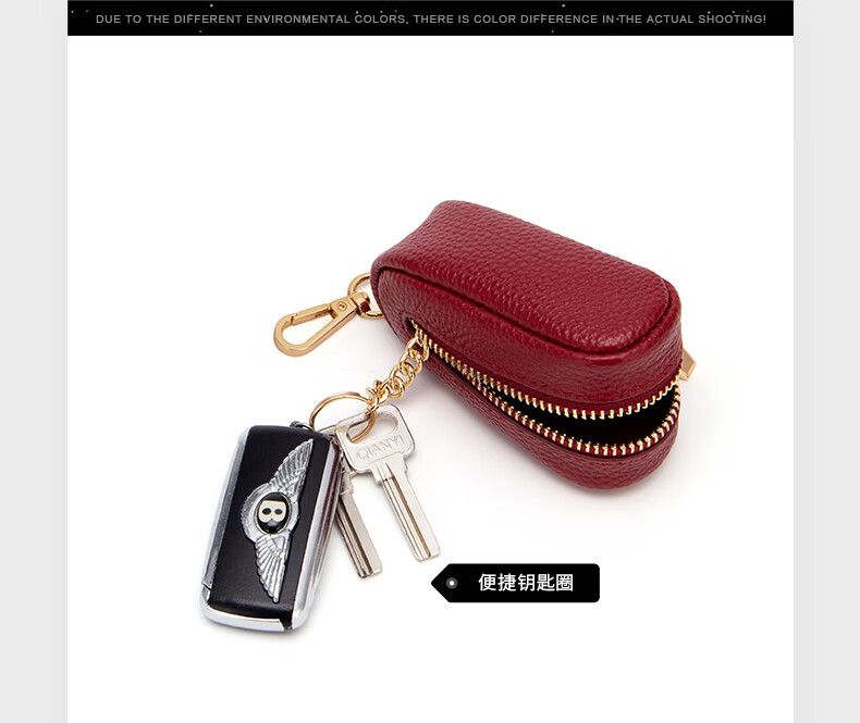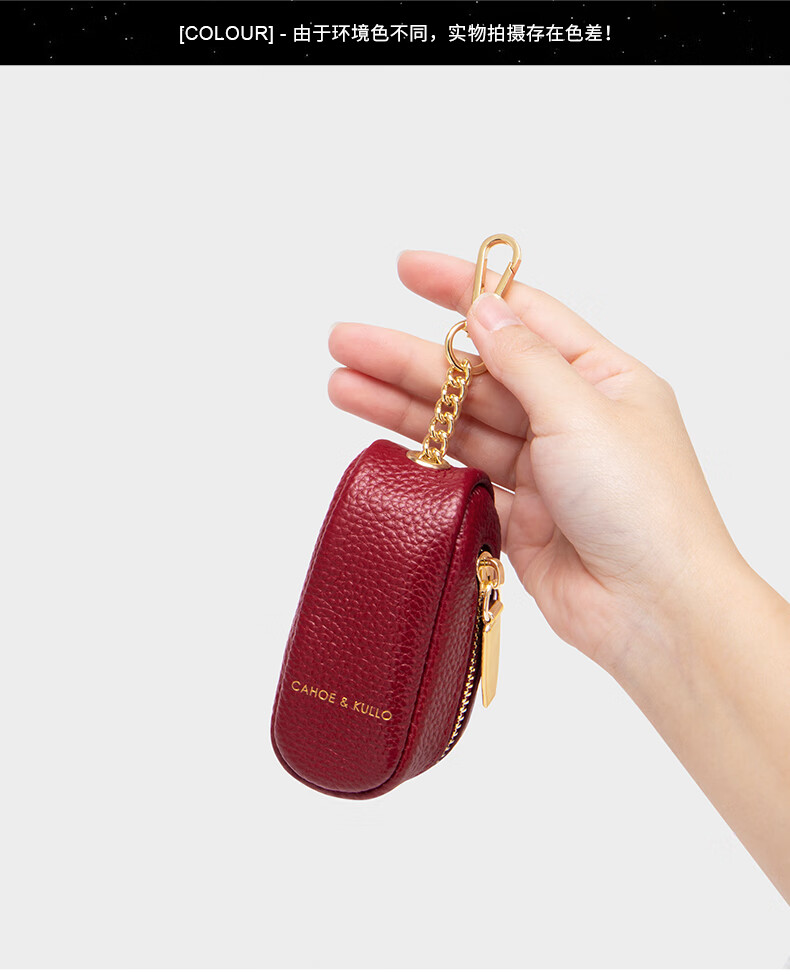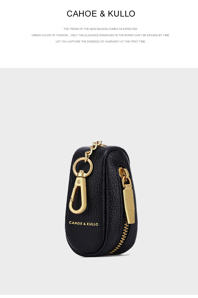 CAHOE KULLO first-layer cowhide car key bag multi-functional cowhide key bag small bag unisex keychain Samba red gift for girlfriend, wife, best friend, birthday and Valentine's Day gift
