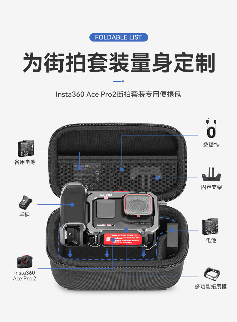 Fat cow suitable shadow stone Insta360 AcePro2 sports camera street photography storage bag AcePro street photography set storage box lens cover ACE tempered film telescopic tripod 360AcePro2/AcePro full set of storage bag