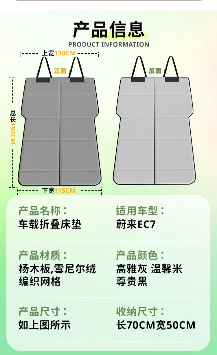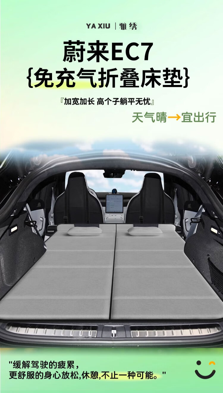 Yaxiu Weilai ec7 mattress rear sleeping pad car special rear seat car folding bed sleeping artifact suitable for gray Comes with headrest + storage bag 24 models Weilai EC7 SF Express