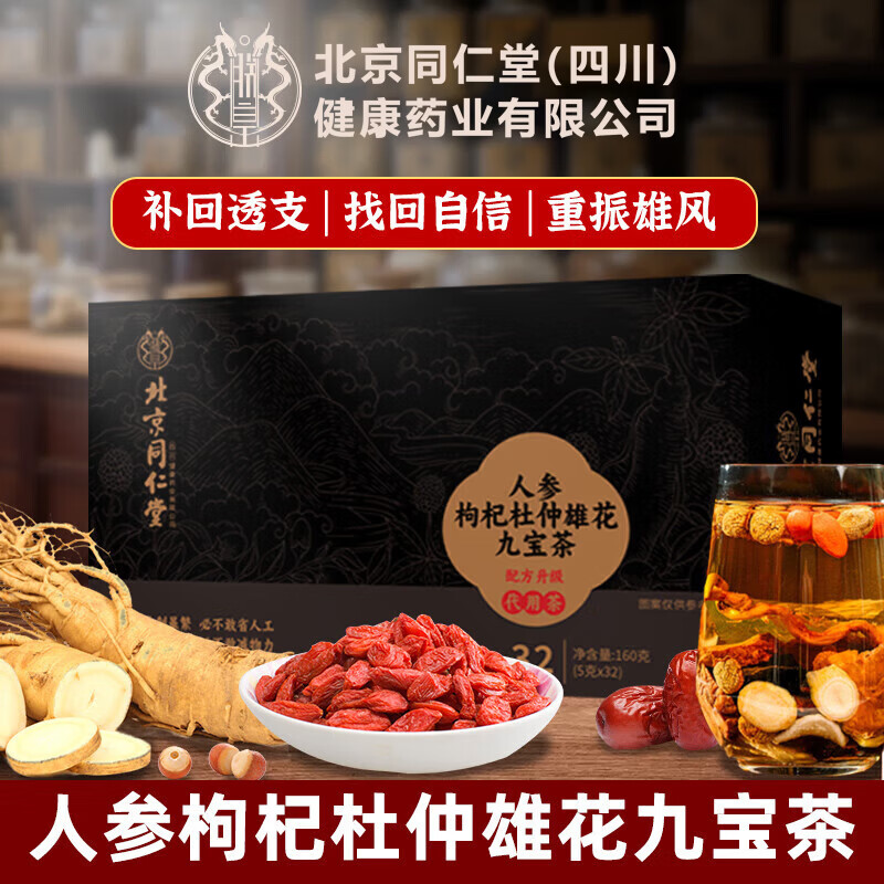 Beijing Tong Ren Tang ginseng, wolfberry, nine treasure tea, nourishing kidney and strengthening yang, health tea, mulberry, maca, polygonatum, red date, men staying up late tonic tea, three boxes, premature ejaculation, sensitive masturbation, kidney yang deficiency, Chinese medicine, nourishing kidney and strengthening yang, eight treasures