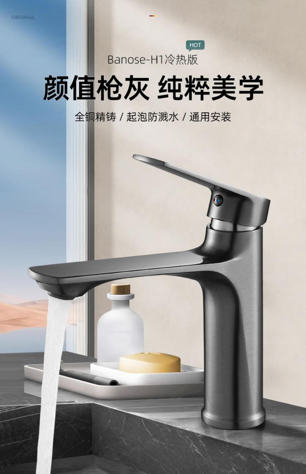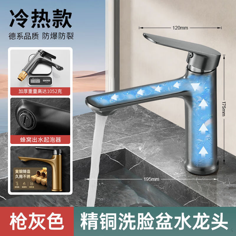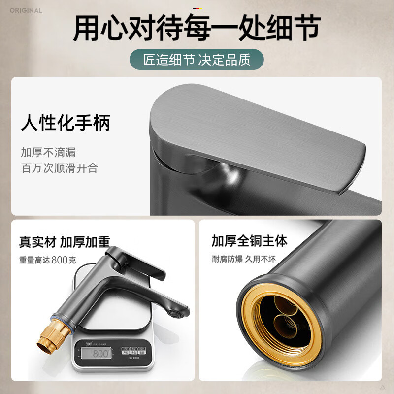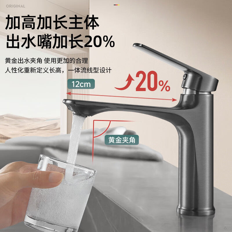 JOMOO official flagship all-copper hot and cold two-in-one basin under-counter basin washbasin bathroom cabinet faucet silver basin faucet with 60 cm long hose