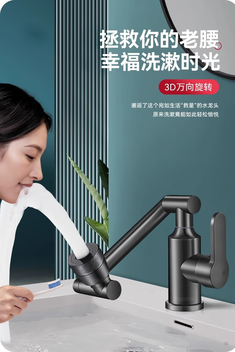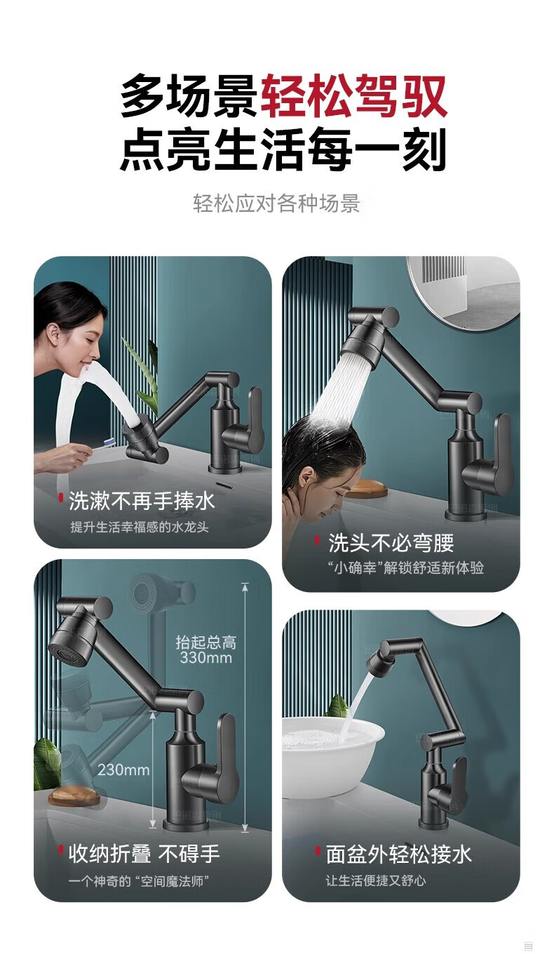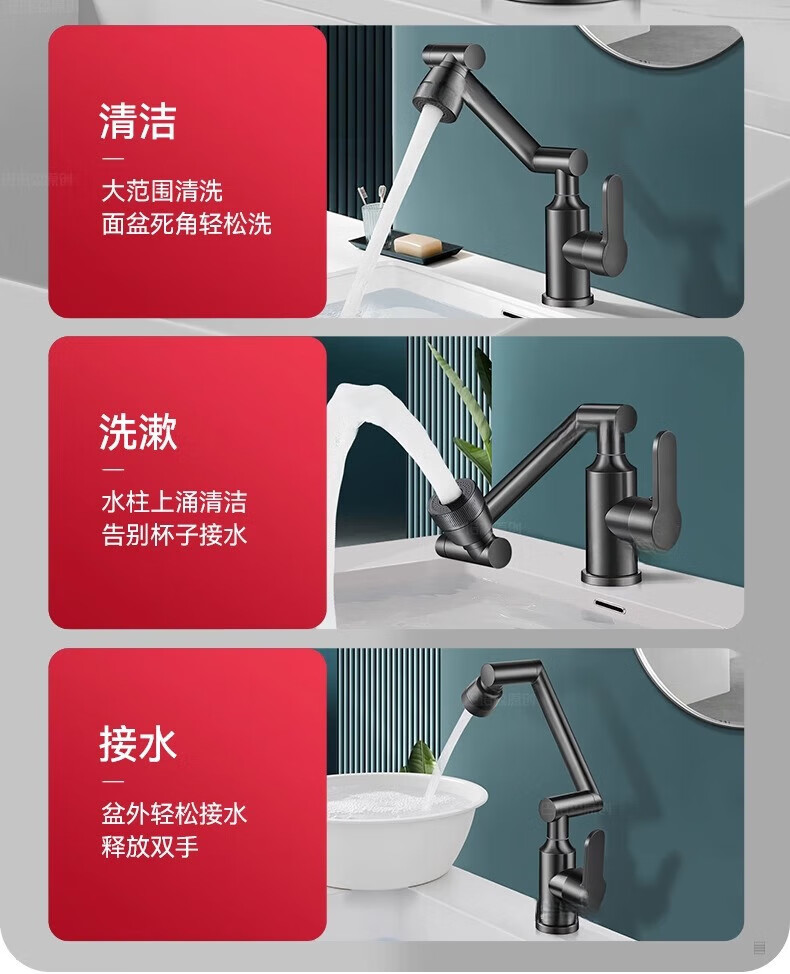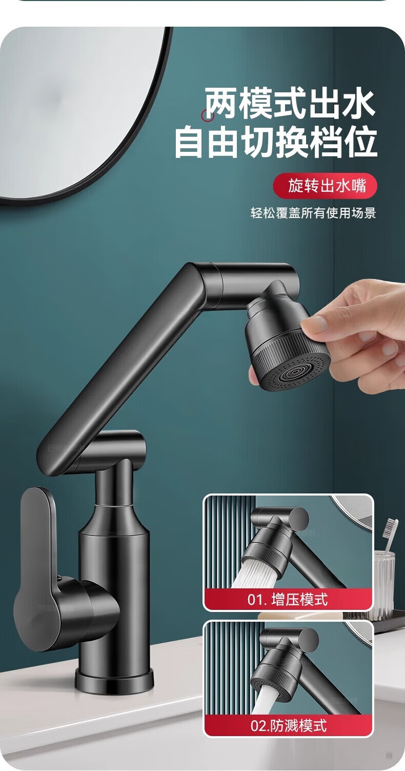 JOMOO official flagship all-copper universal mechanical arm rotating faucet hot and cold two-in-one household faucet anti-splash gun gray all-copper-hot and cold all-copper water head free 80cm tube