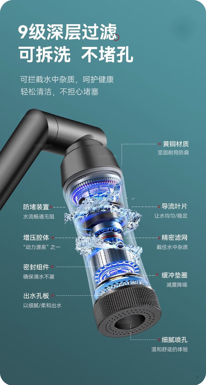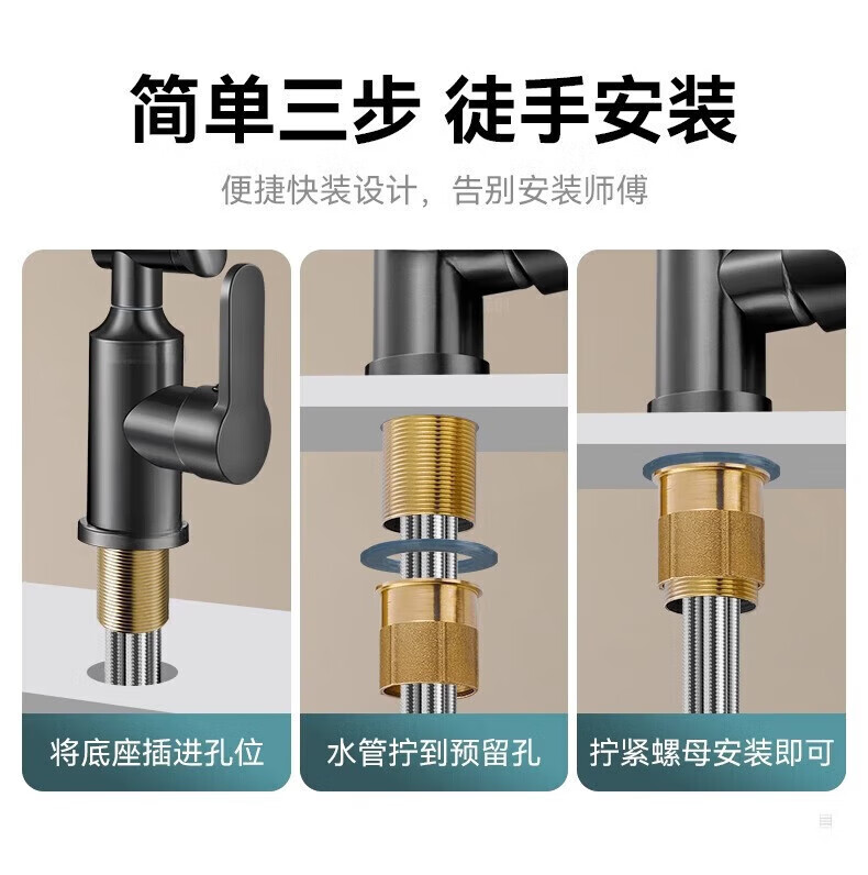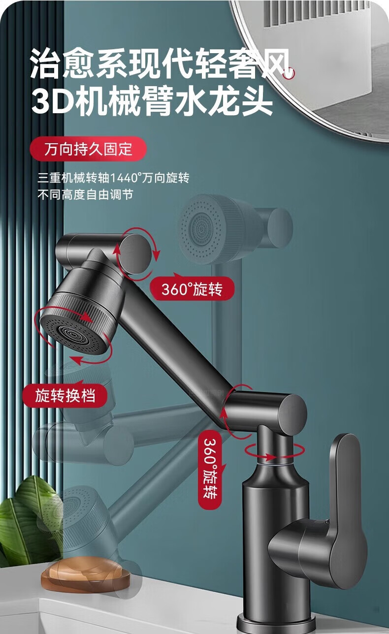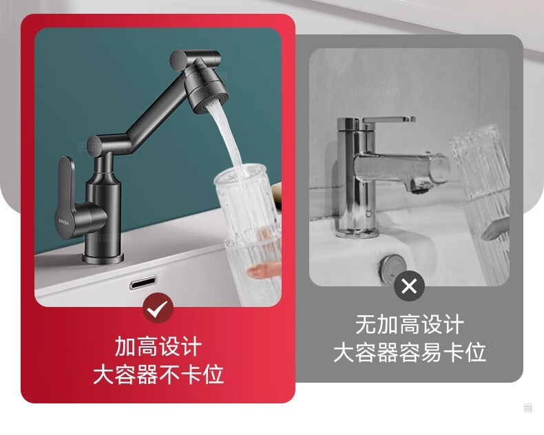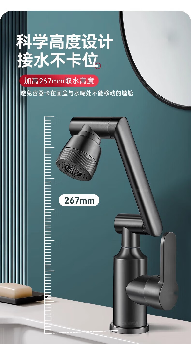 JOMOO official flagship all-copper universal mechanical arm rotating faucet hot and cold two-in-one household faucet anti-splash gun gray all-copper-hot and cold all-copper water head free 80cm tube