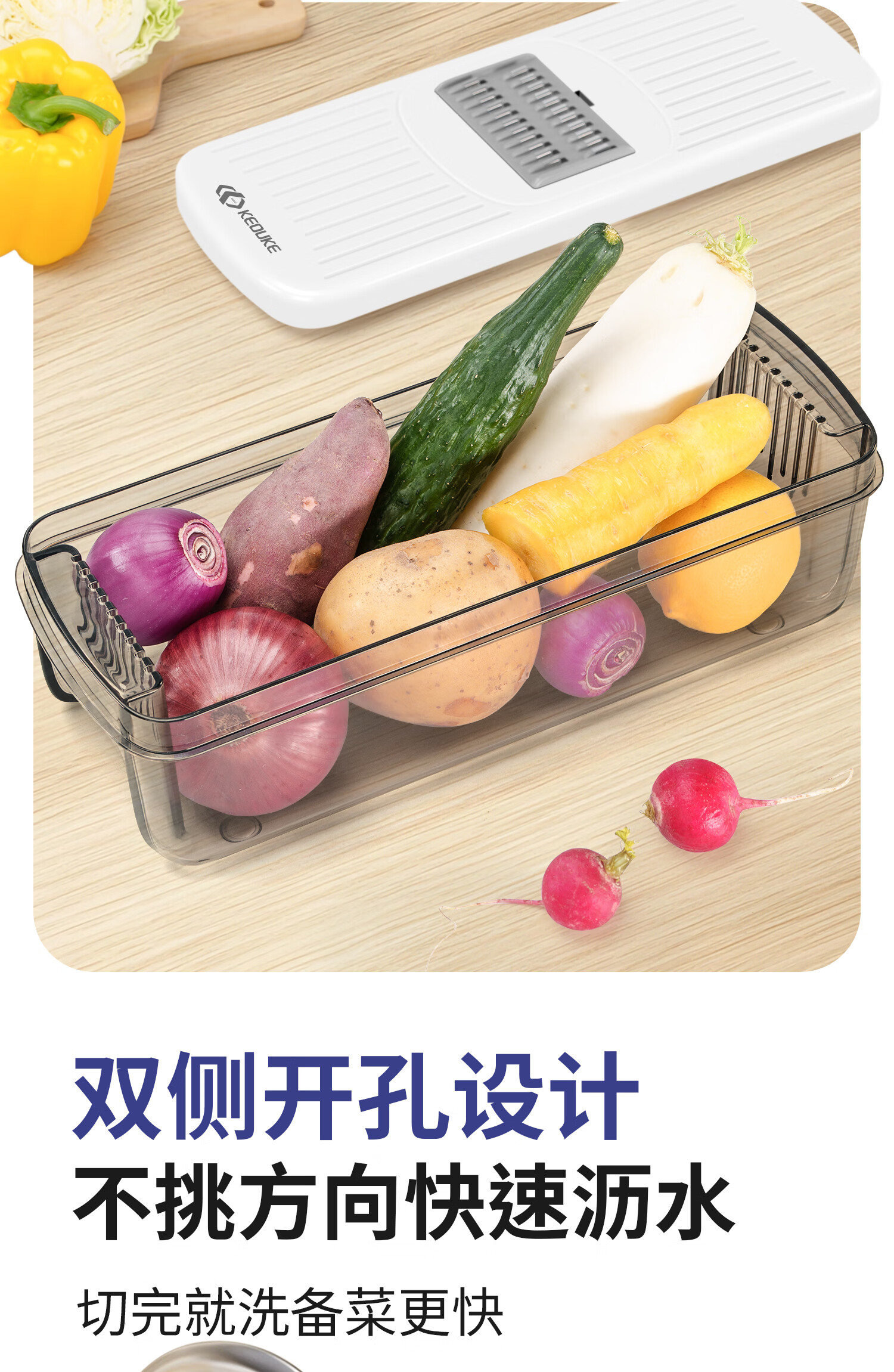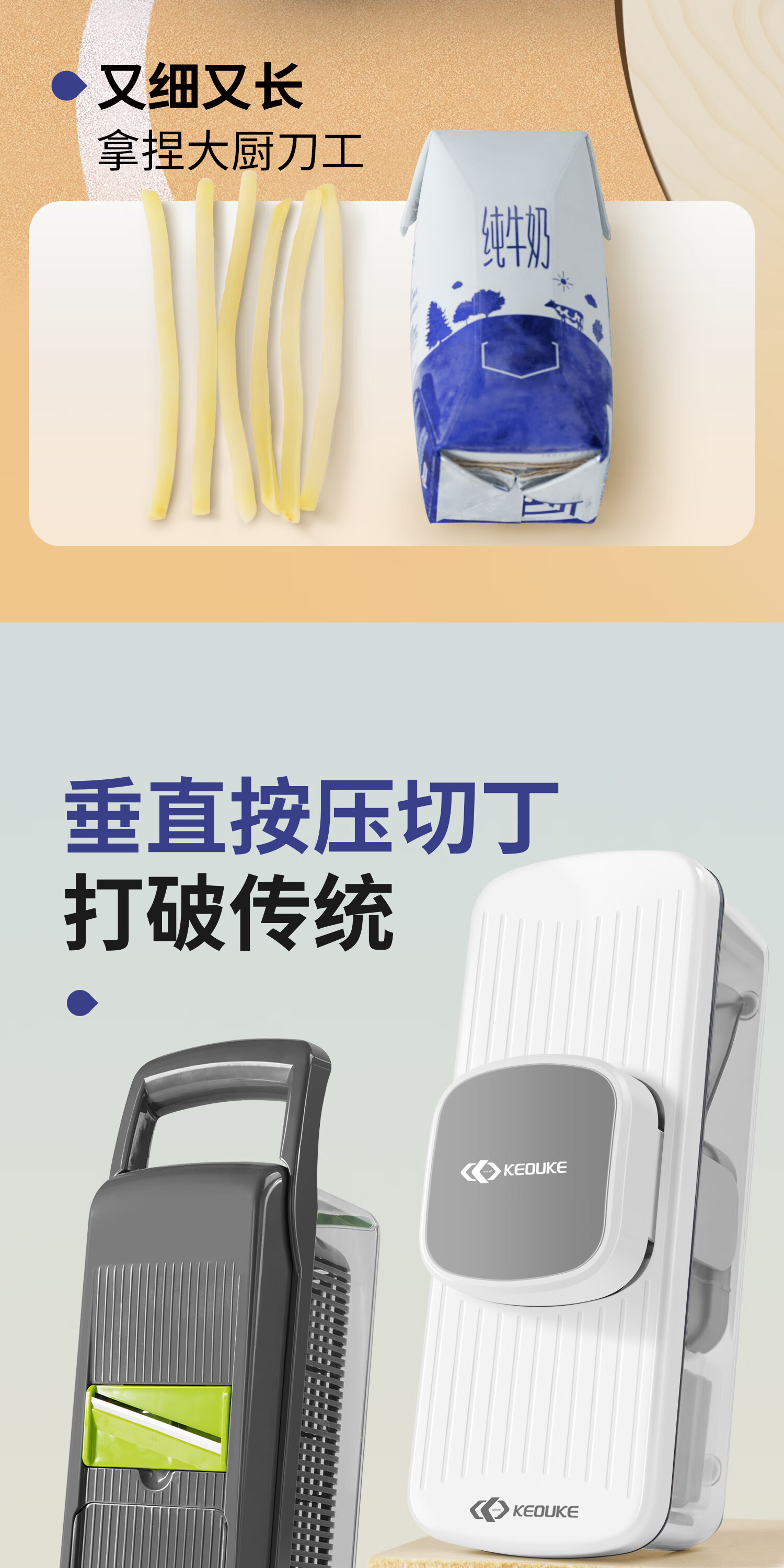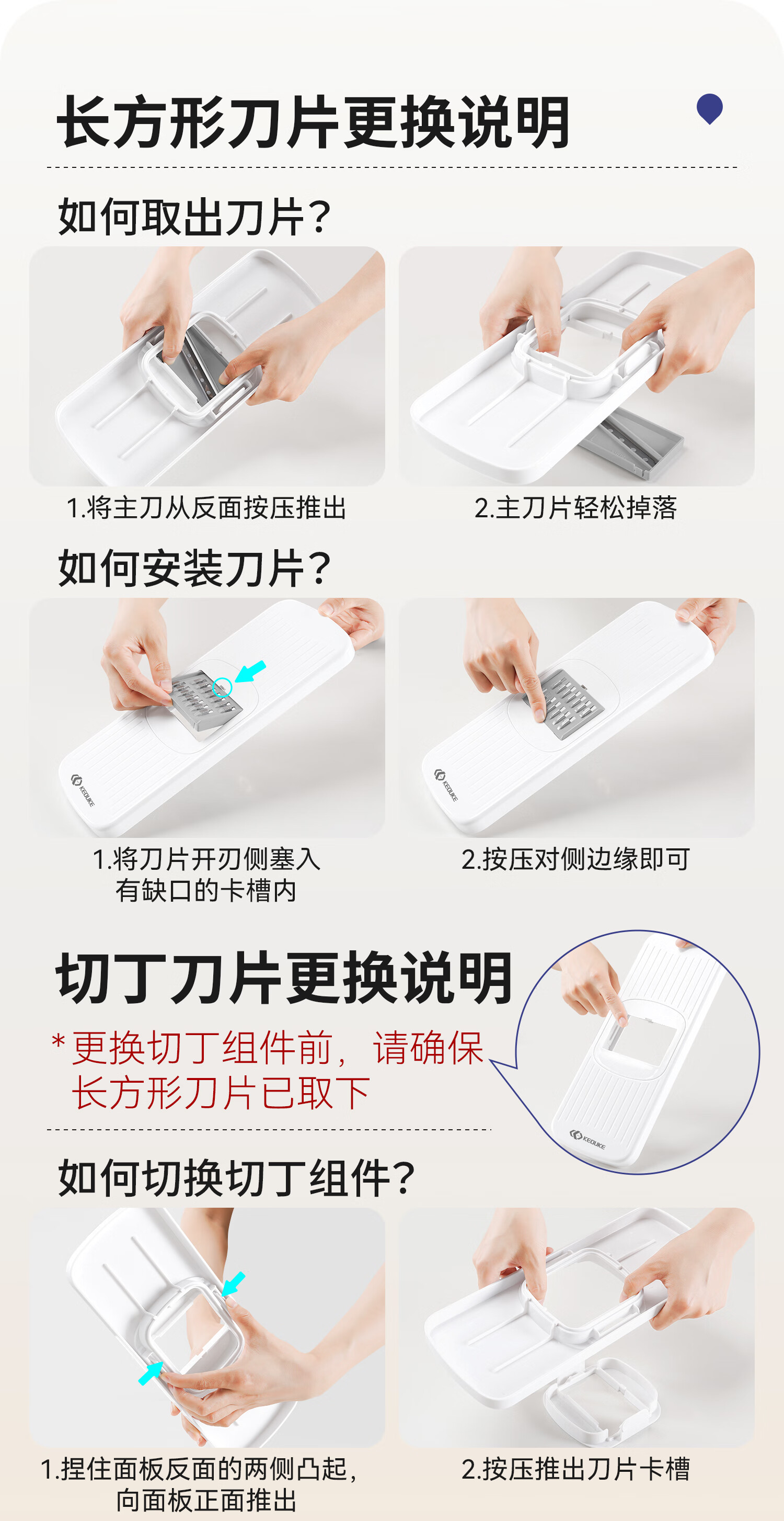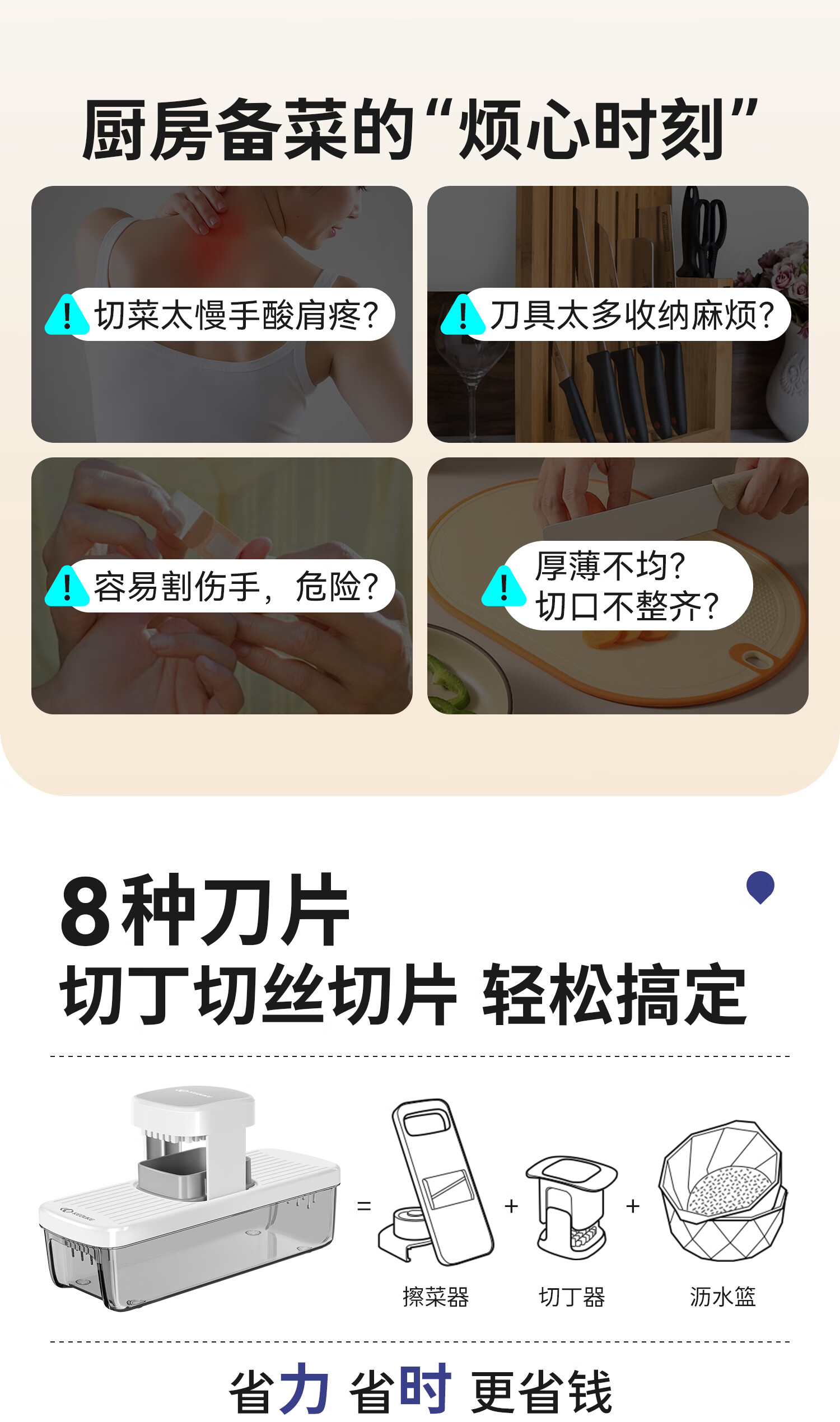 Keok stainless steel vegetable cutting tool dicer potato shredded multi-functional radish grating slicer equipped with six knives + two dicing knives