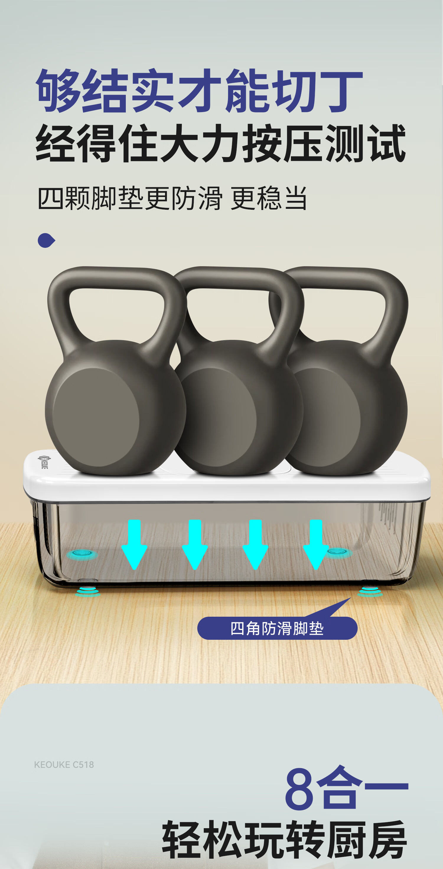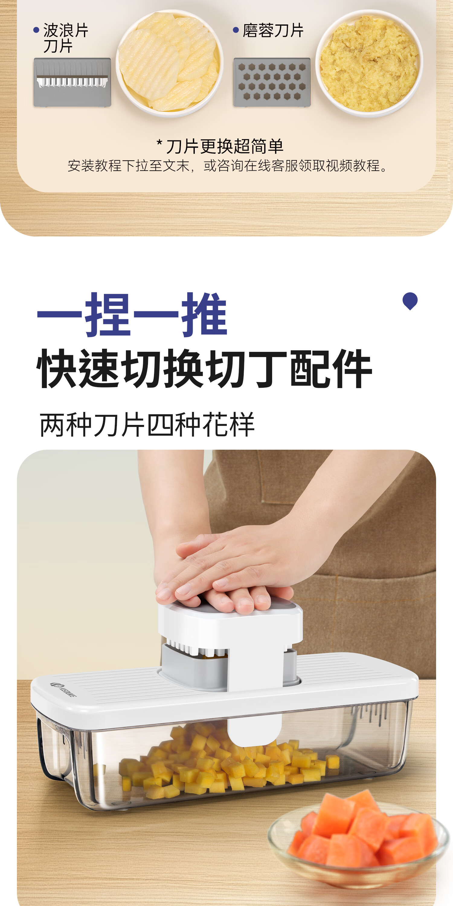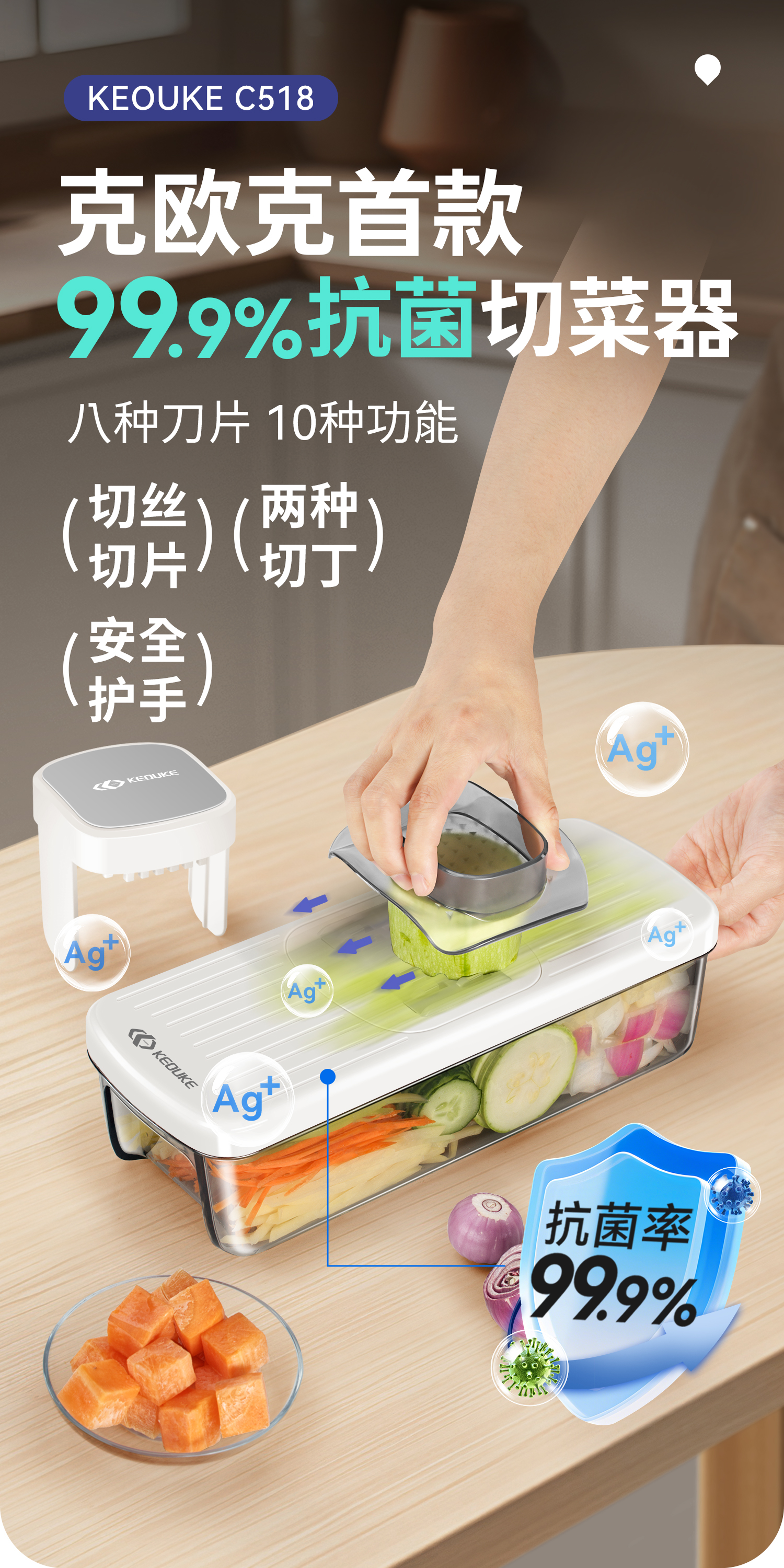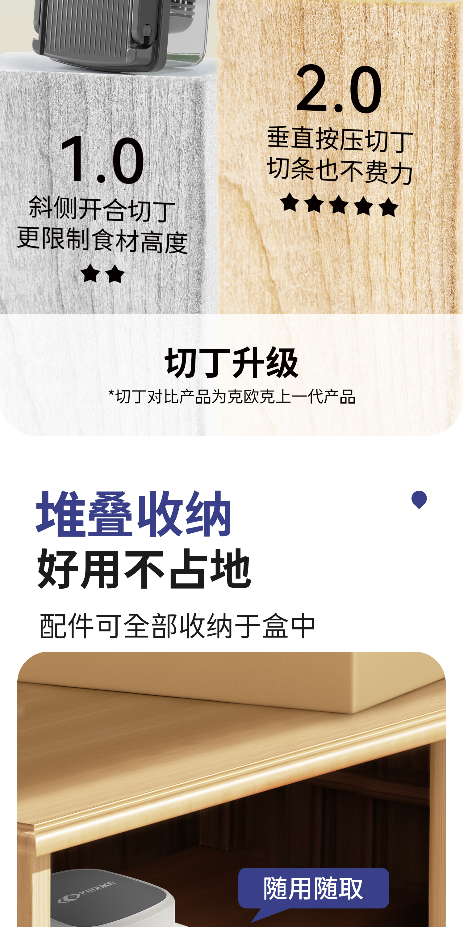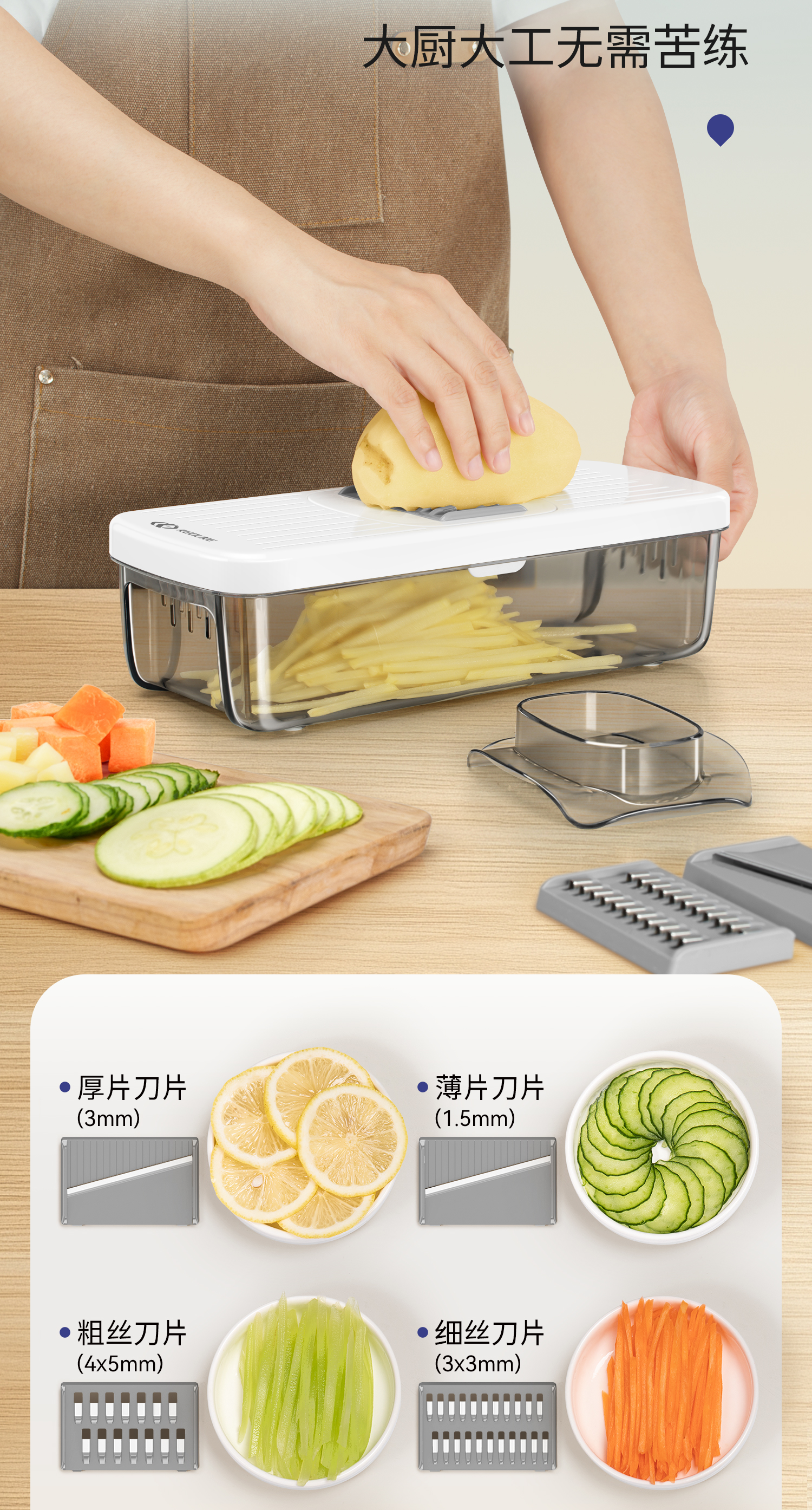 Keok stainless steel vegetable cutting tool dicer potato shredded multi-functional radish grating slicer equipped with six knives + two dicing knives