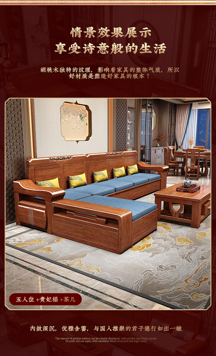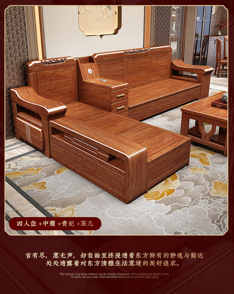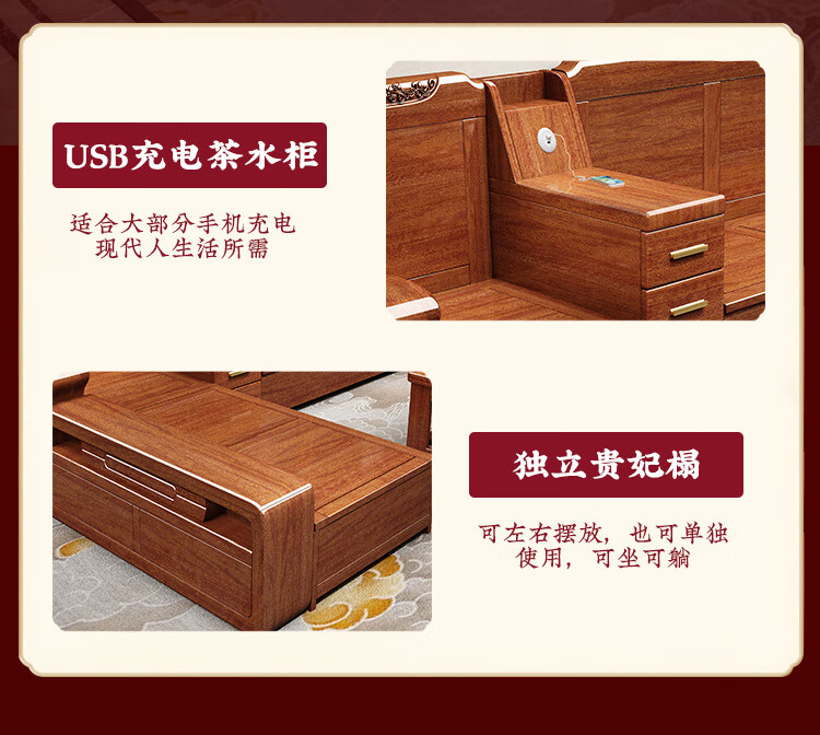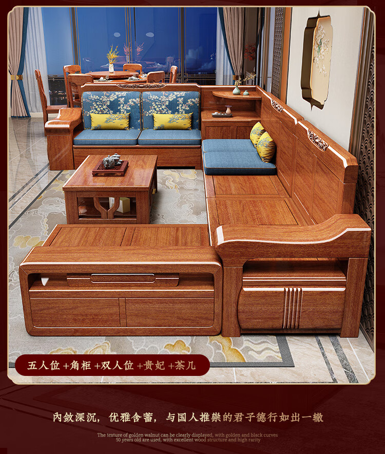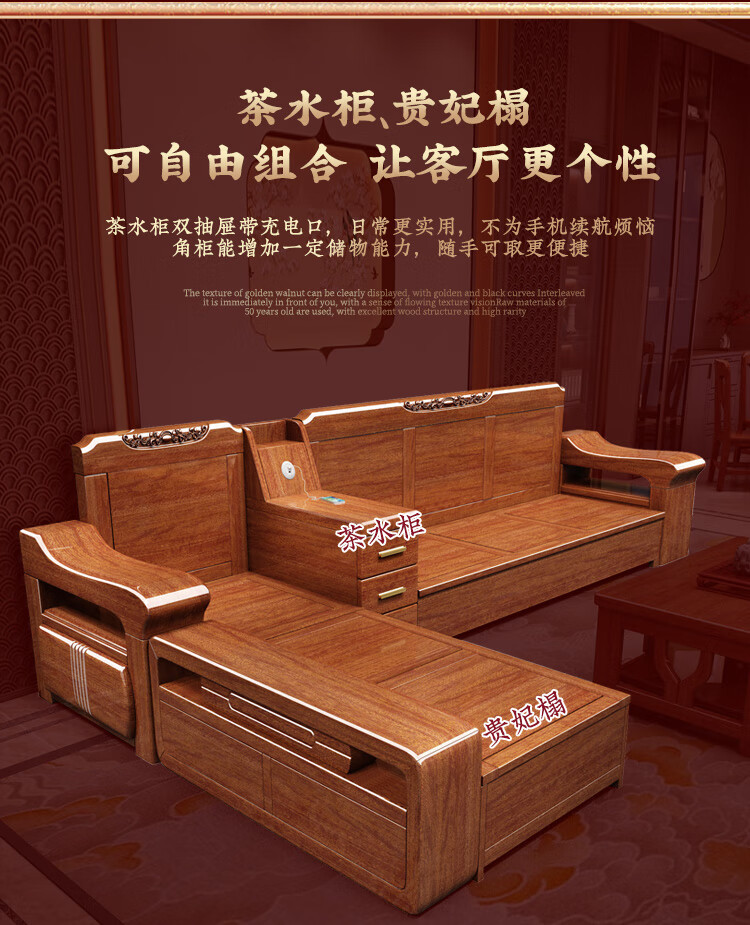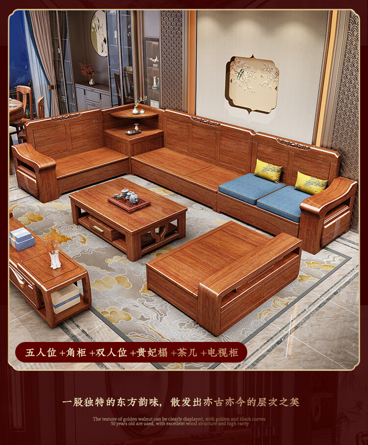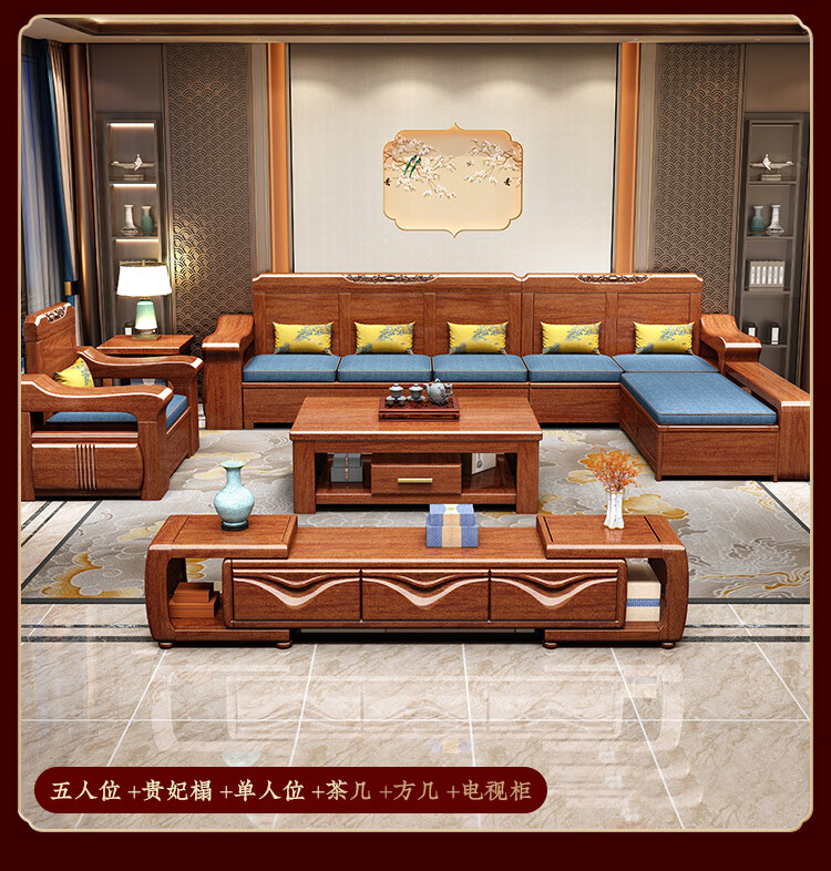 Shunju Treasures Factory direct sales clearance solid wood sofa combination modern new Chinese style wooden sofa simple living room dual use in winter and summer special clearance four seater + corner cabinet + double + imperial concubine + coffee table