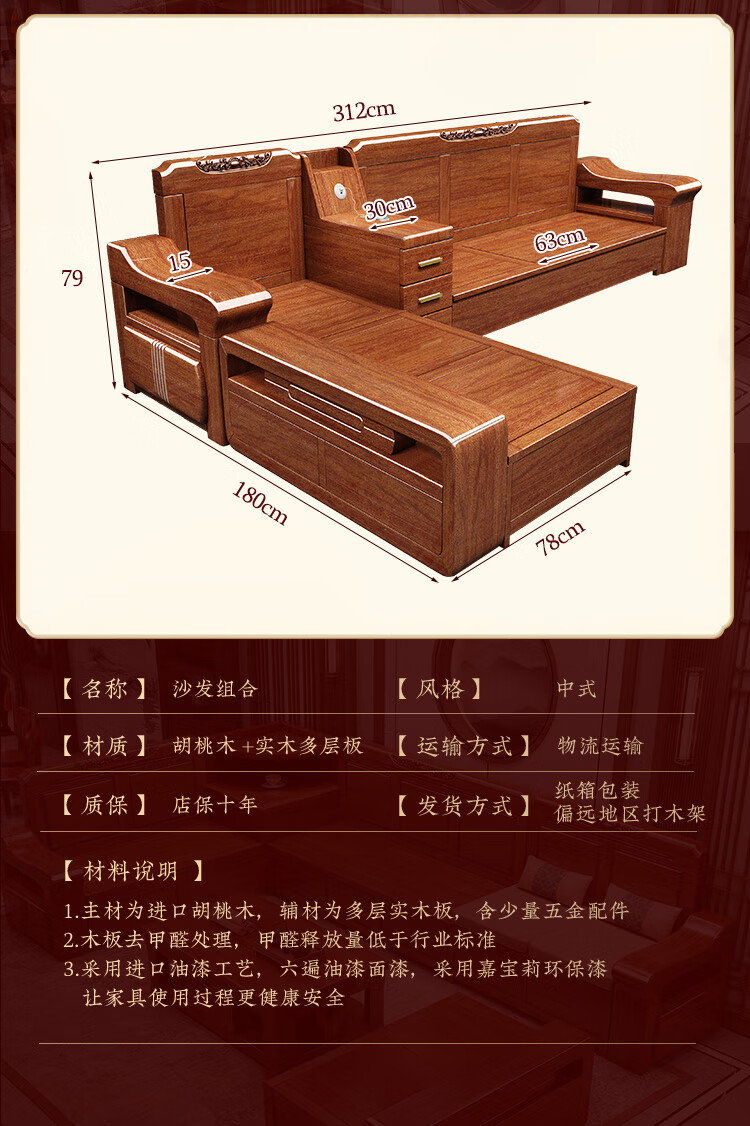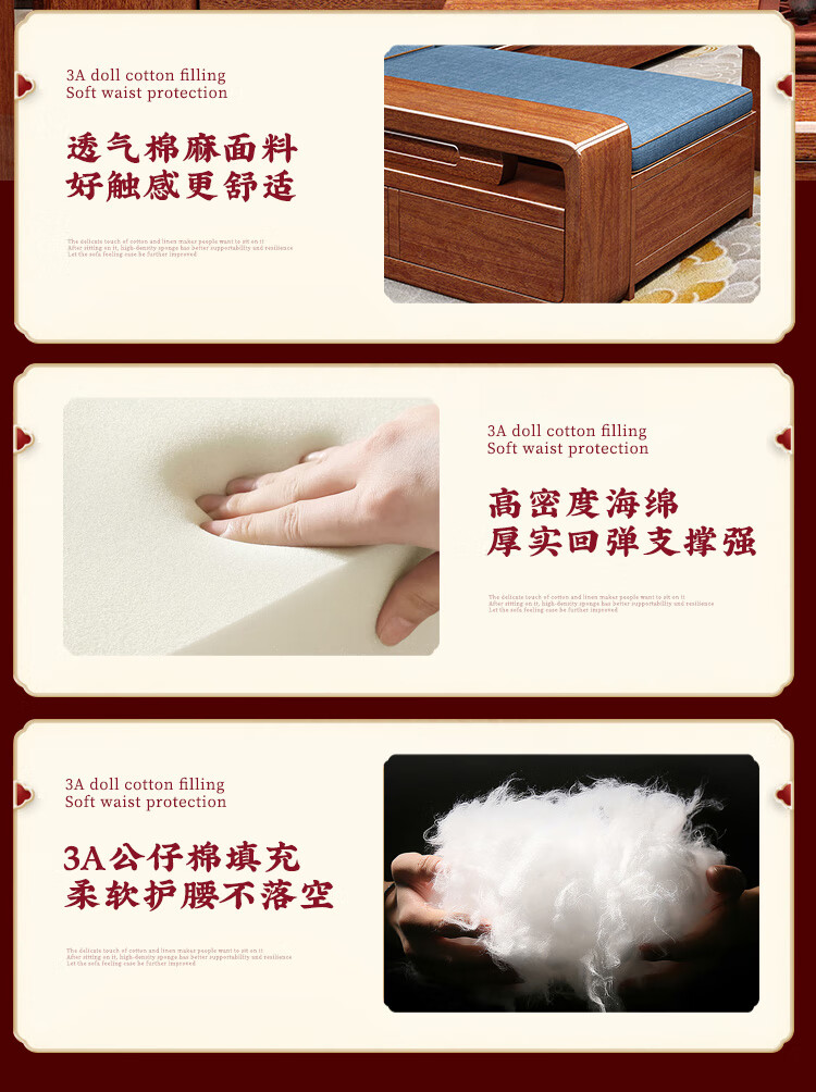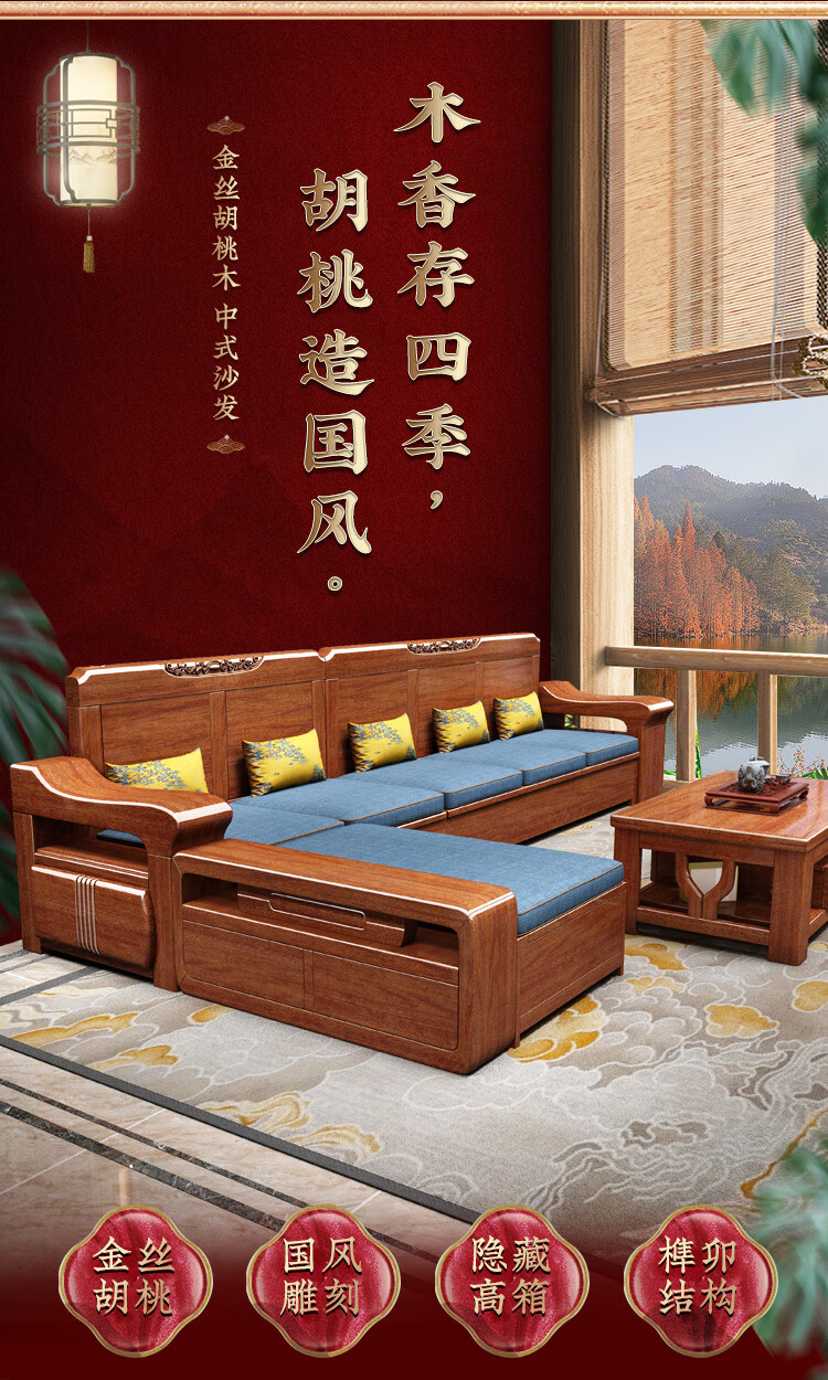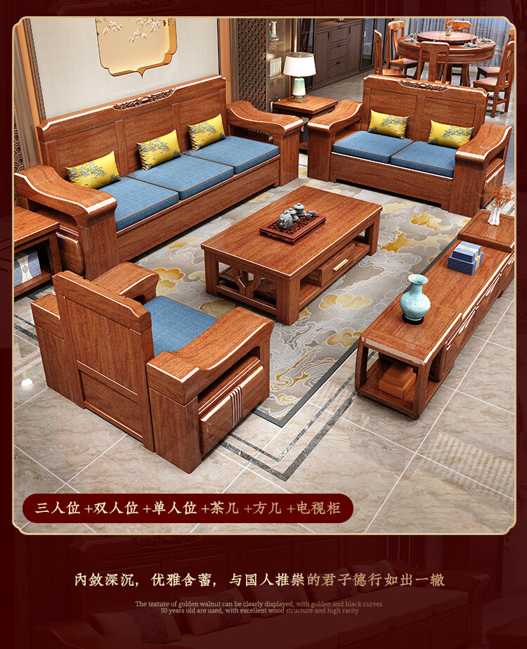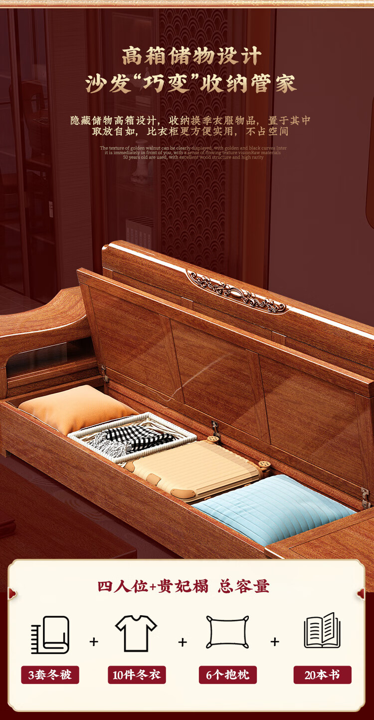 Shunju Treasures Factory direct sales clearance solid wood sofa combination modern new Chinese style wooden sofa simple living room dual use in winter and summer special clearance four seater + corner cabinet + double + imperial concubine + coffee table