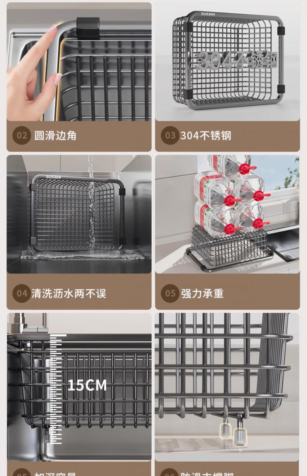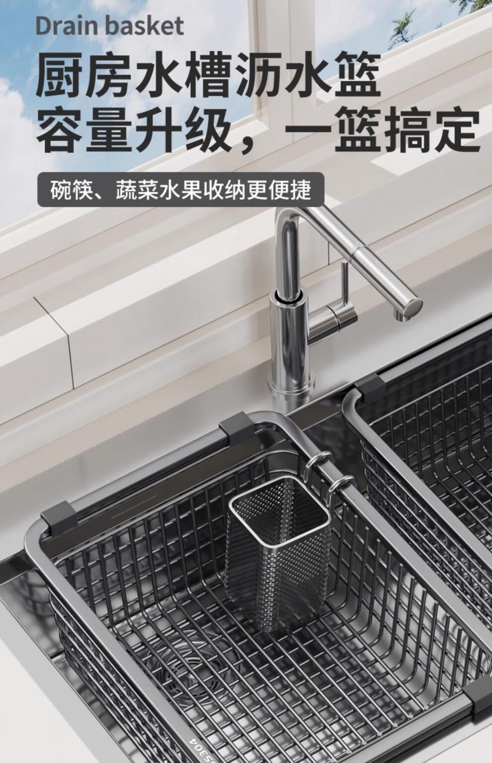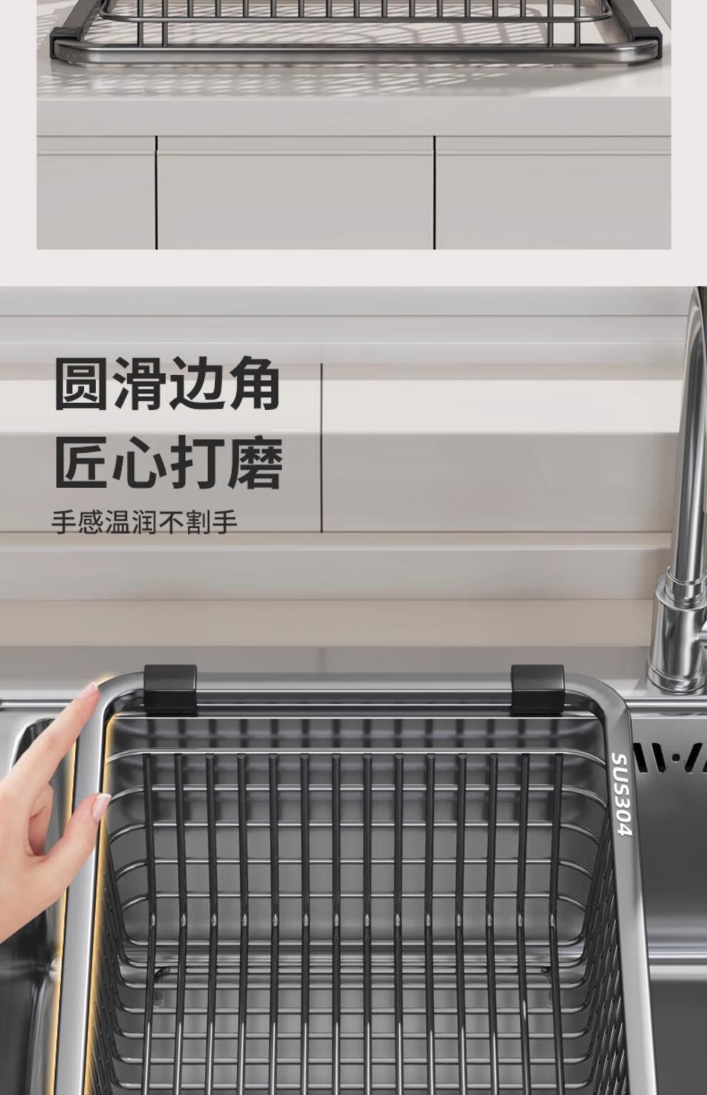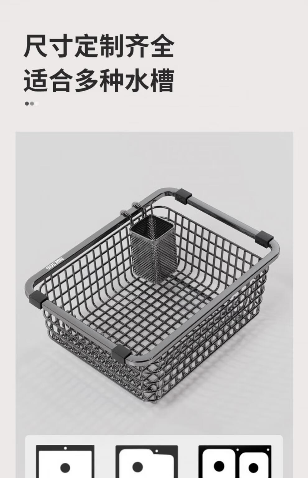 JIUDULONG sink drain basket basin middle basin stainless steel drain rack vegetable basin kitchen sink drain basket dish drainer rack chopstick cage + 34 gray nano-encrypted model suitable for sink inner length 29.5~30
