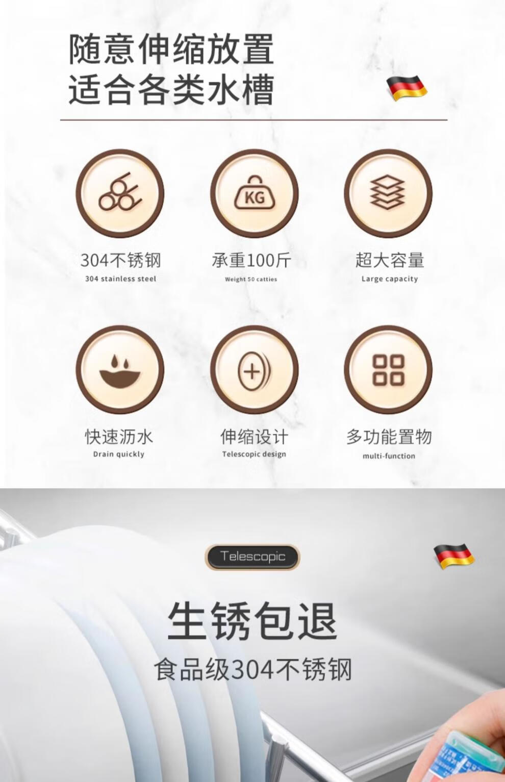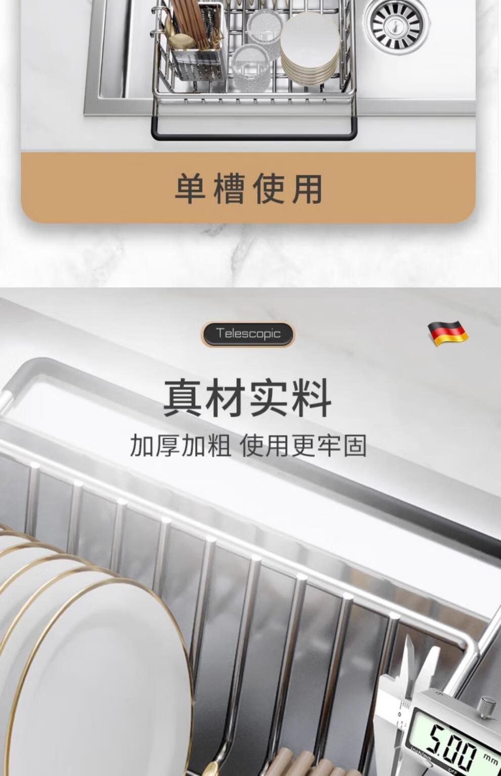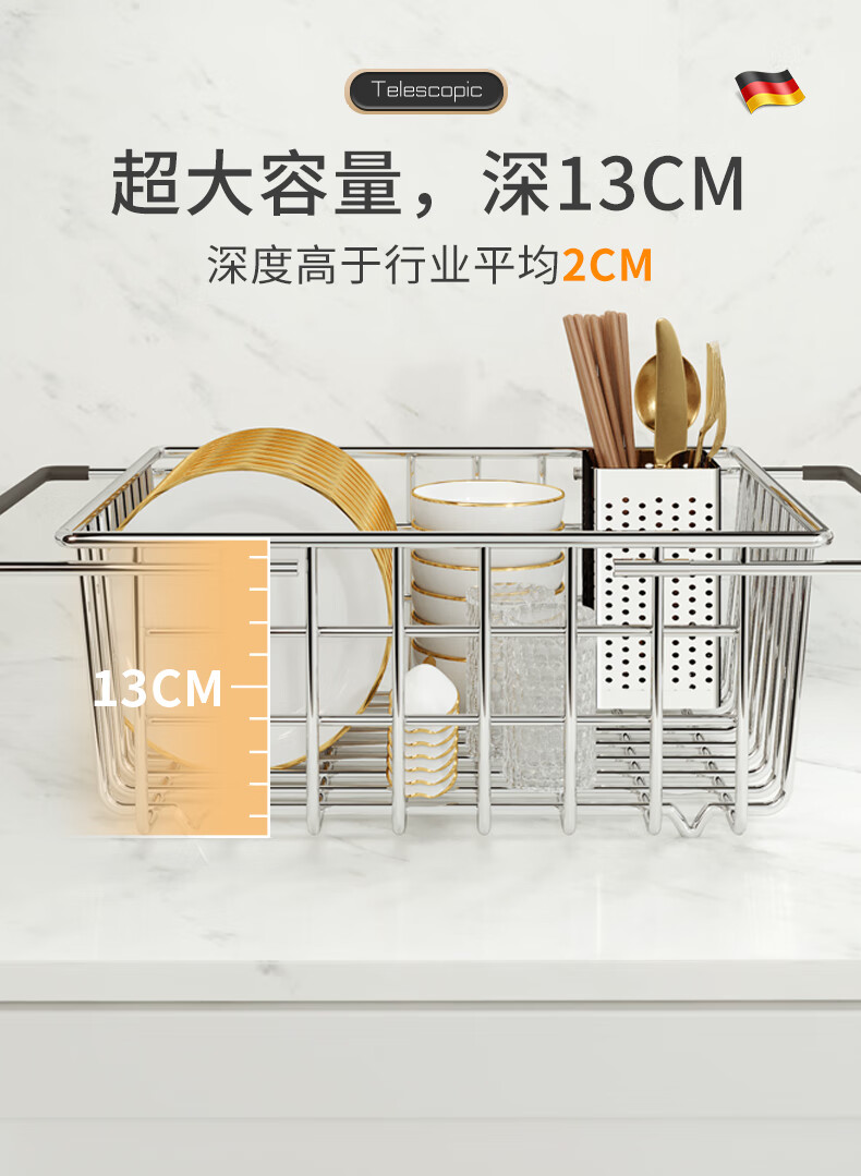 JIUDULONG Drain Basket Sink Drain Rack 304 Stainless Steel Retractable Sink Basin Kitchen Sink Drainage Filter Rack Deepened 15cm35*30 (With Card Slot) + Chopstick Cage Rust Covered_Test