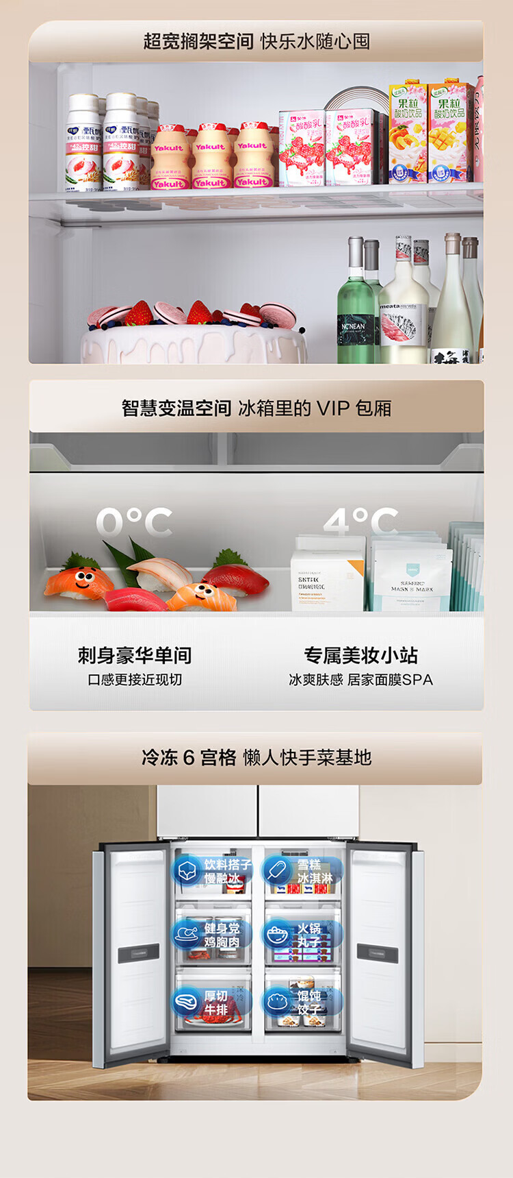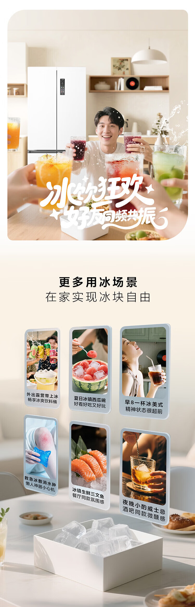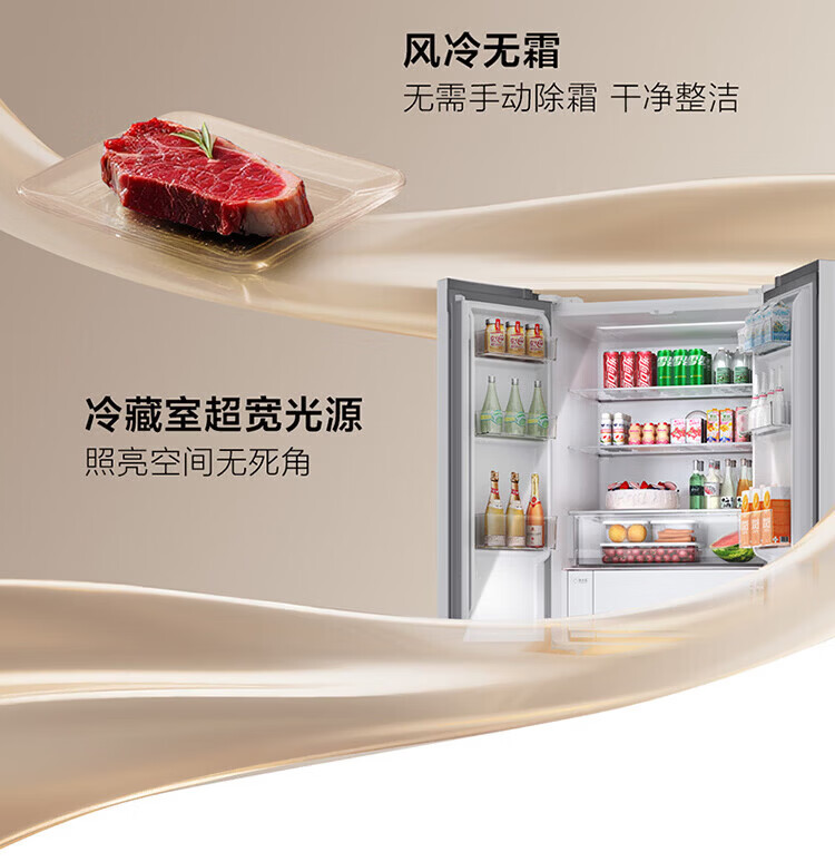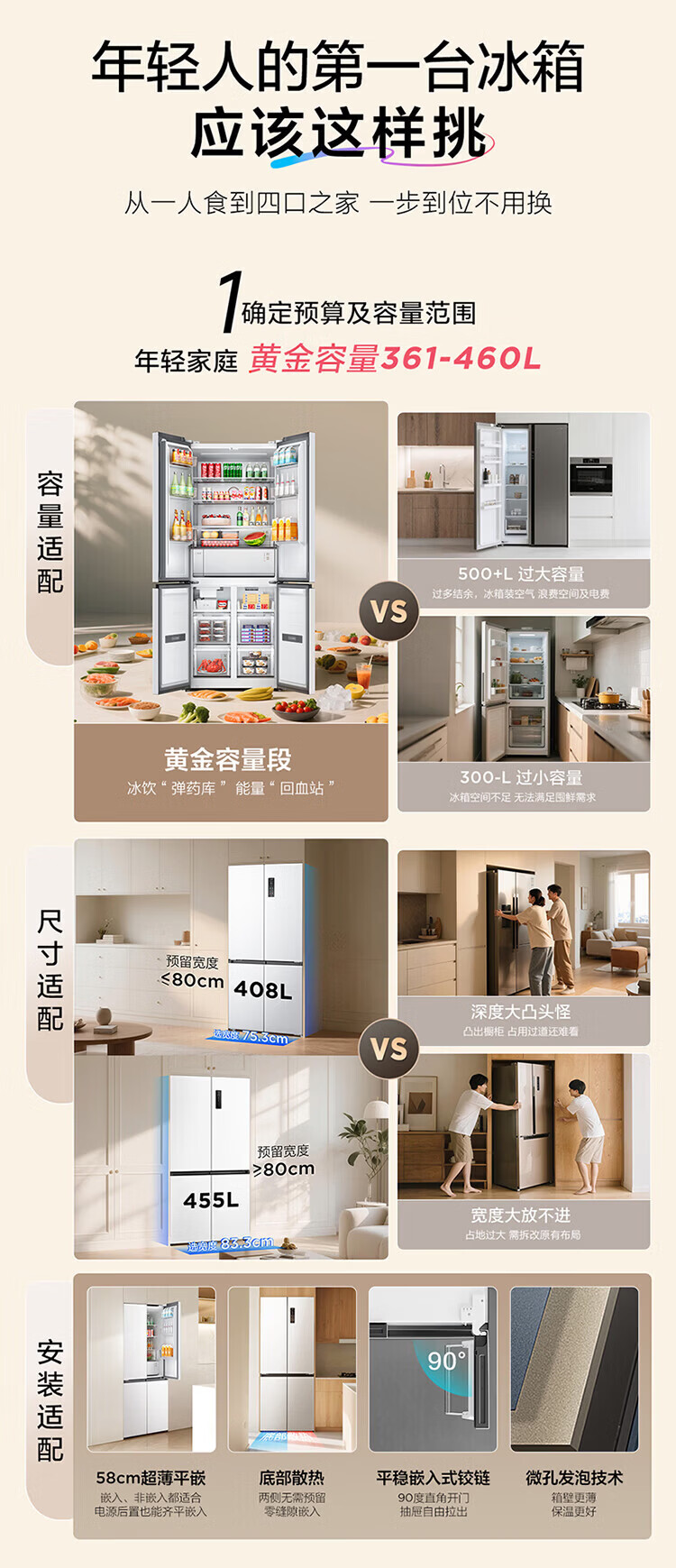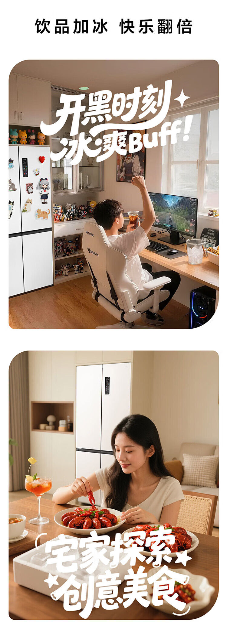 TCL four-door refrigerator with small width 80 cm embedded ultra-thin narrow 408 liters bottom cooling air-cooled frost-free frequency conversion double cycle first-level energy efficiency fully automatic ice cube cold pudding R408T7-UQB