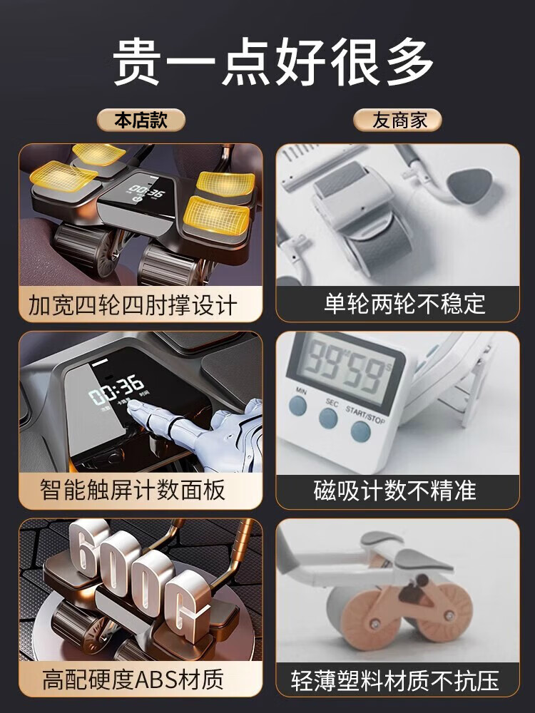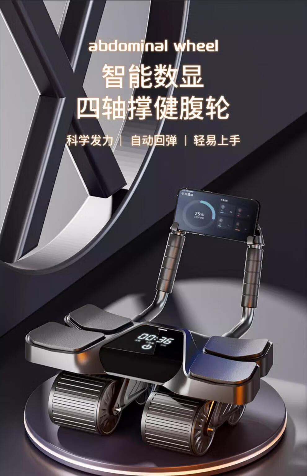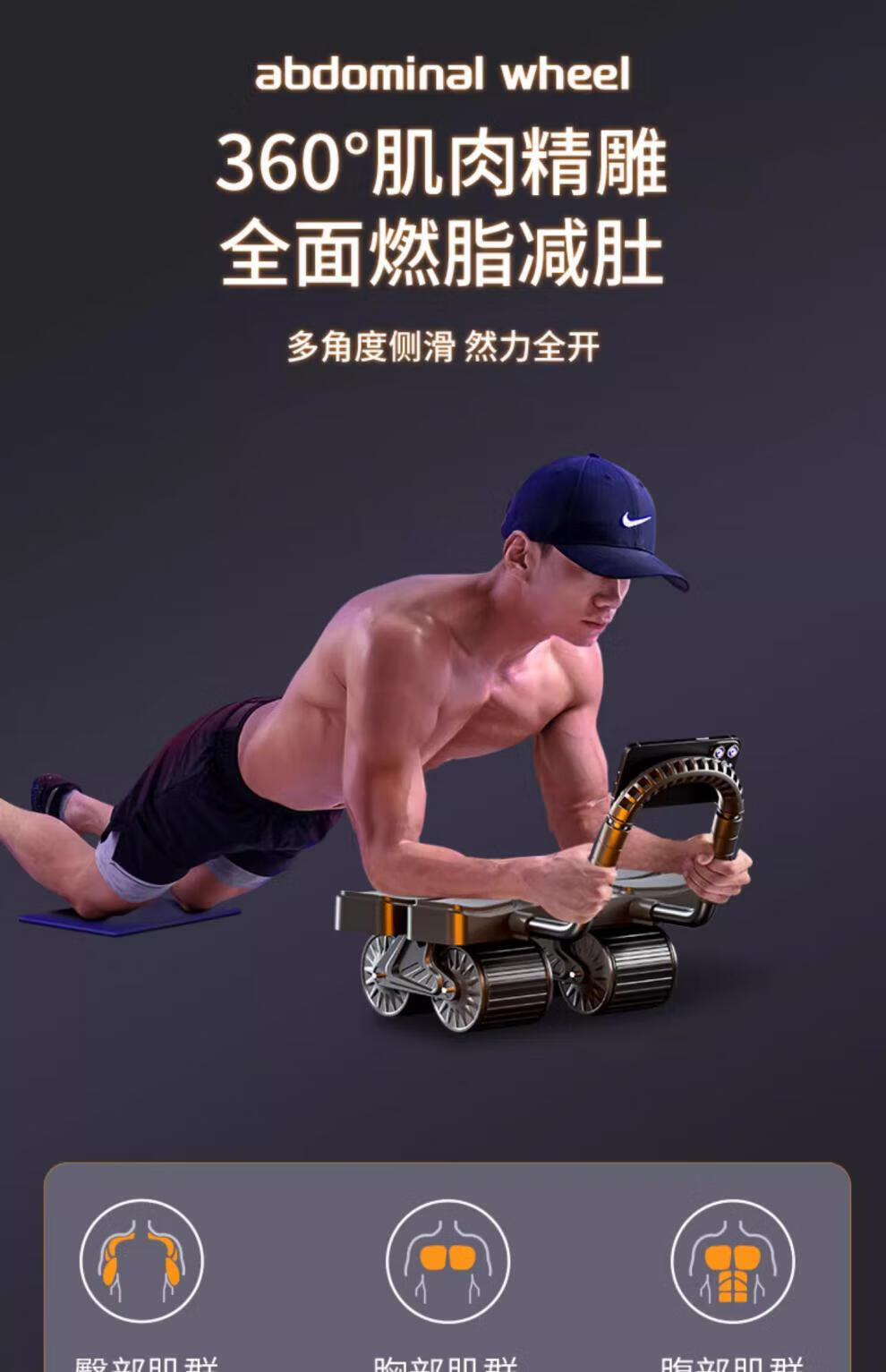 He Jiagong's four-wheel abdominal fitness wheel, automatic rebound abdominal muscle wheel, men's and women's fat training abdominal muscle slimming tummy artifact, home fitness equipment