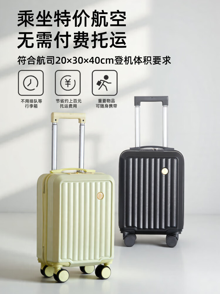 Check-in free 20*30*40 spring and autumn air travel suitcase trolley case small size 13 inches 14 inches 16 inches avocado green multi-functional upgrade model-A08 volume 20 30 40cm low-cost airline boarding case
