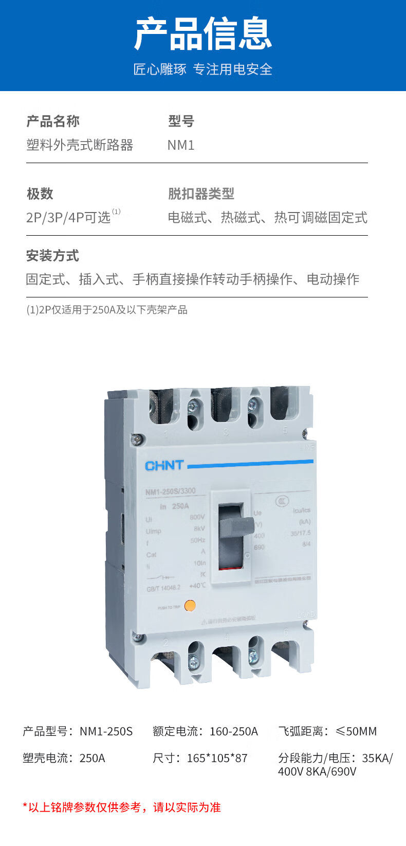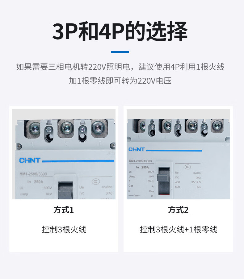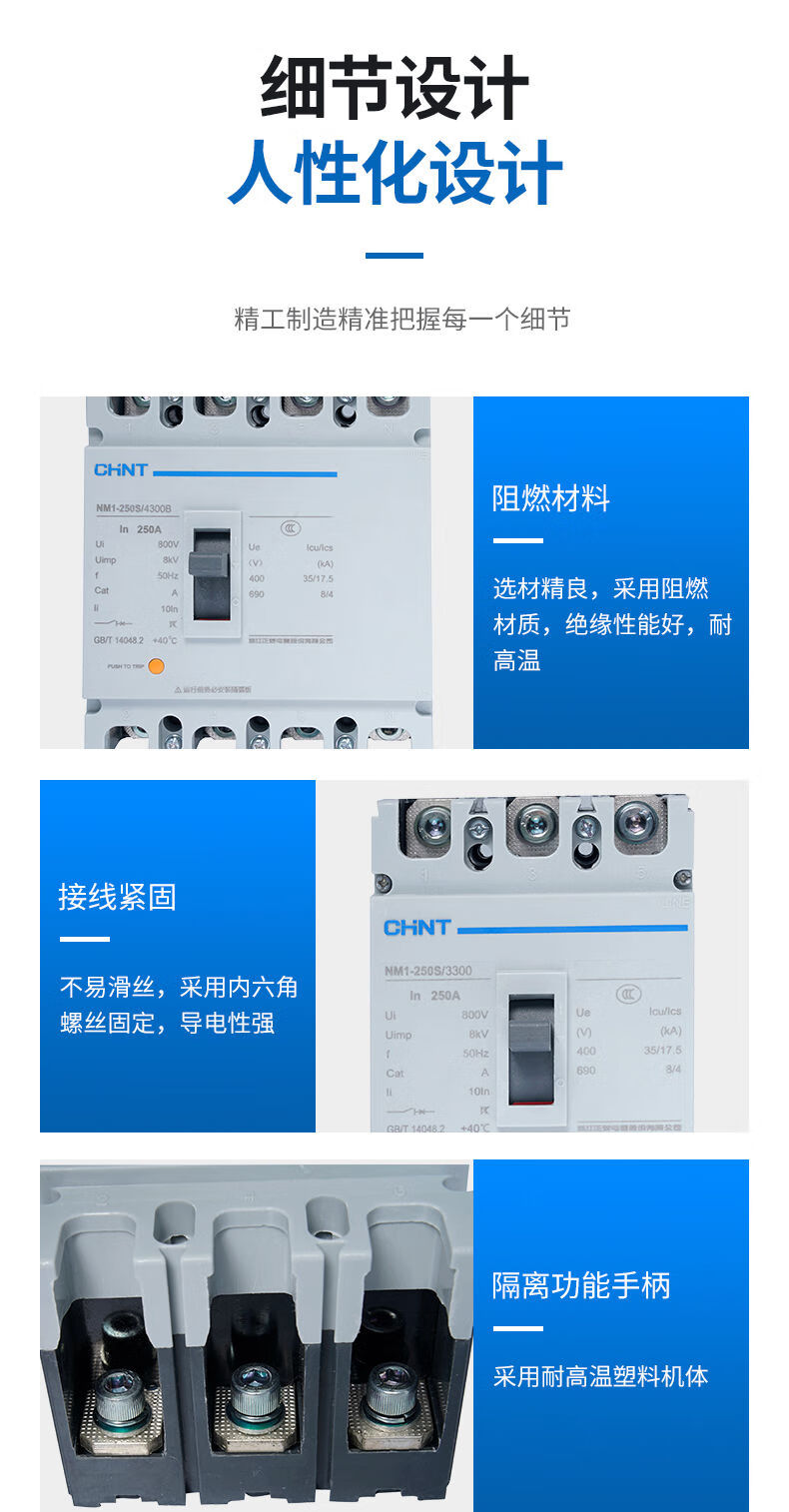 Chint molded case circuit breaker NM1-250S/3300 4300B 160A 200A 225A 250A 3P 160A 4p