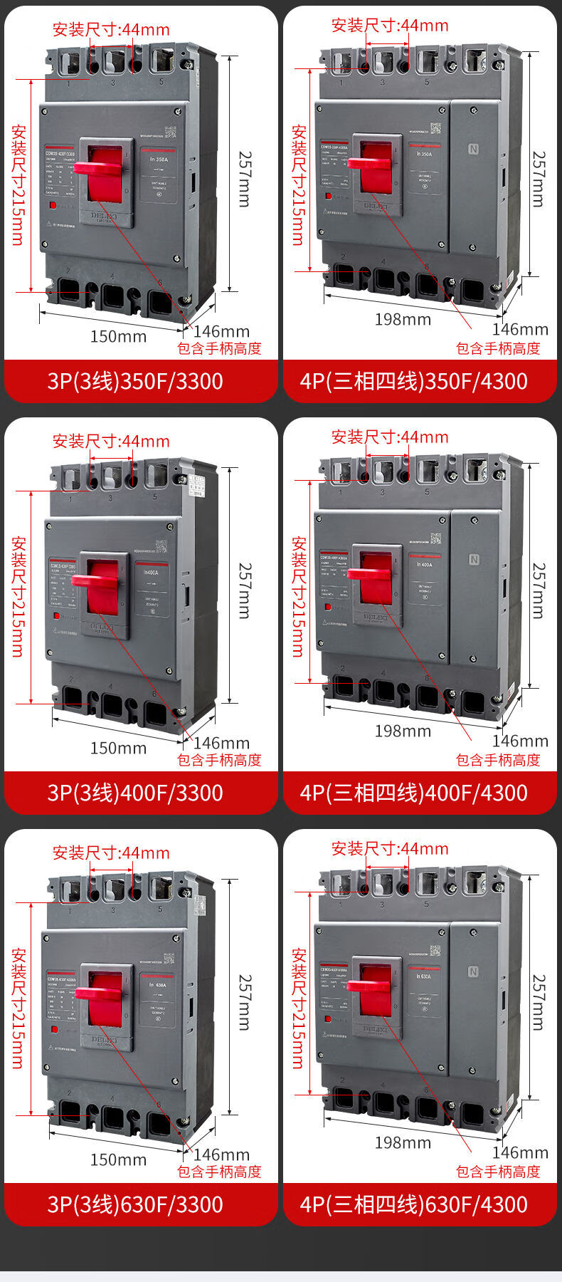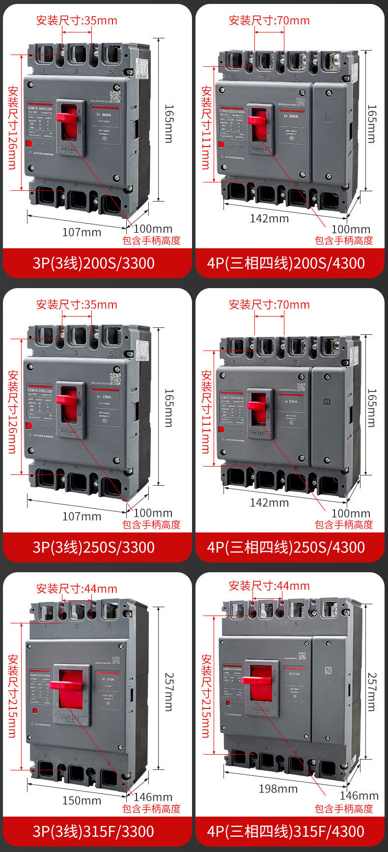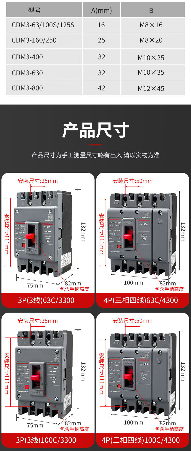 Plastic case circuit breaker CDM3S air switch 4P three-phase four-wire 3P switch 380V250A400 air switch 250A 3P