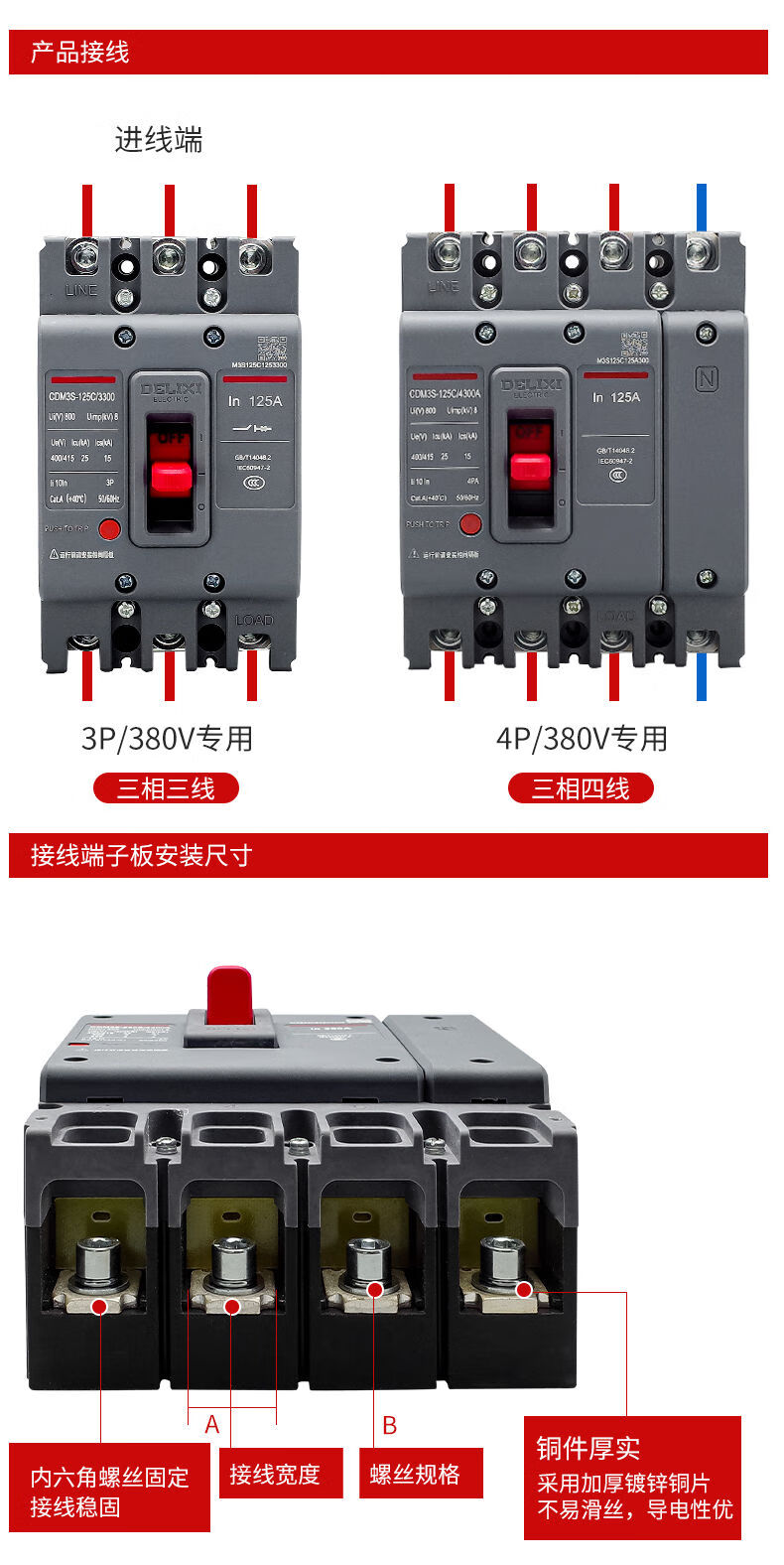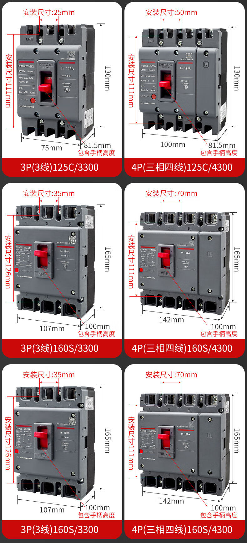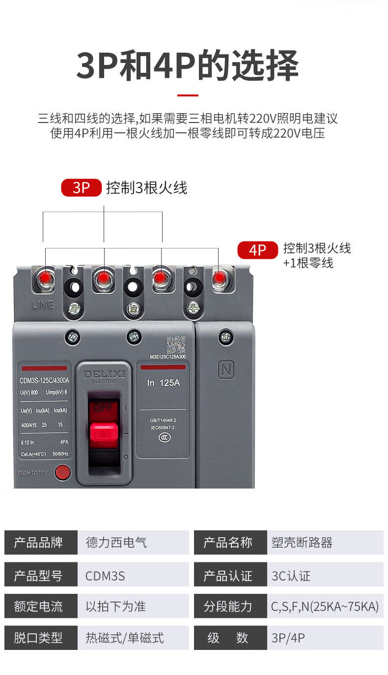 Plastic case circuit breaker CDM3S air switch 4P three-phase four-wire 3P switch 380V250A400 air switch 250A 3P
