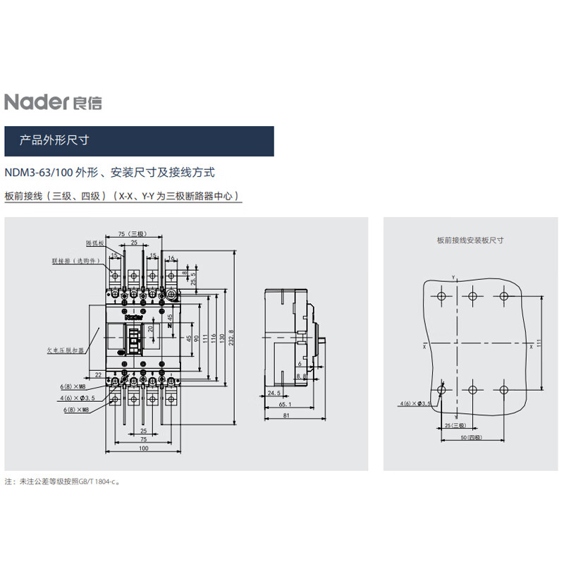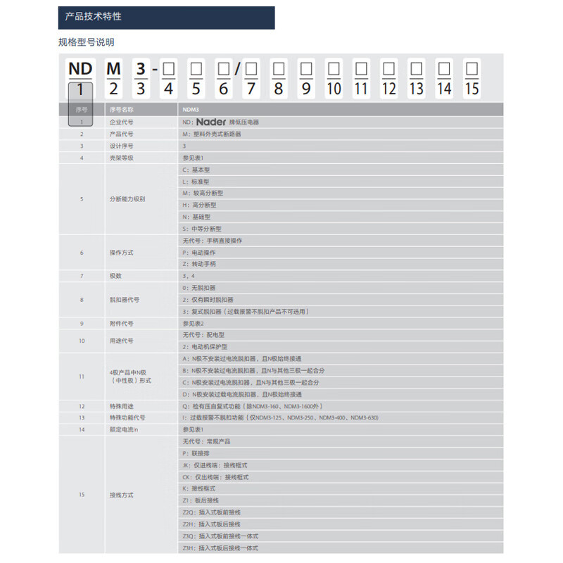Nader Shanghai molded case circuit breaker NDM3-125L 250A 400A 630A 3P air switch 10A 3P
