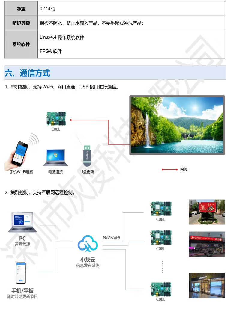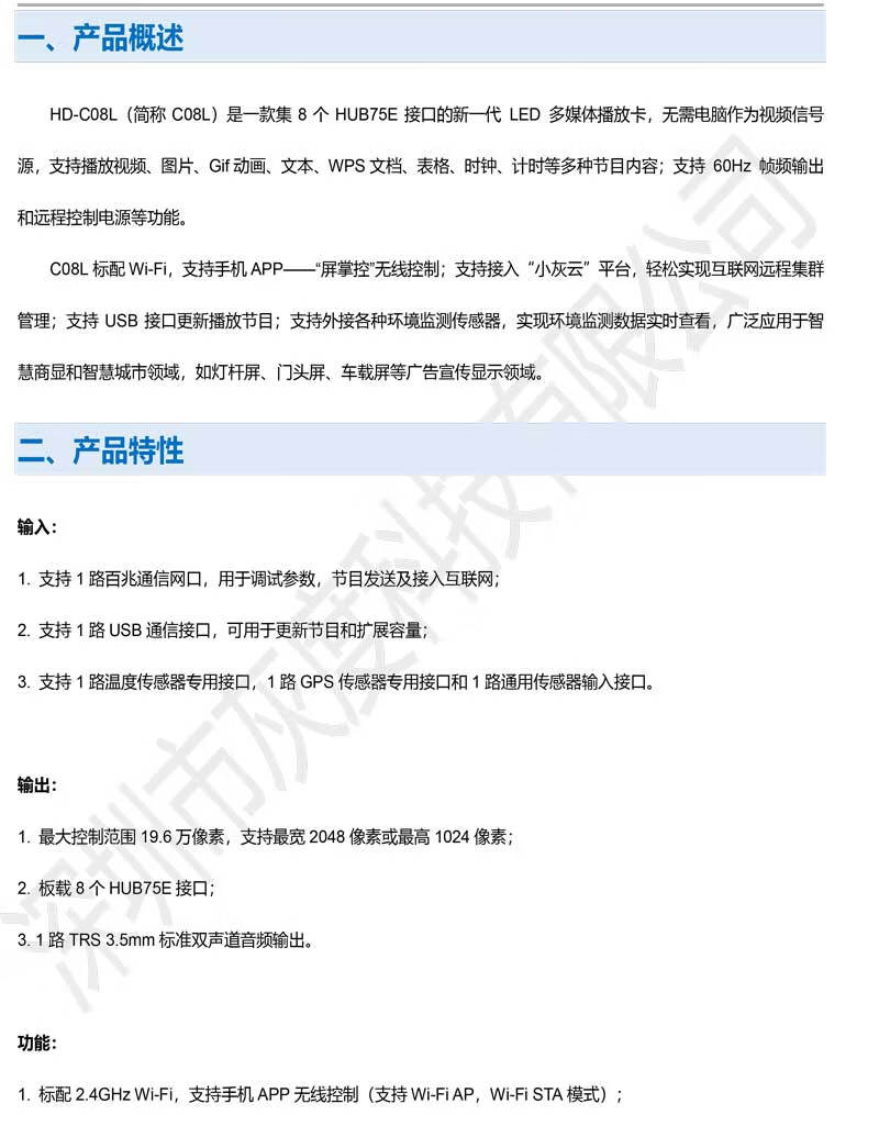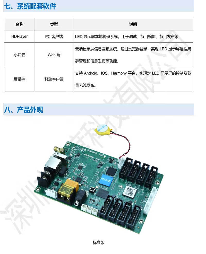 Gray HDC08L full-color LED asynchronous control card supports network WIFI video playback