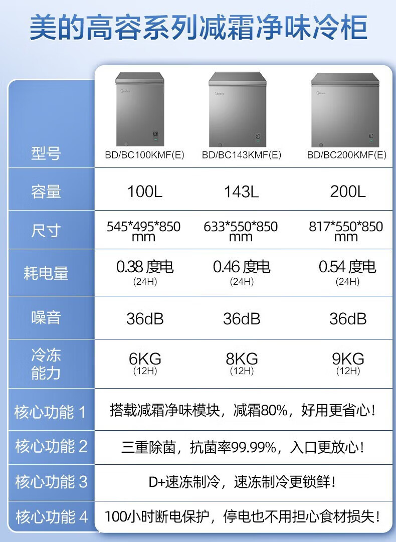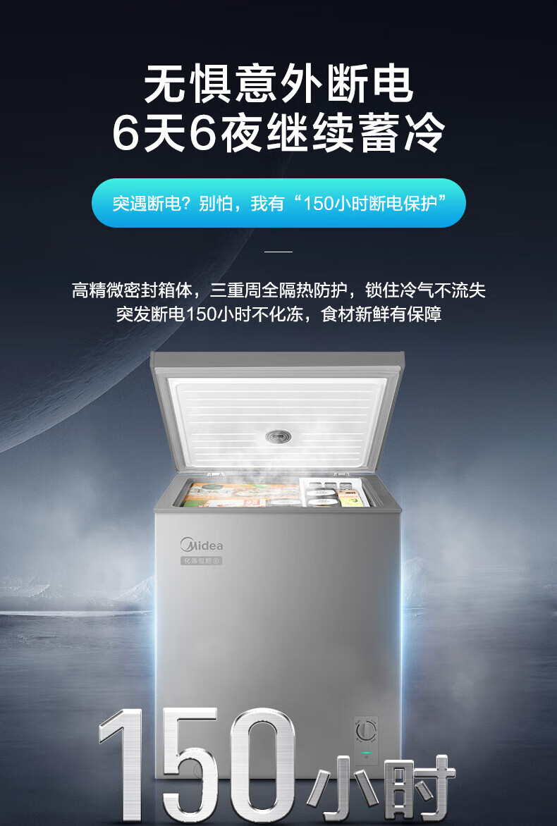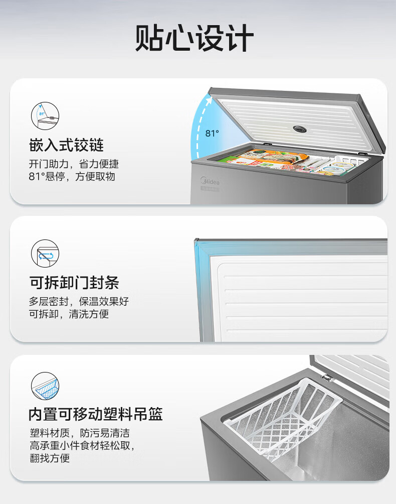 Midea Freezer Household Commercial Refrigerator Refrigerated Freezer Single Temperature Fresh Cabinet Small Freezer Energy Saving Refrigerator Horizontal Freezer Level 1 Energy Efficiency 100 Liters Gray Level 1 Energy Efficiency 100KMF(E)
