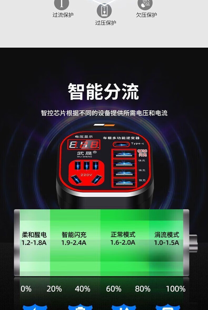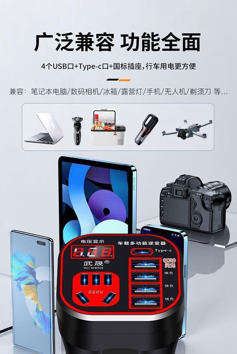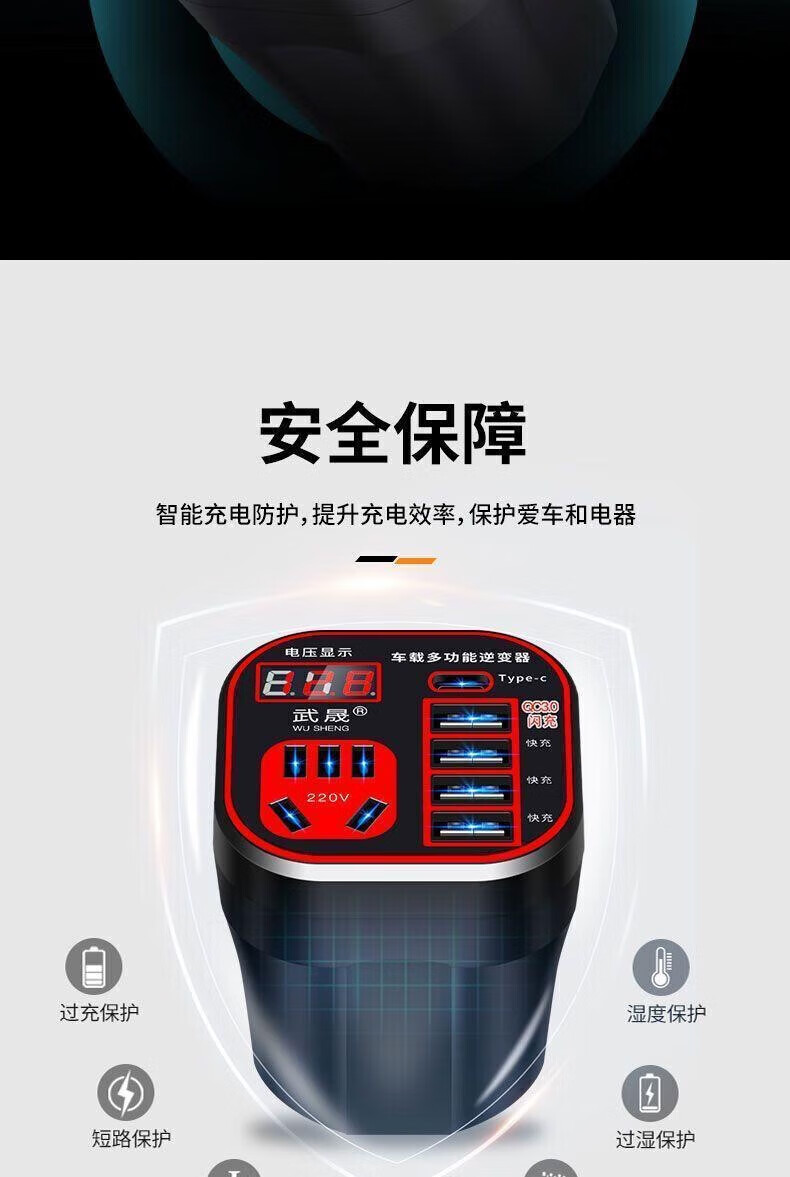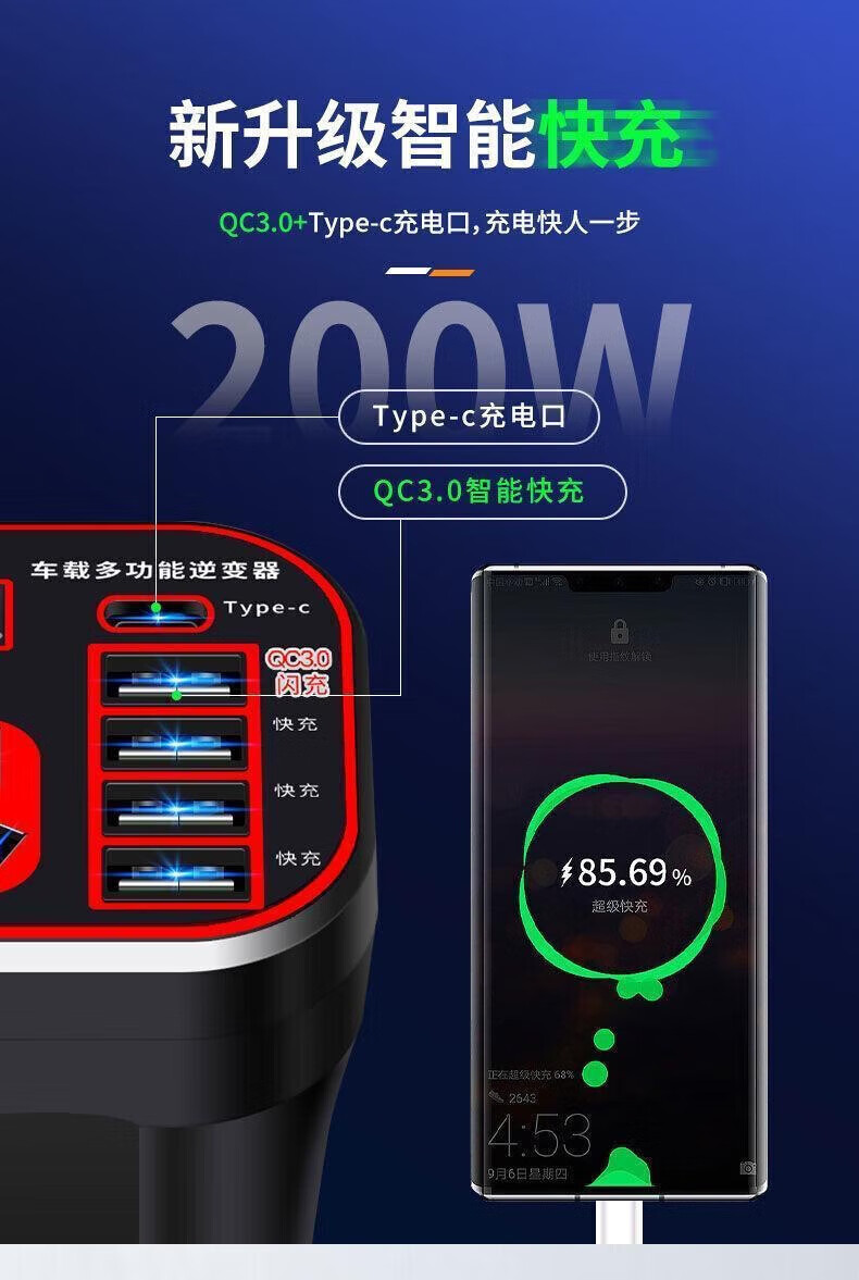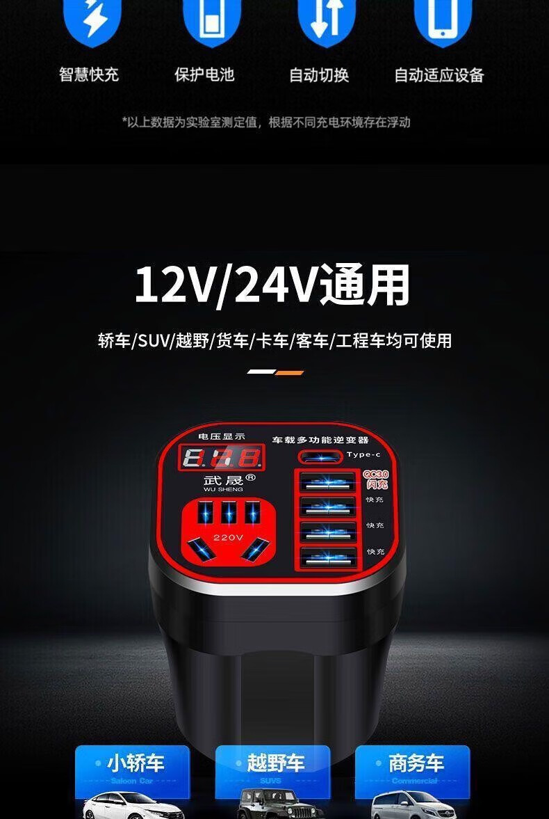 Chengyang car 12v24v to 220v socket smart fast charging converter small cup car multi-function charger