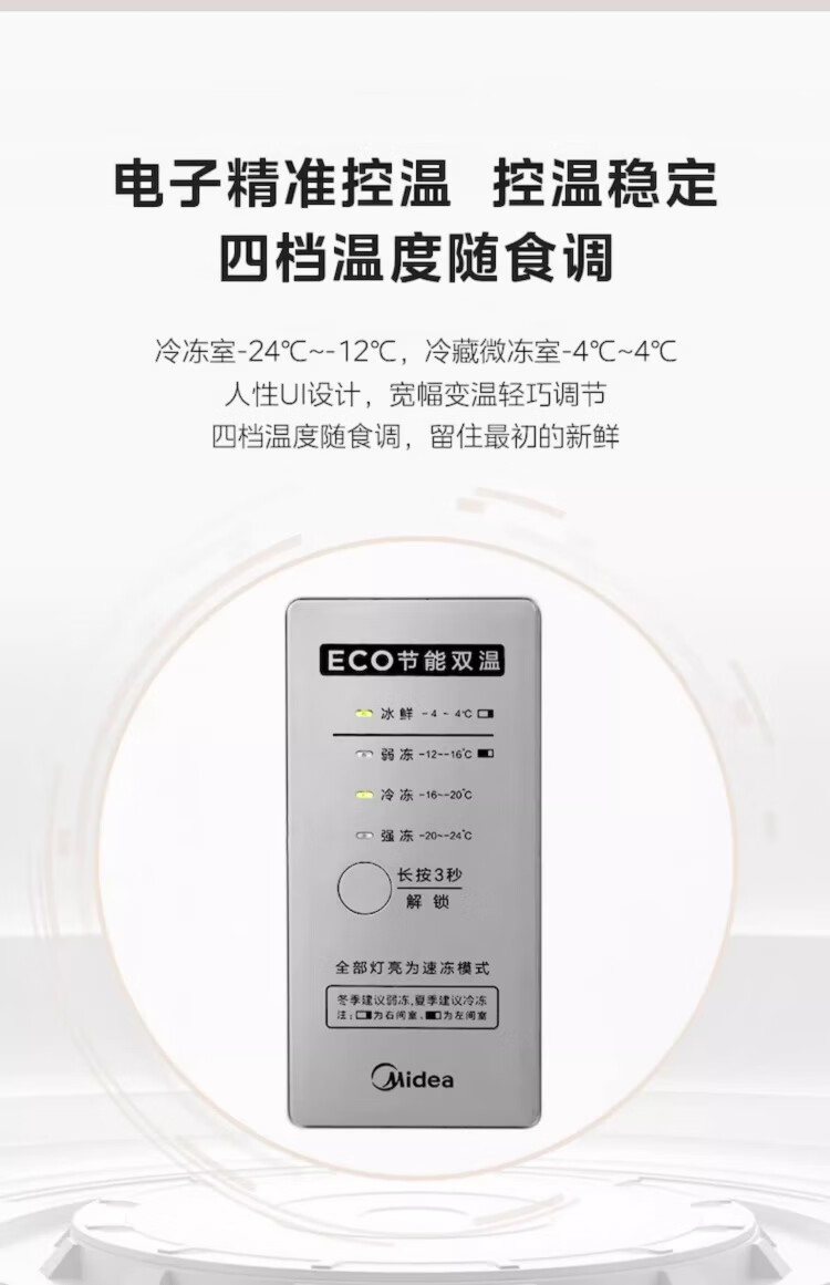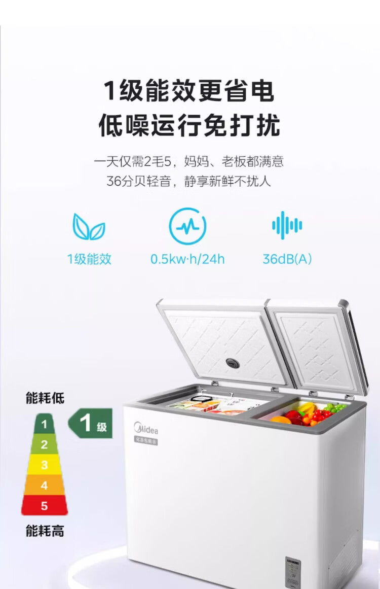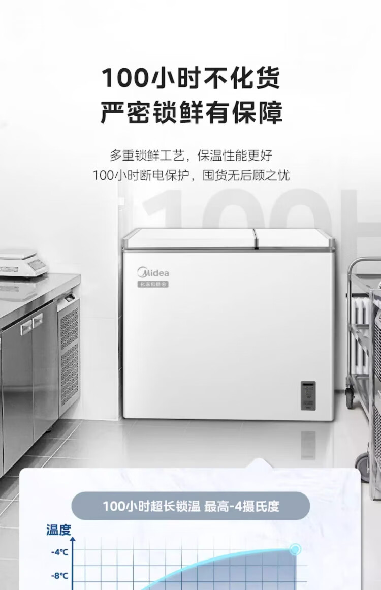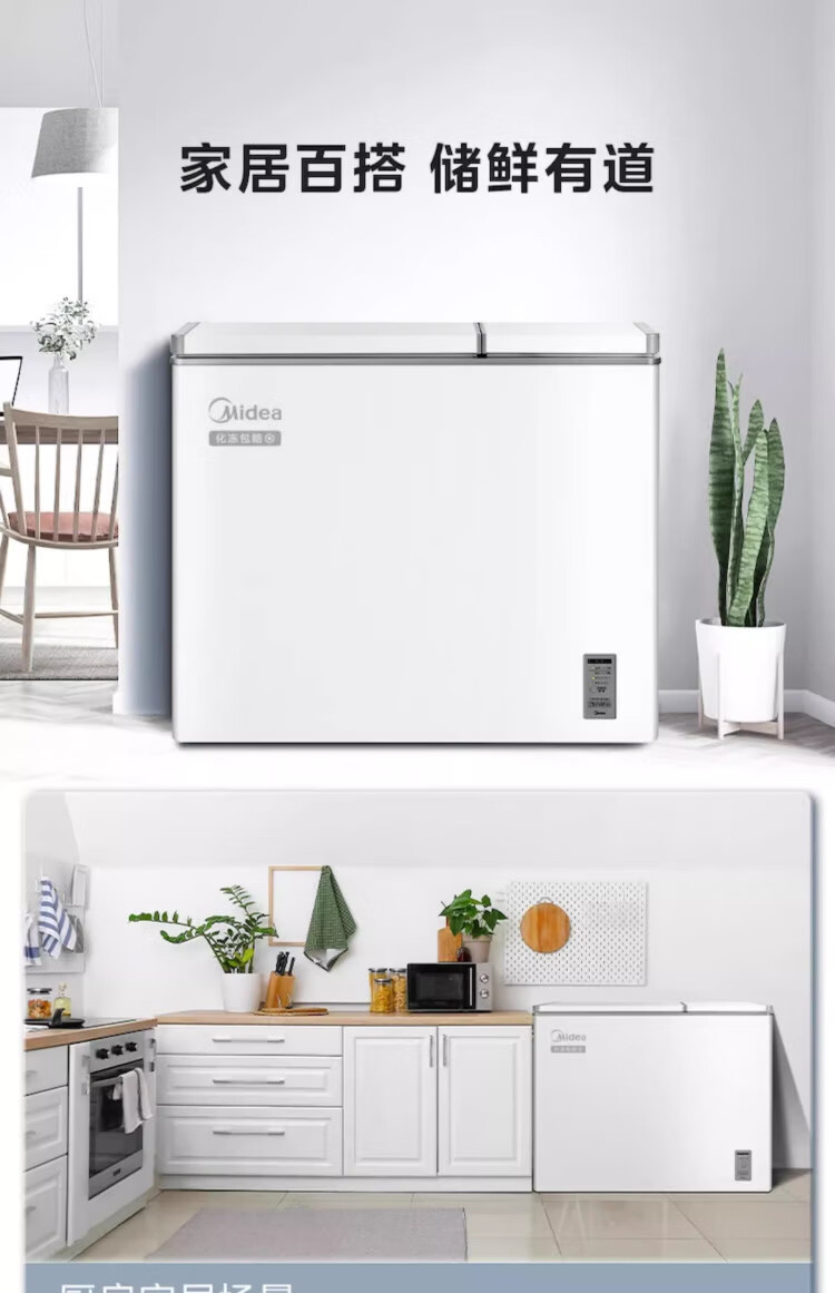 Midea household double-door 210/423/521L large-capacity fresh-keeping refrigeration and freezing efficient energy-saving single and double temperature stocking freezer white 719L double door single temperature secondary direct cooling height 85.4cm