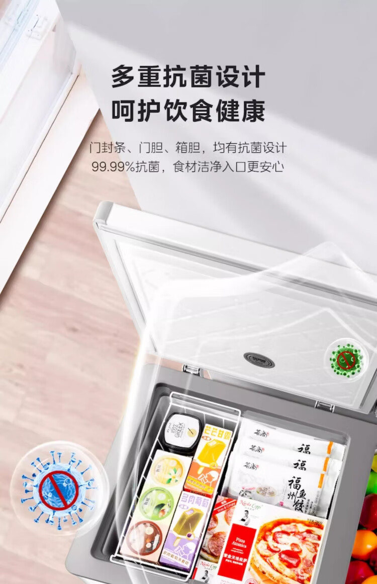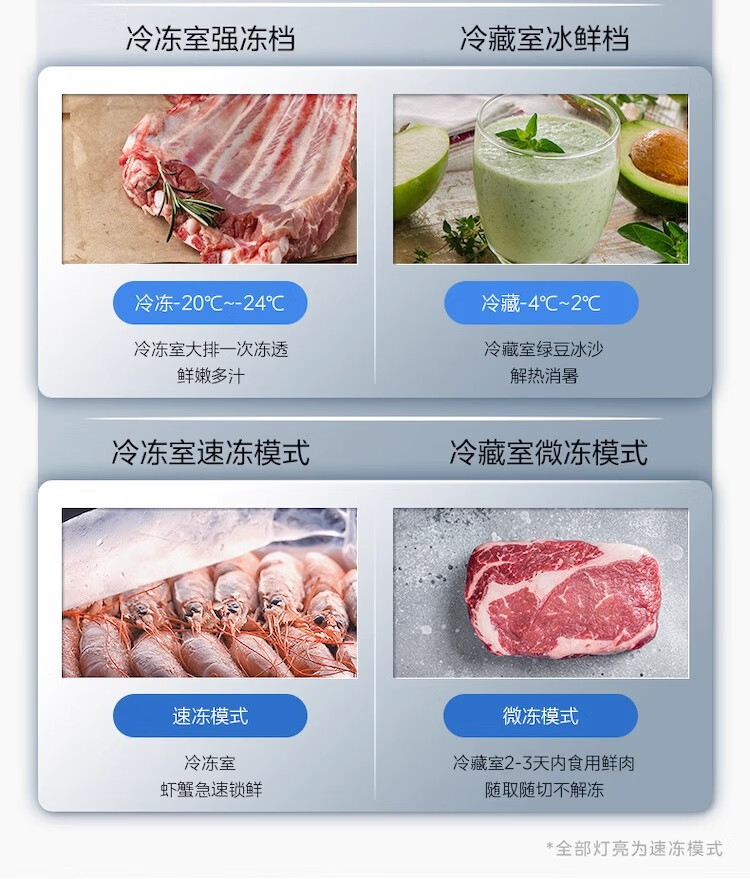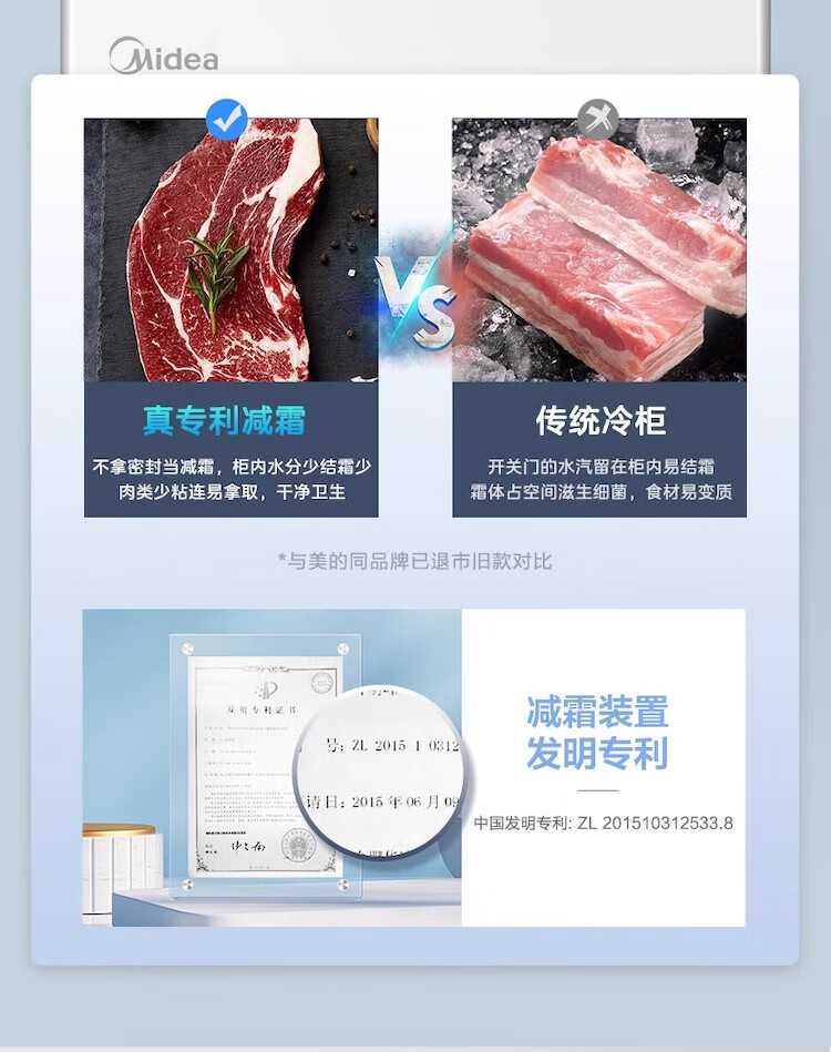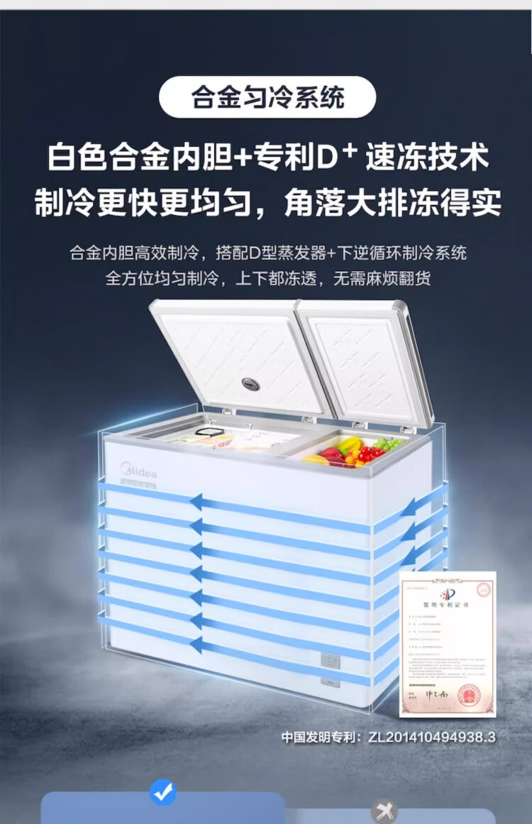 Midea household double-door 210/423/521L large-capacity fresh-keeping refrigeration and freezing efficient energy-saving single and double temperature stocking freezer white 719L double door single temperature secondary direct cooling height 85.4cm