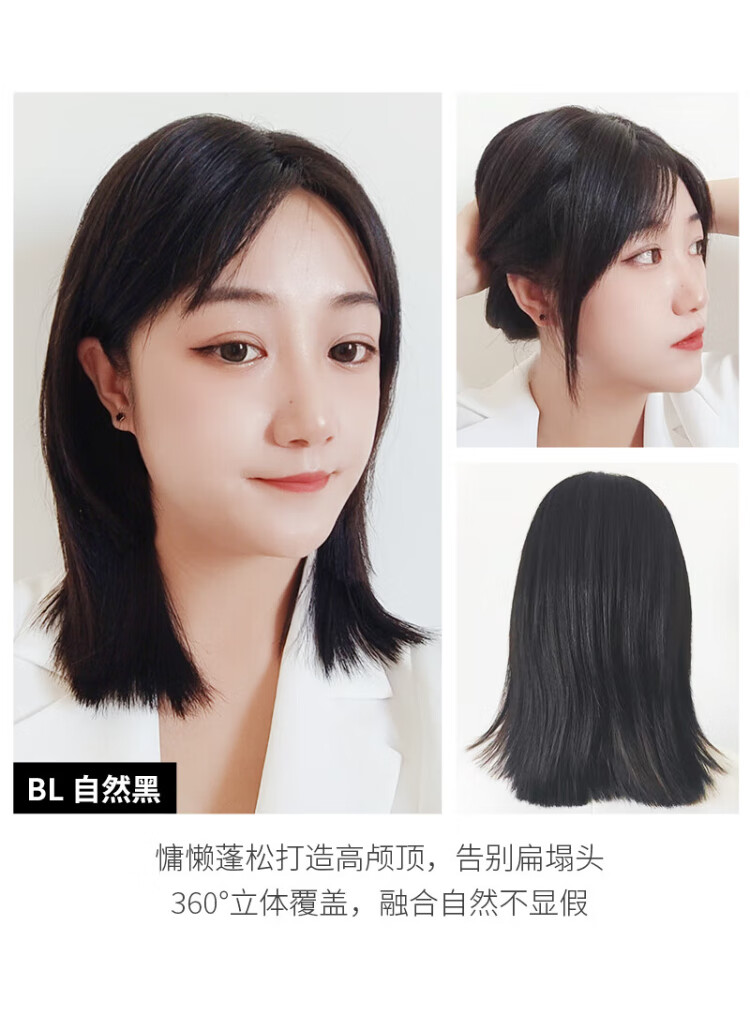 Private Yuanqi Shanghai Store Wig Piece Jurchen Hair Large Area Covers Scarce White Hair on Top of Head Naturally and Tracelessly Increases Hair Braided Hair 13 15 Natural Black 35cm Suitable for Collarbone Hair