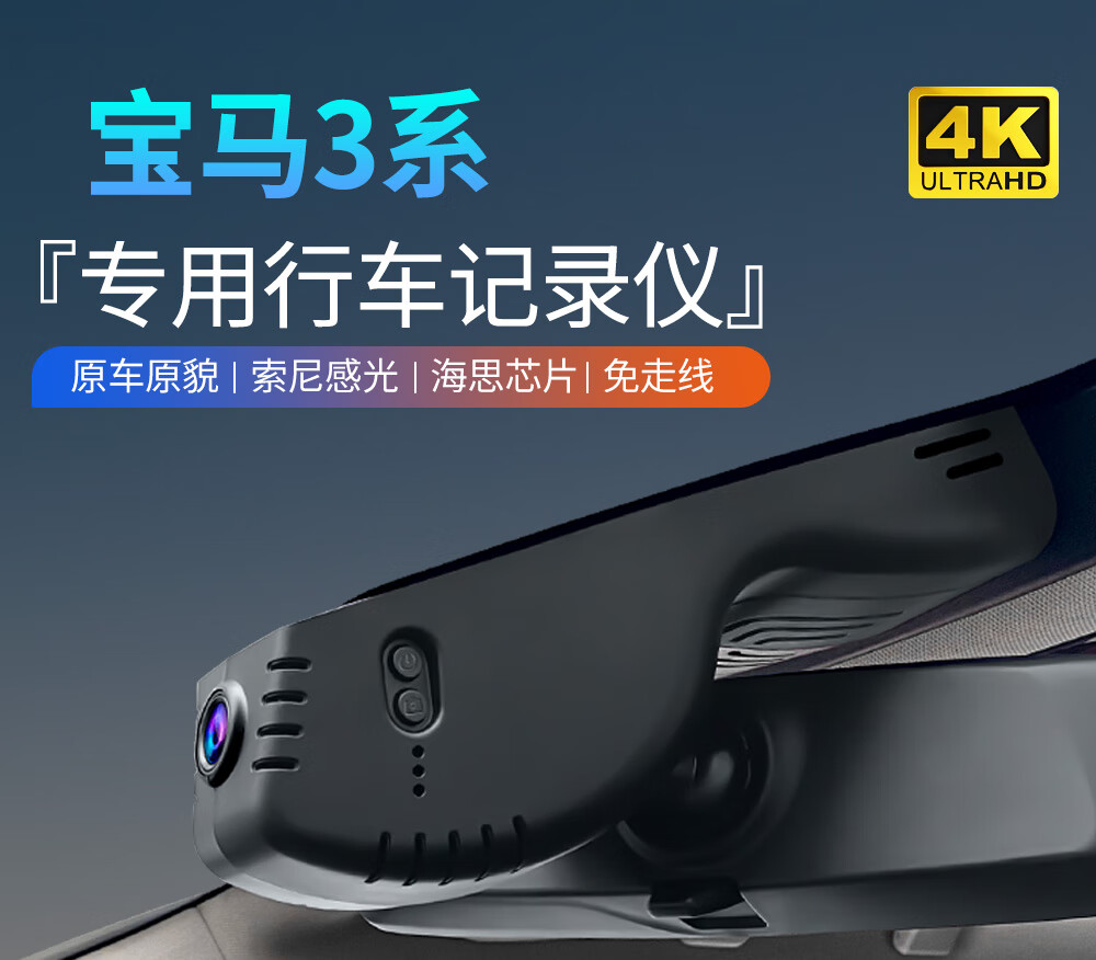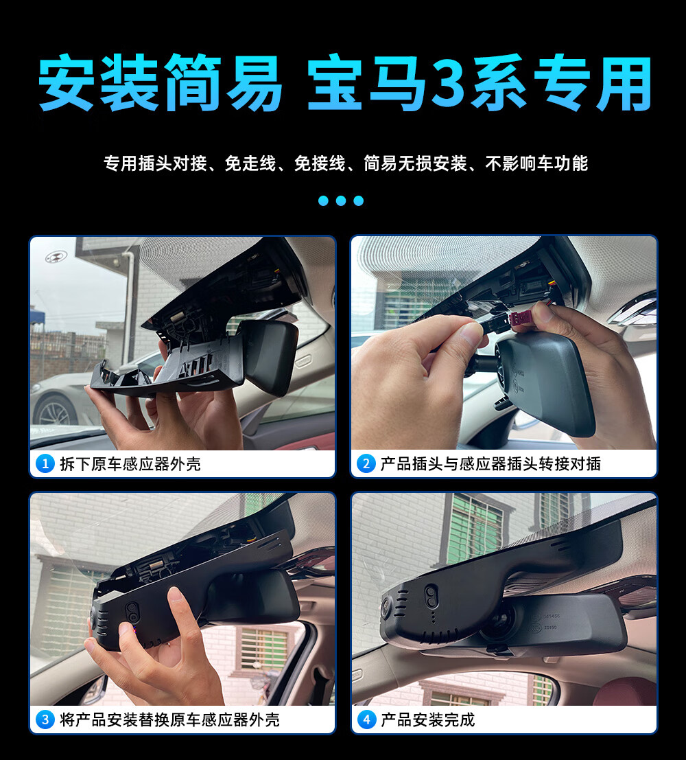 Lingzhou BMW 3 Series Driving Recorder Special Wire-Free Original Ultra-clear Night Vision Three Series 320/325li Hidden 19-25 BMW 3 Series Special/Black (Single Lens) 1296P Ultra HD +128G High Speed U3 Card
