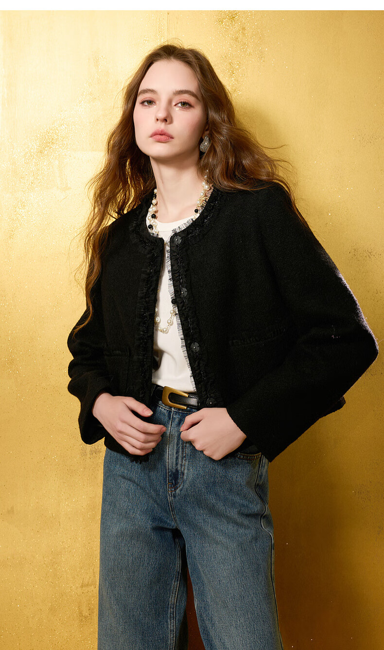 Tricolor Sheep Wool 2025 Winter New Style Fragrant Wool Coat Short Single Face Wool Jacket M Classic Black S 155/80A