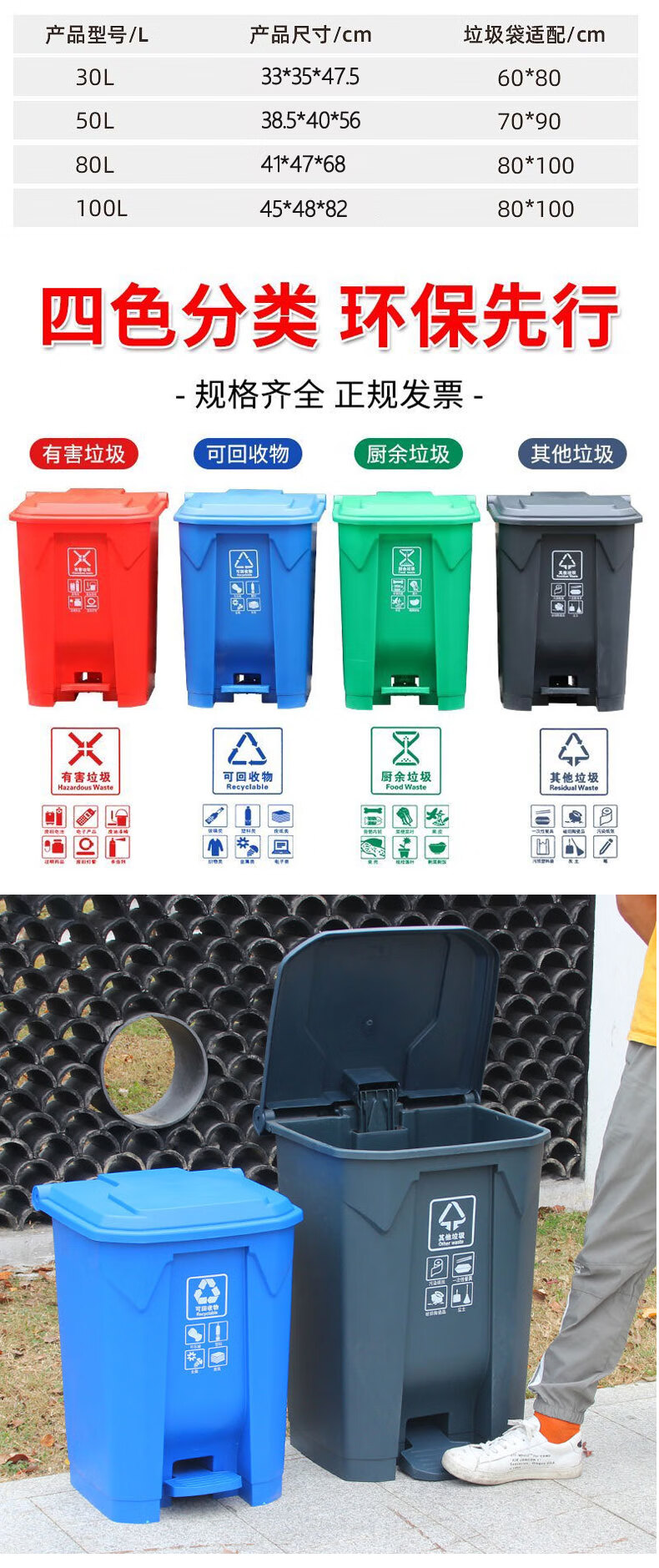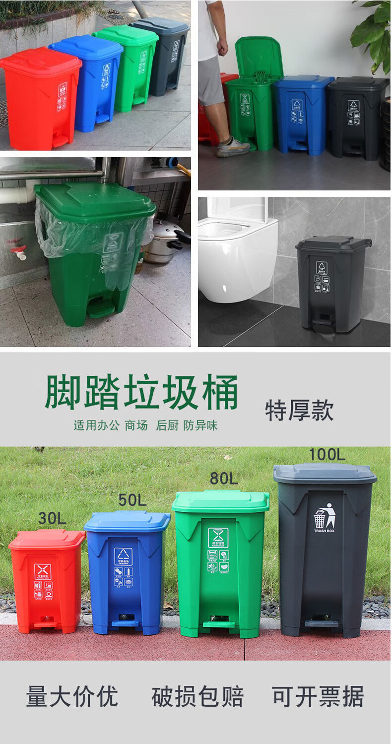 Foot-operated new national standard four-color classification trash can 50 liters outdoor office 30L commercial foot-operated large size with lid green 30-liter foot-operated model-Publish icon