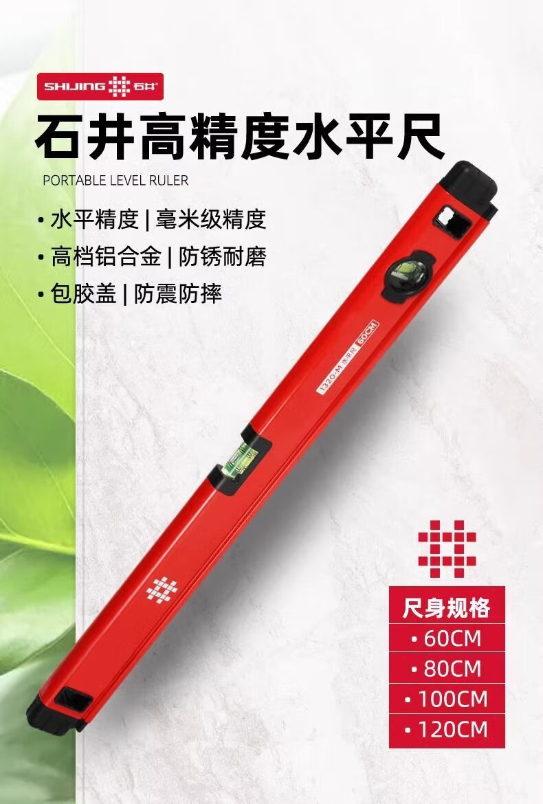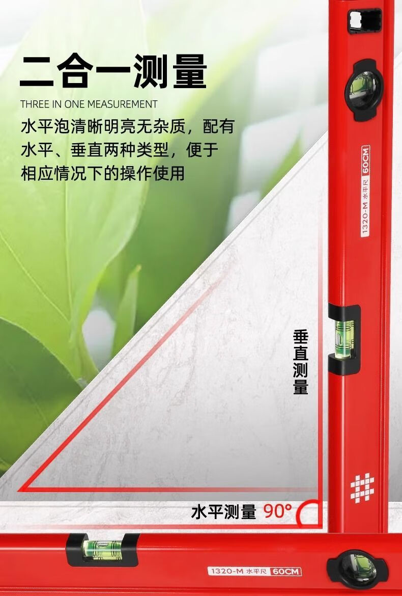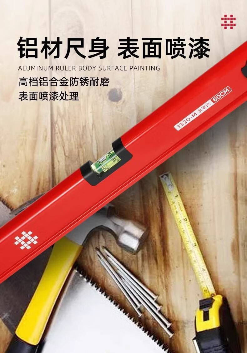 Yusenyi high-precision level with 3 level bubbles strong magnetic aluminum alloy level anti-fall and shockproof measuring ruler 1320M-32 with magnet 3 level bubbles-80cm