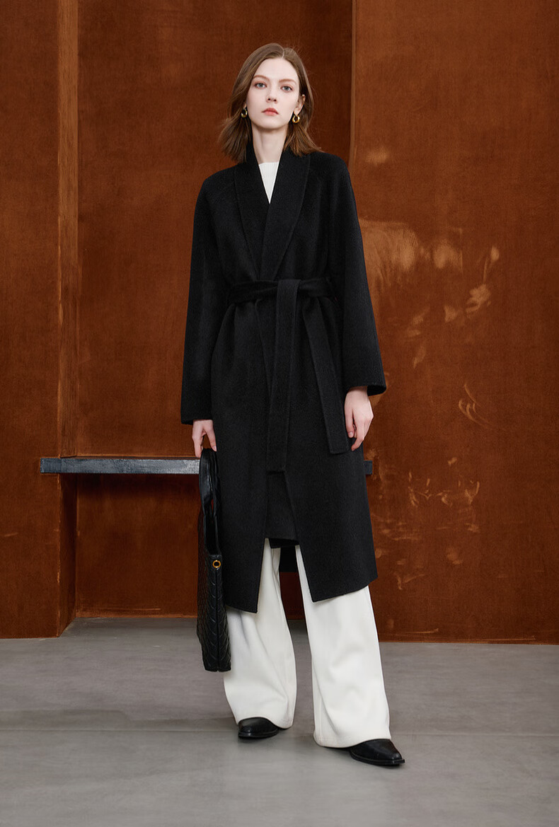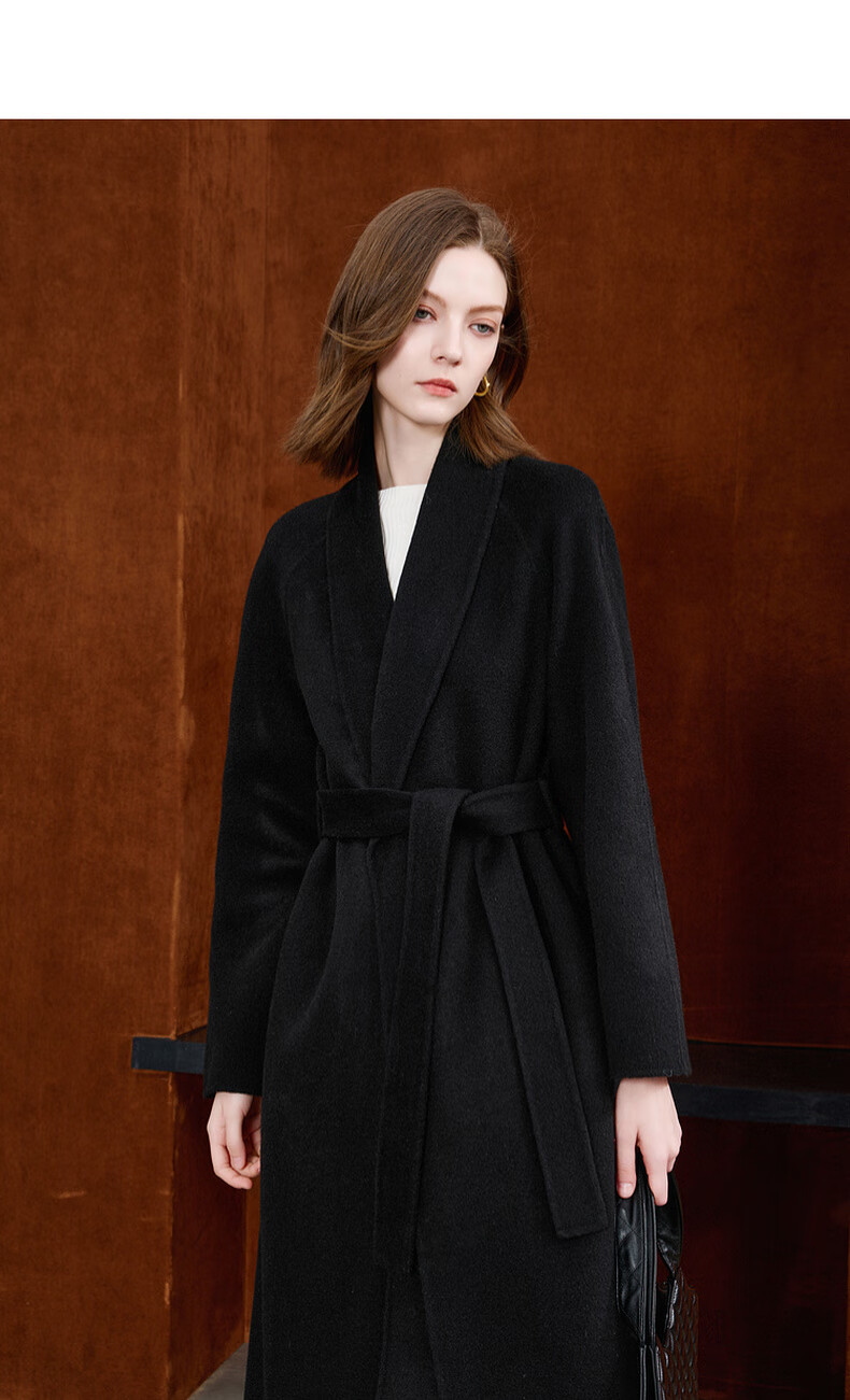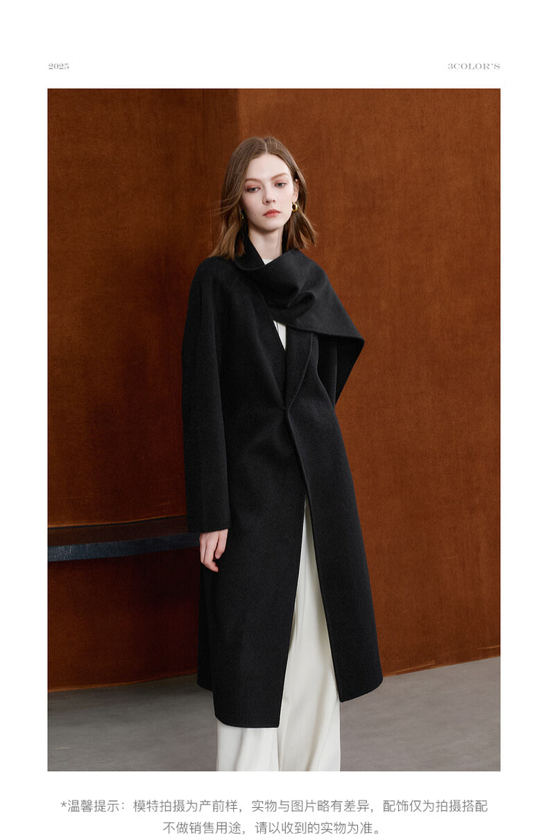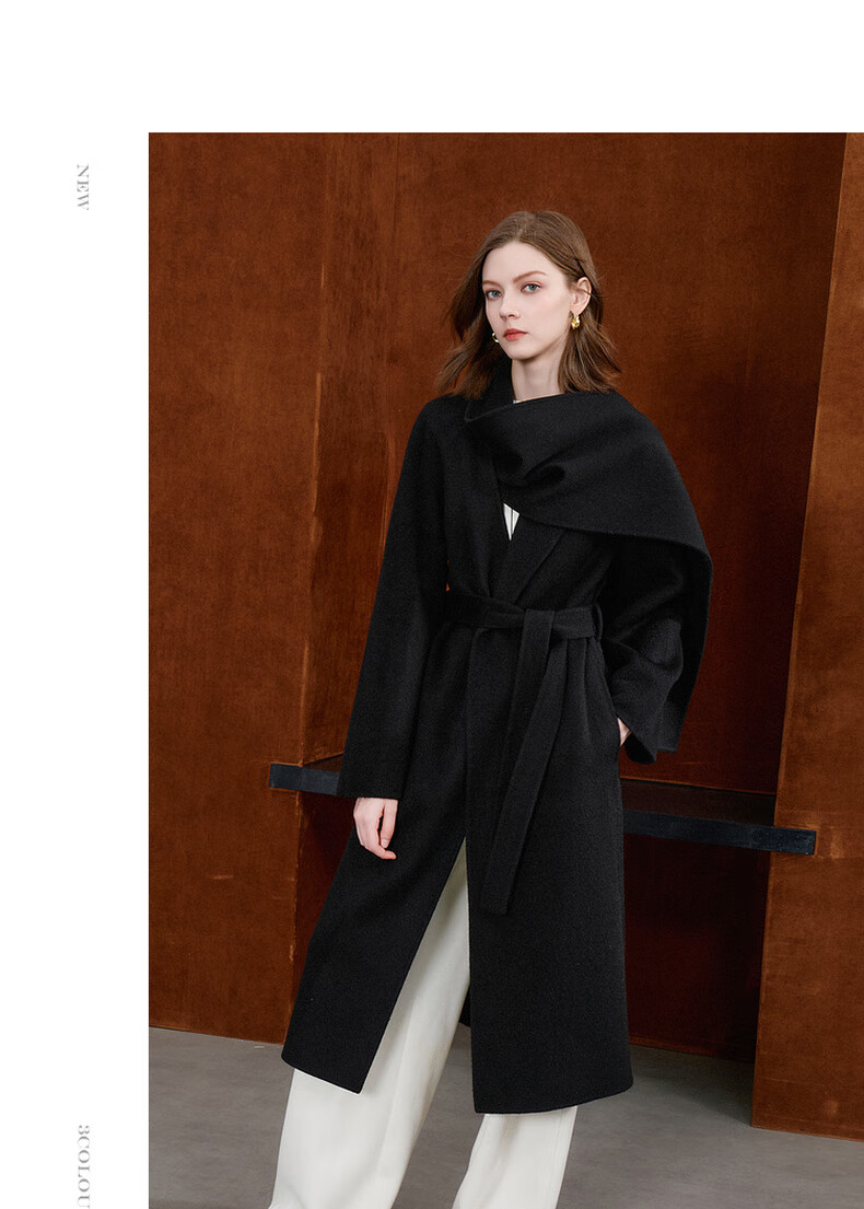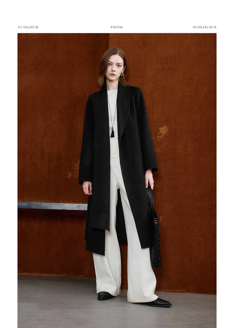 Tricolor 100 sheep wool 2025 winter new double-sided woolen coat long woolen coat minimalist S classic black S 155/80A