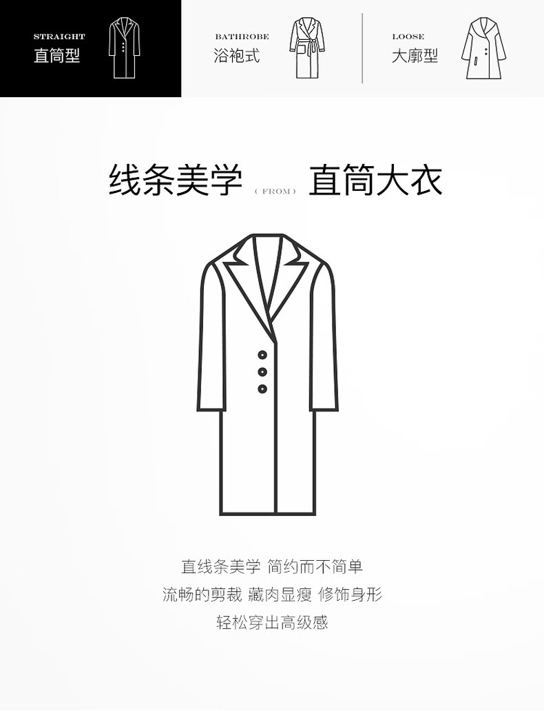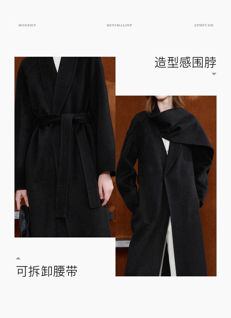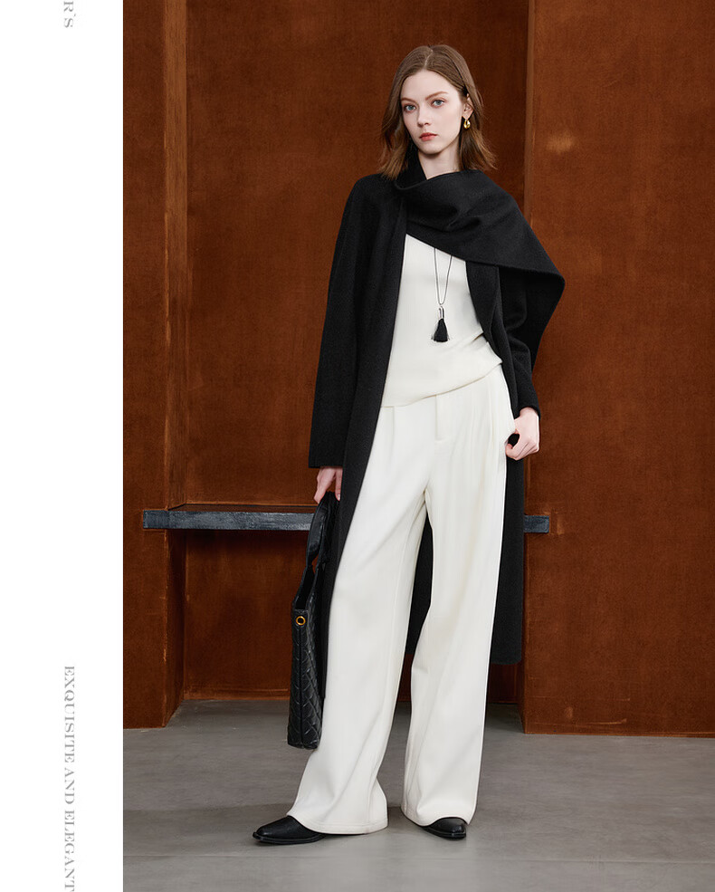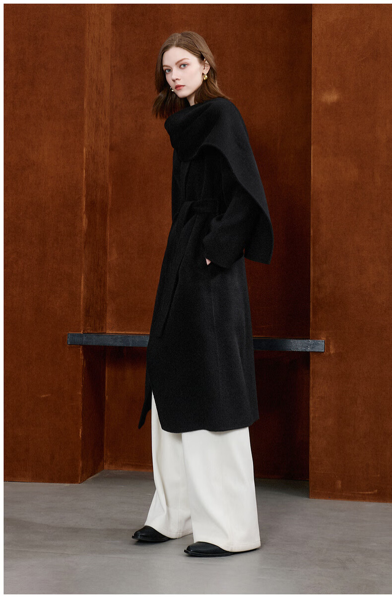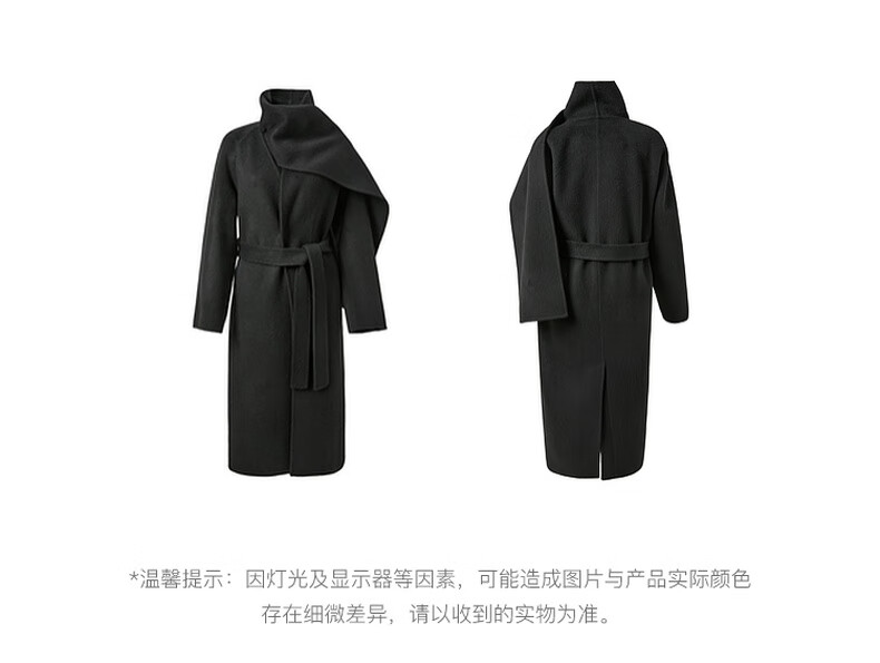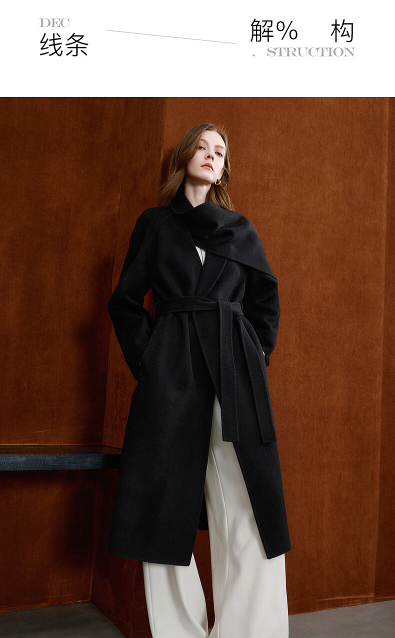 Tricolor 100 sheep wool 2025 winter new double-sided woolen coat long woolen coat minimalist S classic black S 155/80A