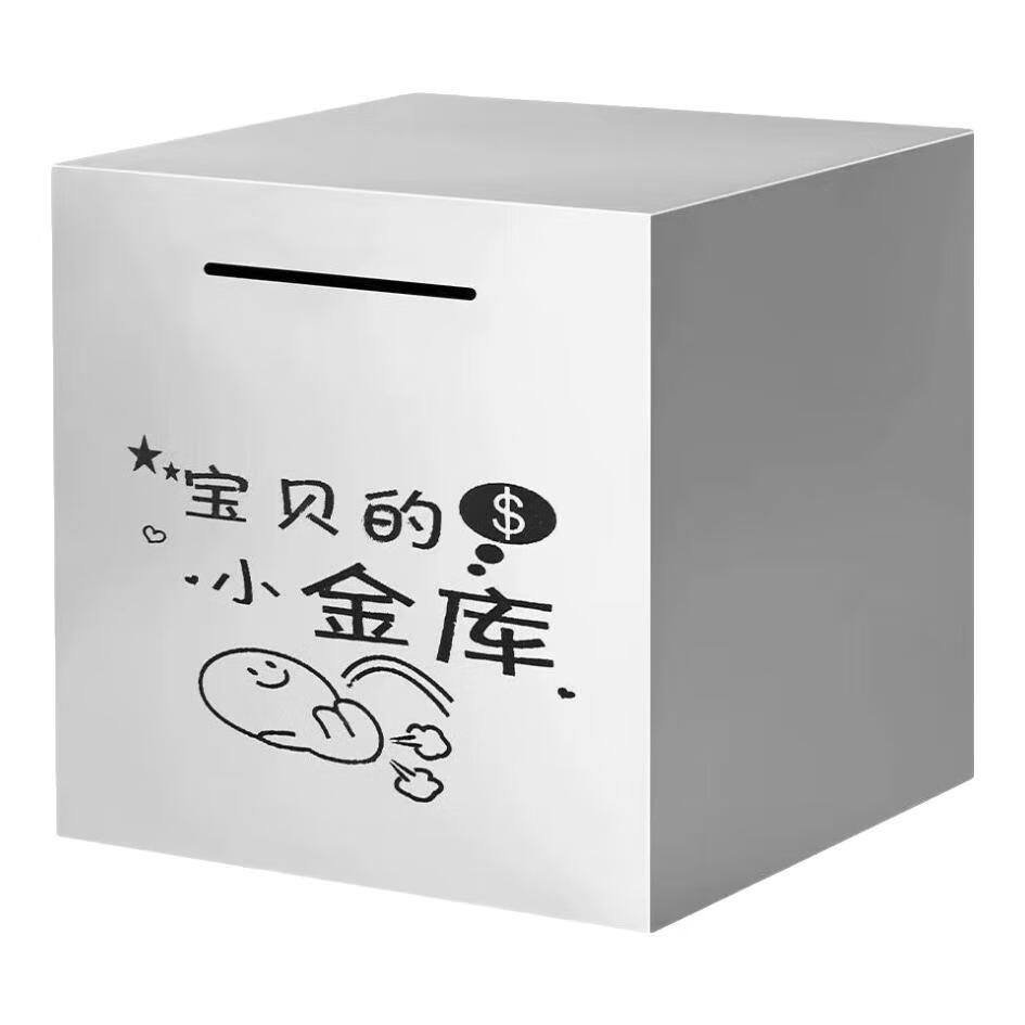 The stainless steel piggy bank can only go in and out. The 2025 anti-rust and anti-fall paper piggy bank Internet celebrity model can only go in and out. Baby's small vault 15*15 medium size. Stainless steel can only go in and out.