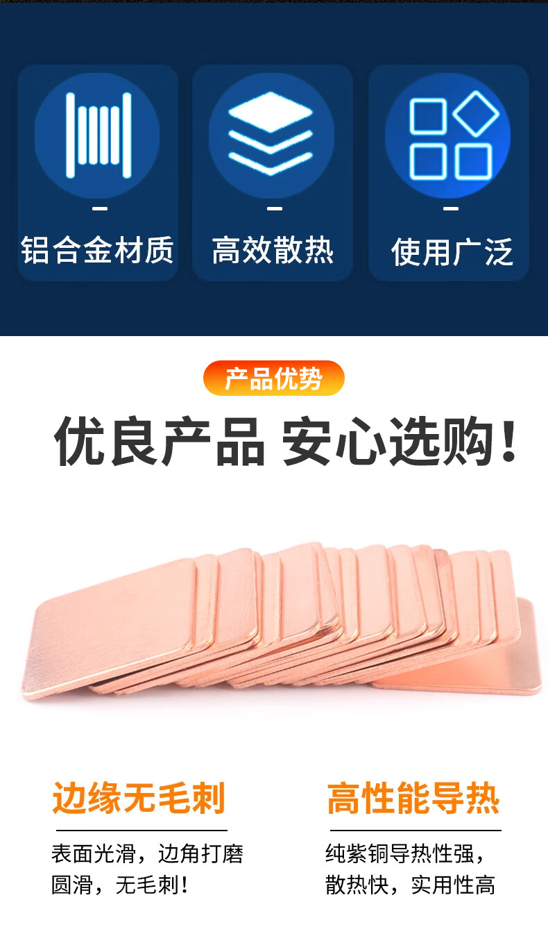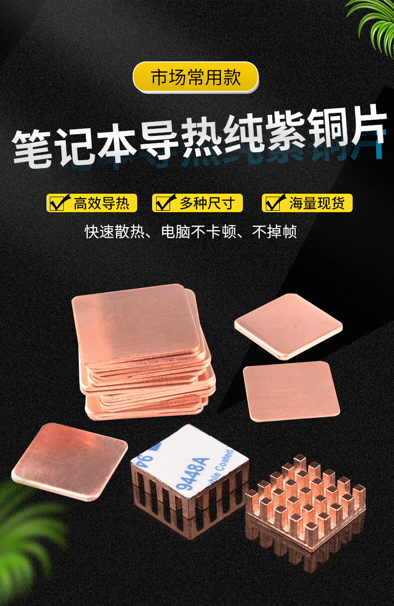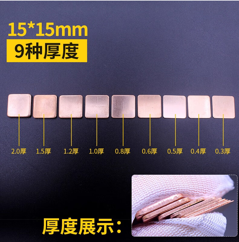 Heat dissipation copper sheet computer mobile phone/graphics card/CPU notebook DIY thermal conductive copper sheet cooling patch 5 pieces 15*15*0.3mm (5 pieces) No specifications