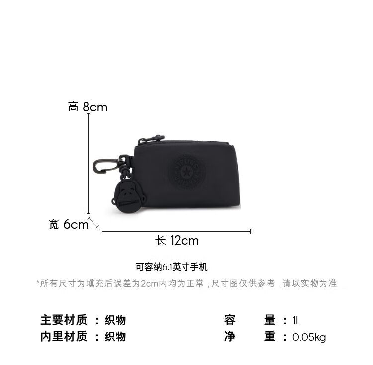 Kipling Women's 2025 Autumn and Winter New Lightweight Card Holder Wallet Hand Cloud Bag ELENI MINI Official Authentic MINI-Plain Black