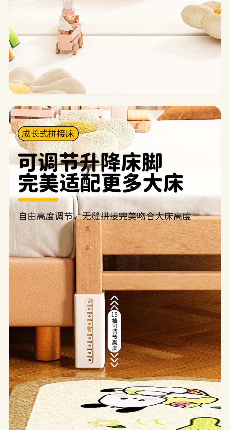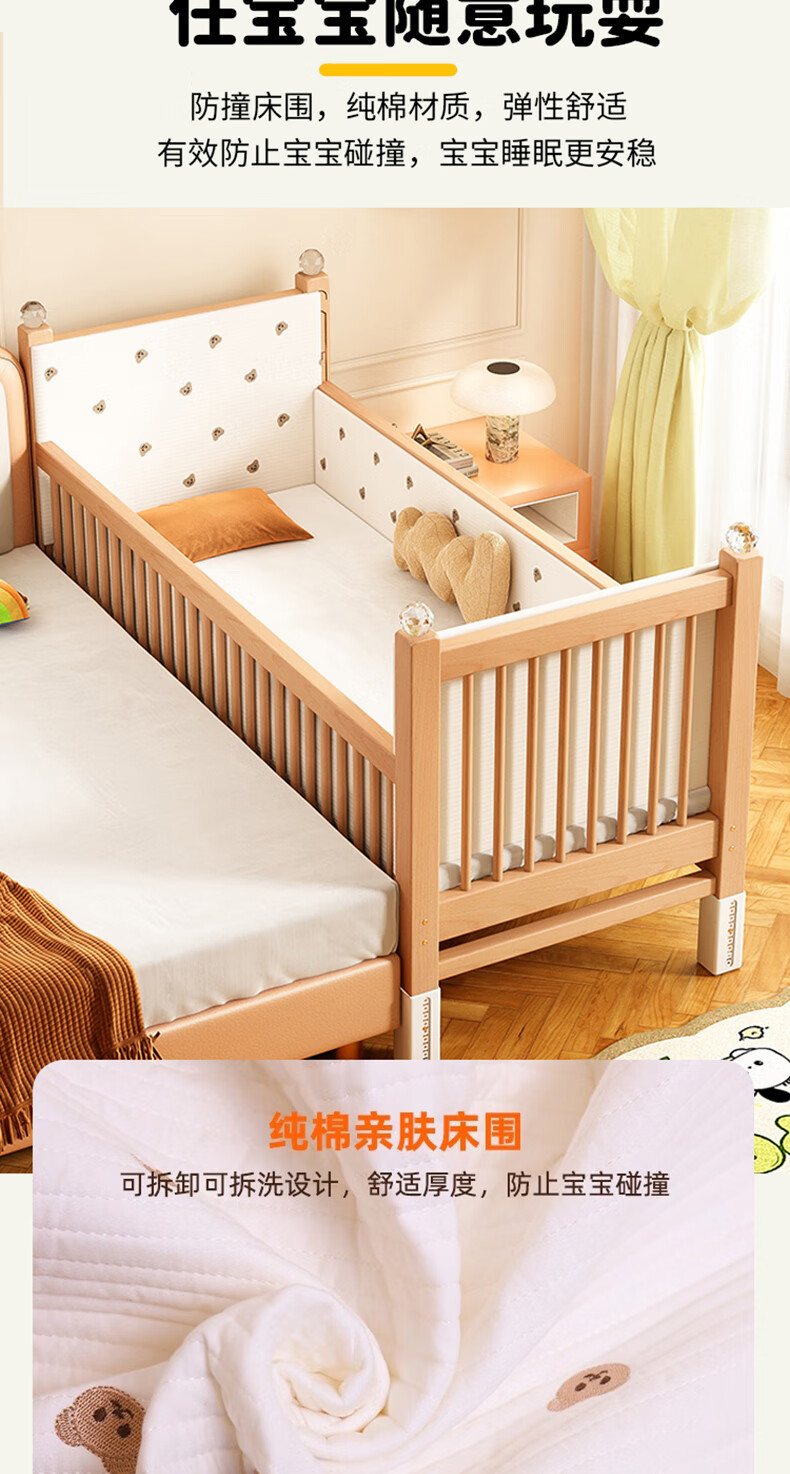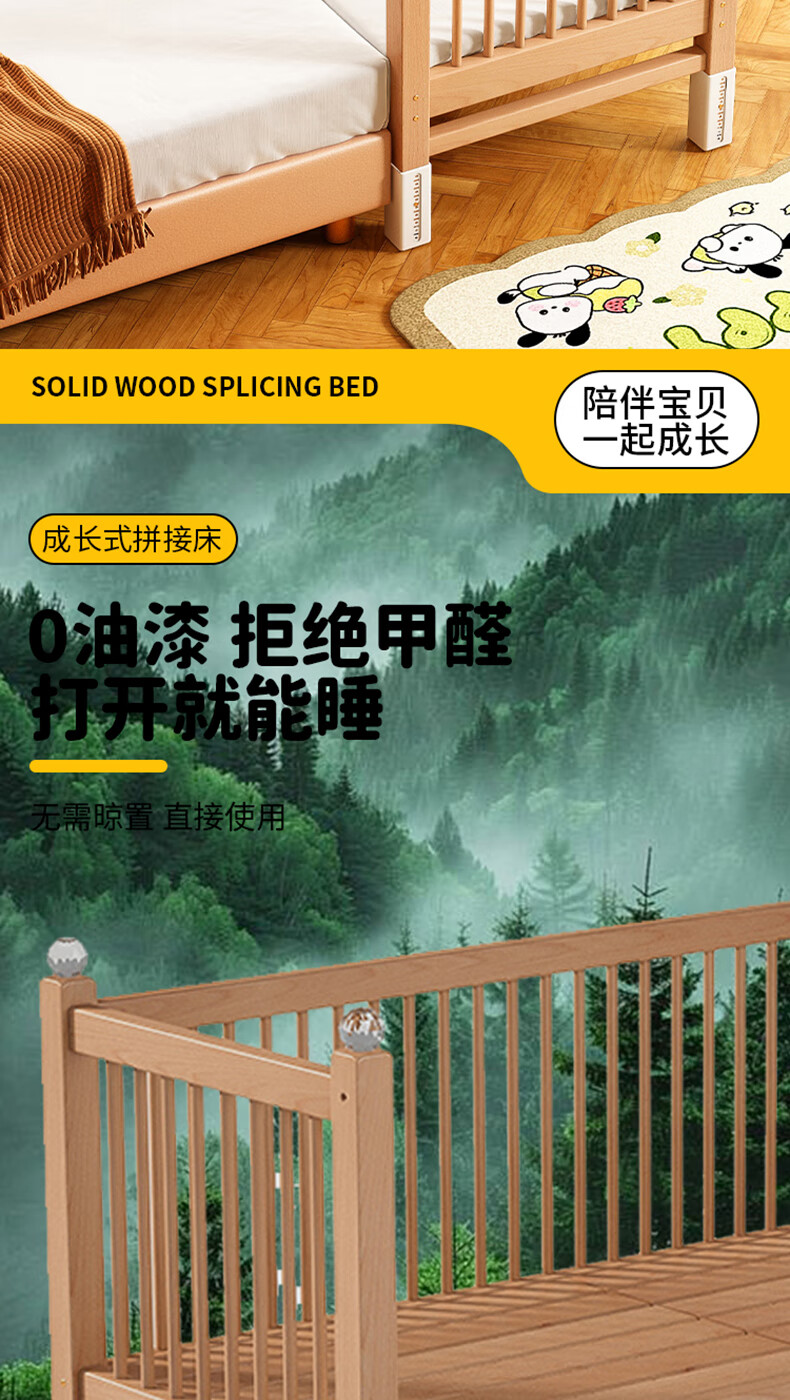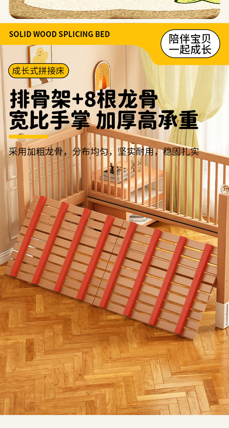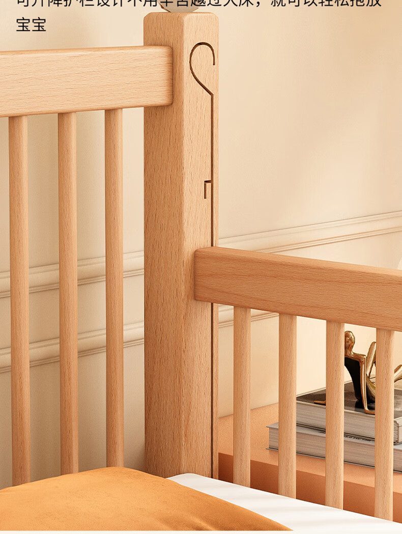 Zhiqushu all solid wood liftable beech wood spliced bed children's bed crib widened spliced large bed bedside bed can be customized three guardrails + 6cm coconut palm mattress + side lift can lift length 200 width 60 height 35 60 guardrails
