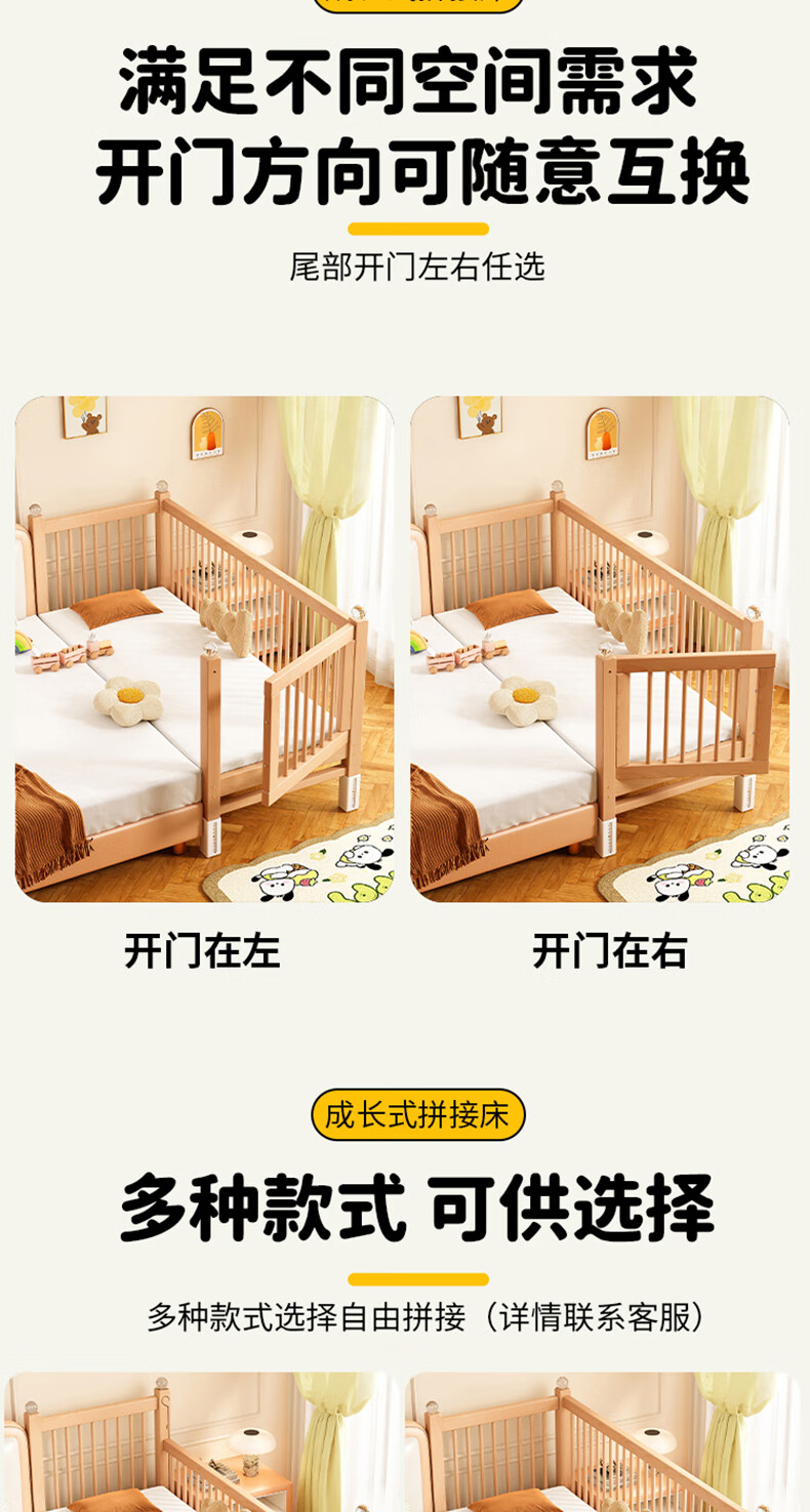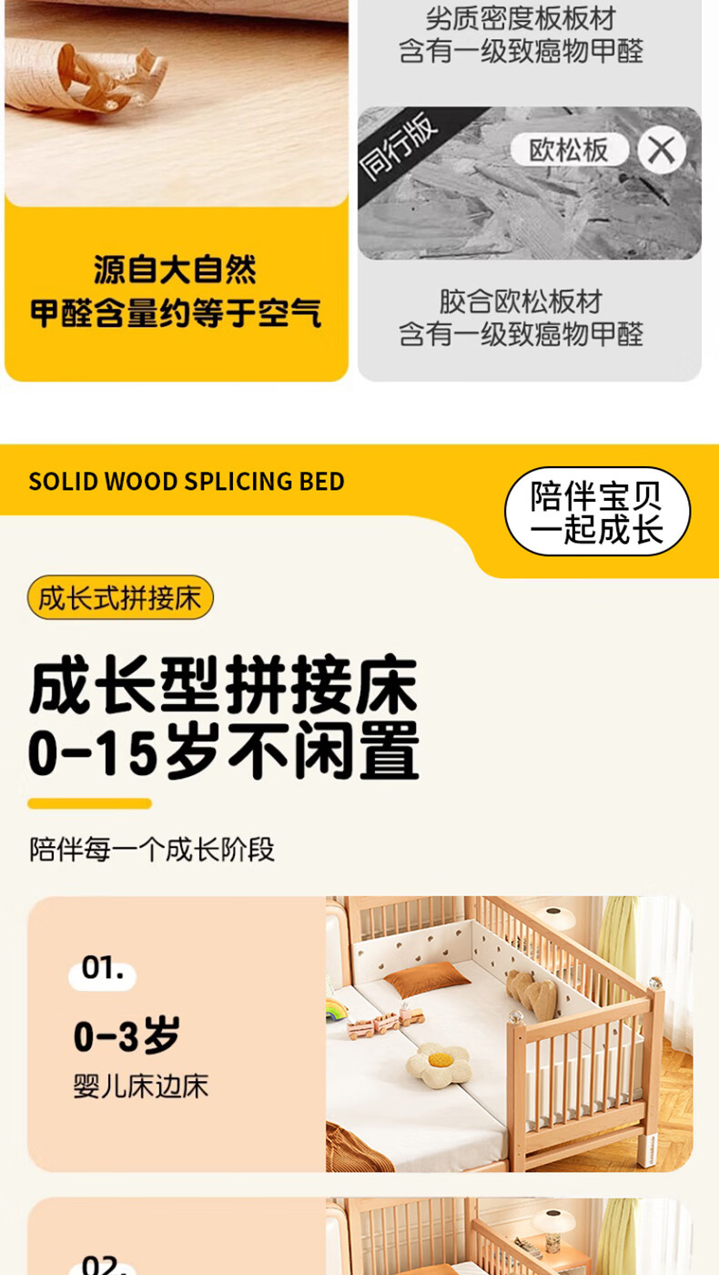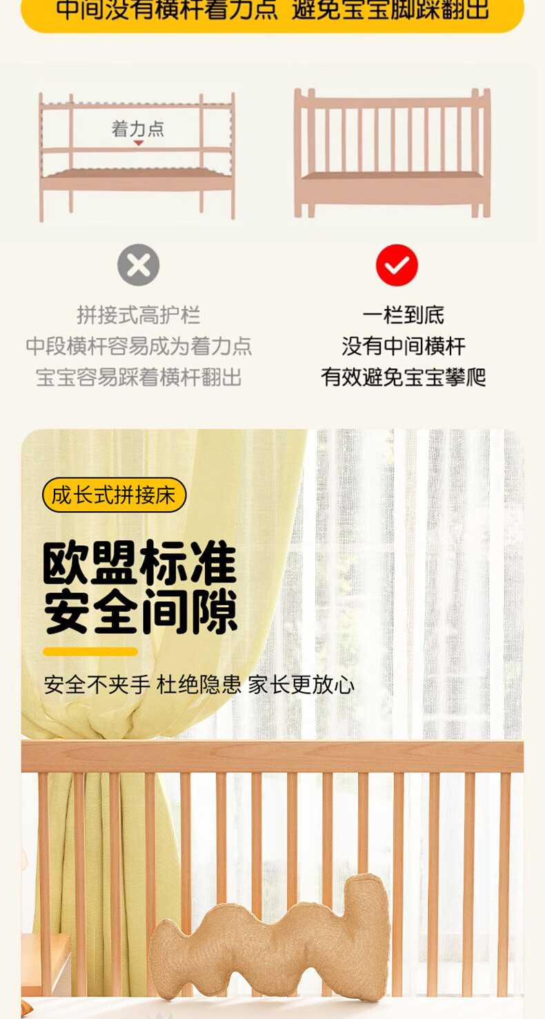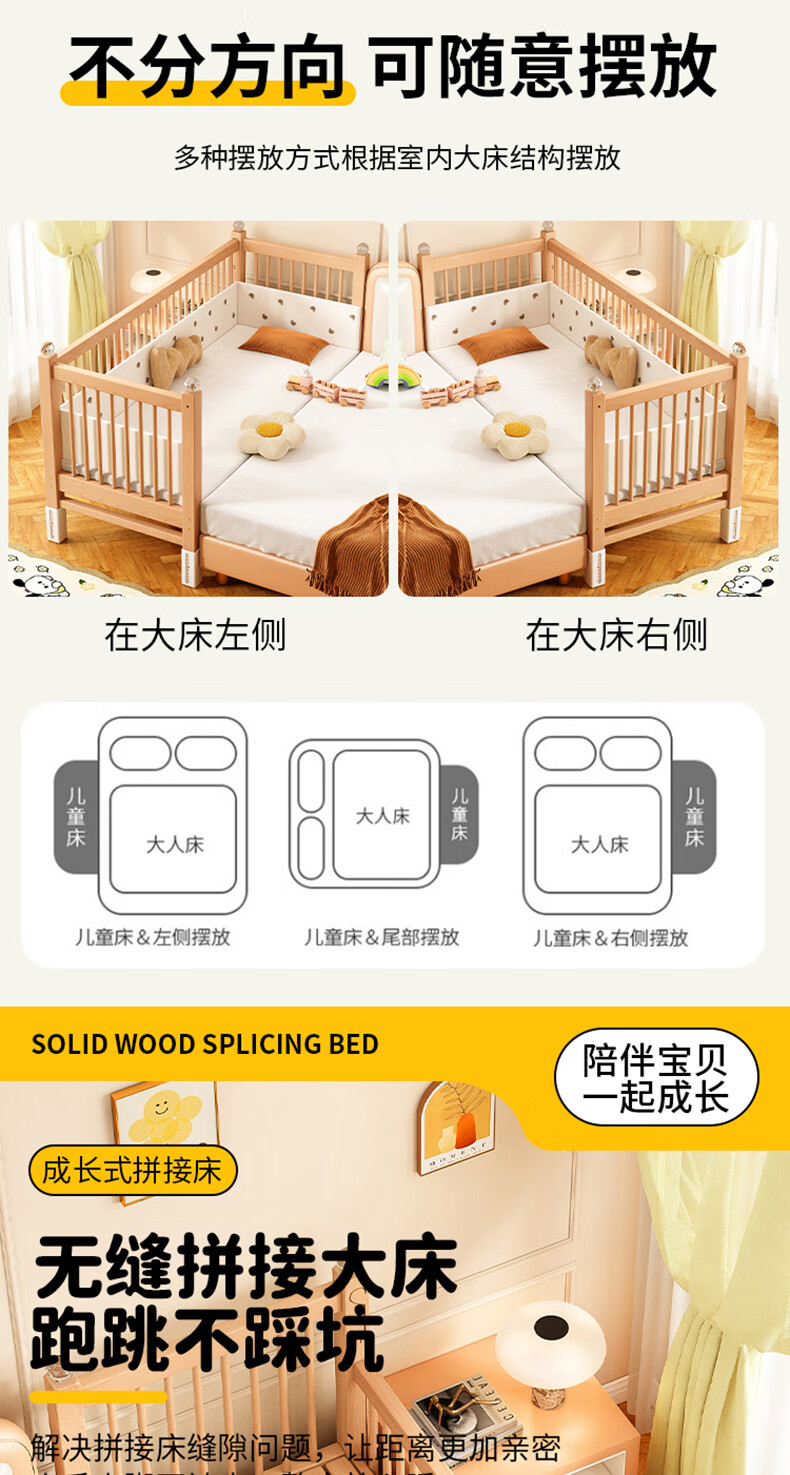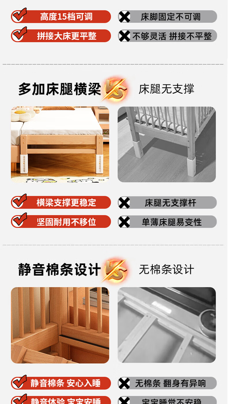 Zhiqushu all solid wood liftable beech wood spliced bed children's bed crib widened spliced large bed bedside bed can be customized three guardrails + 6cm coconut palm mattress + side lift can lift length 200 width 60 height 35 60 guardrails