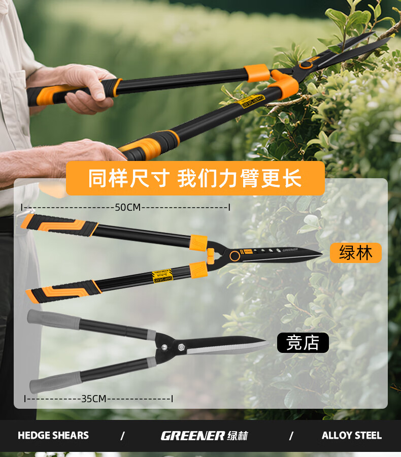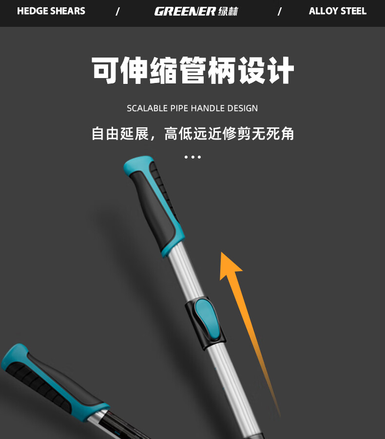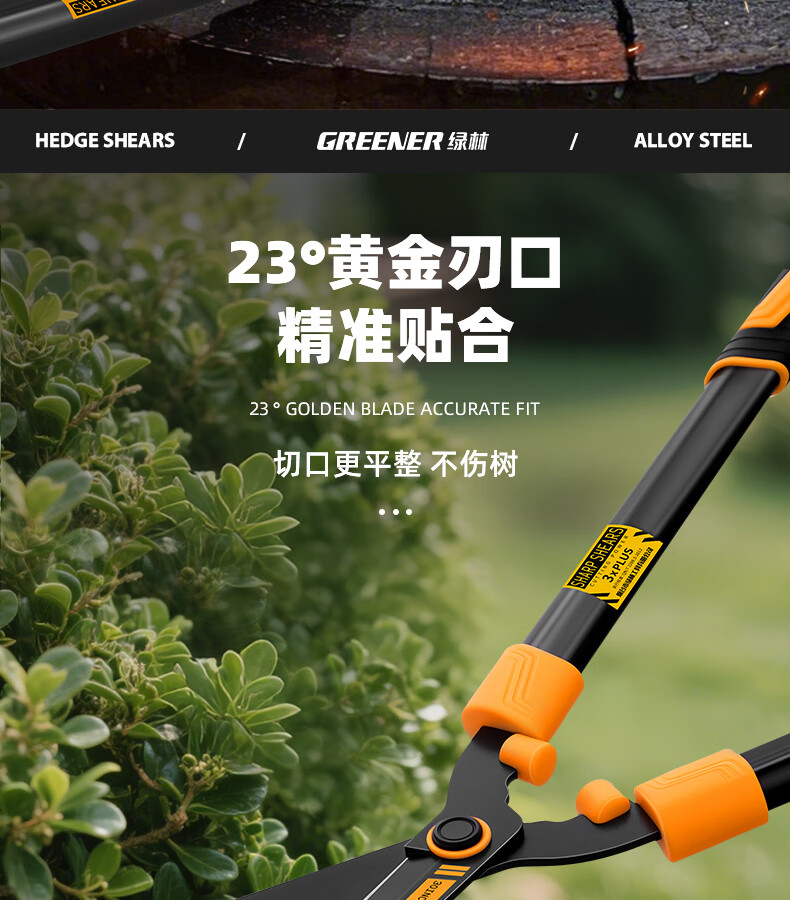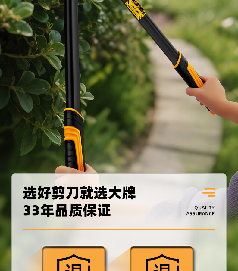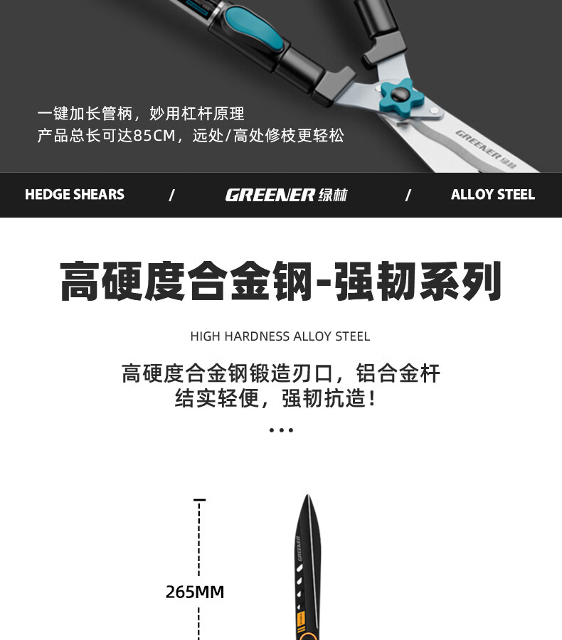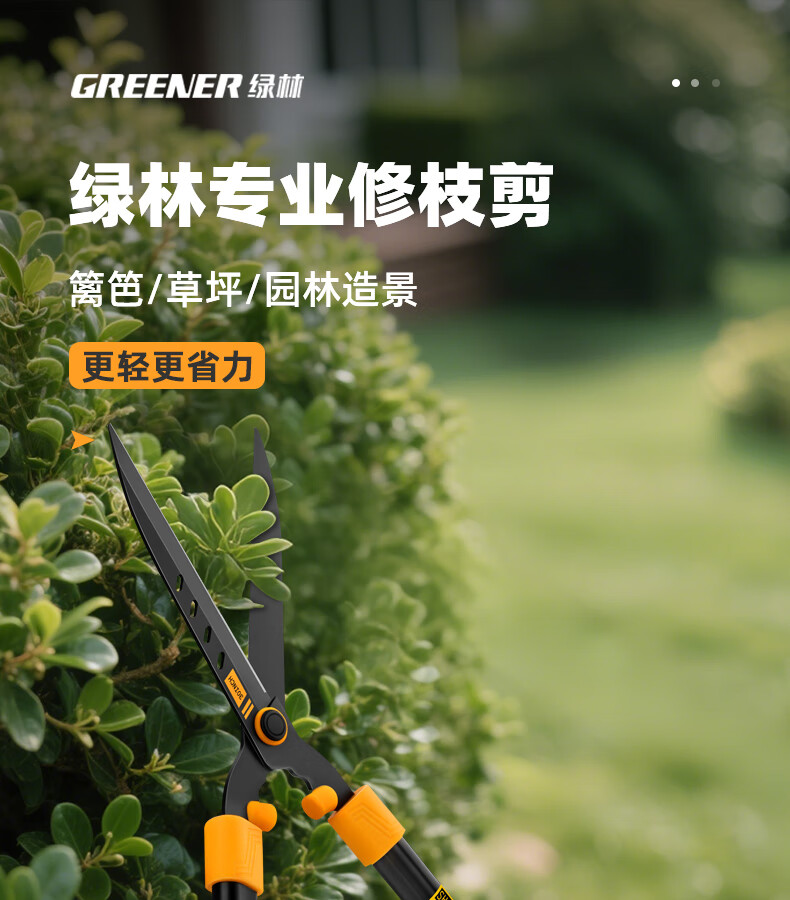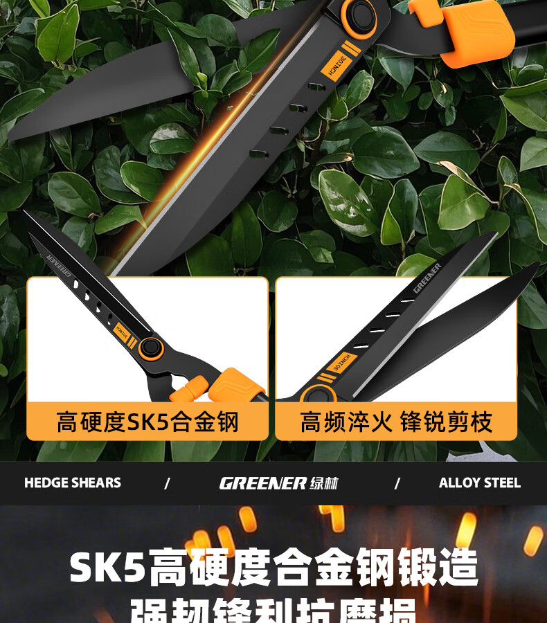 Green forest gardening scissors, lawn hedges, gardening shears, saplings, high branch shears, special scissors for pruning branches, 99% pruning selection grade - straight blade - 65MN steel blade