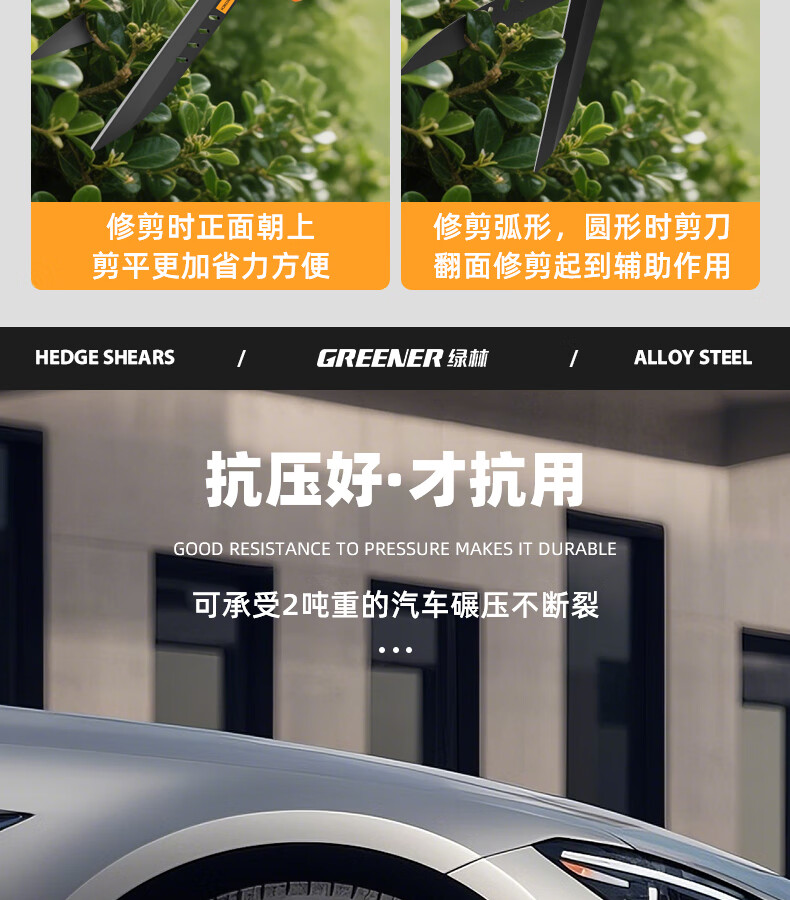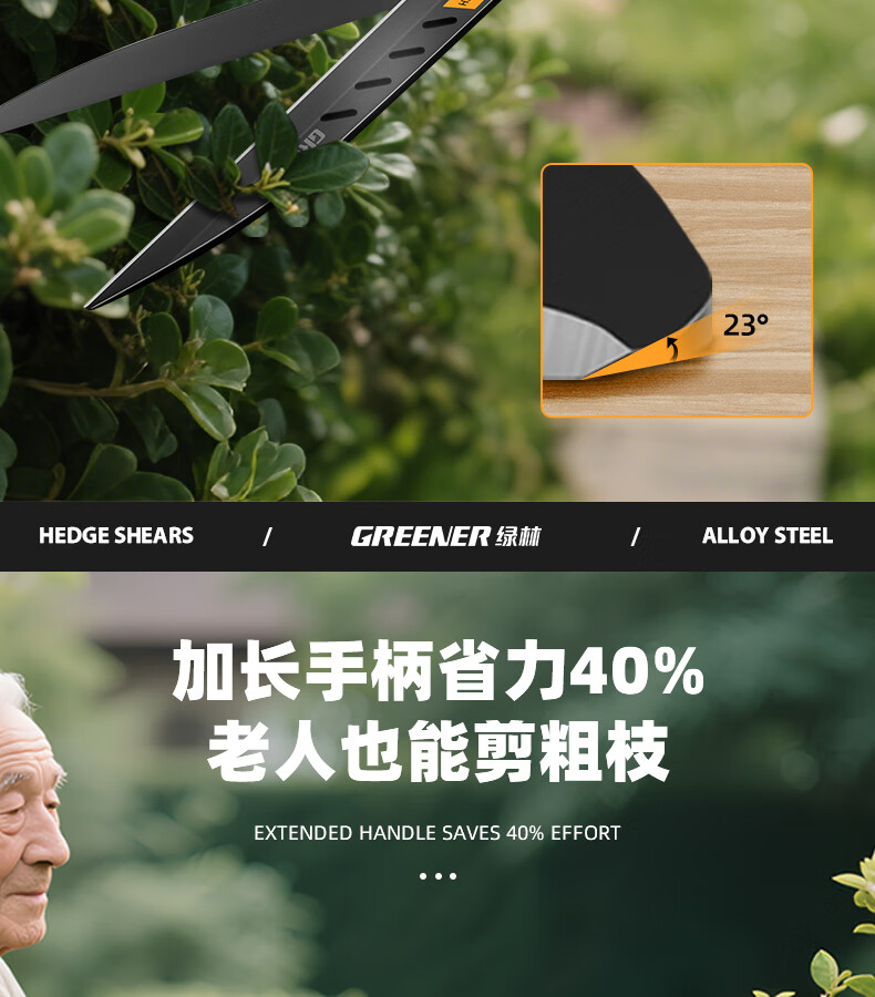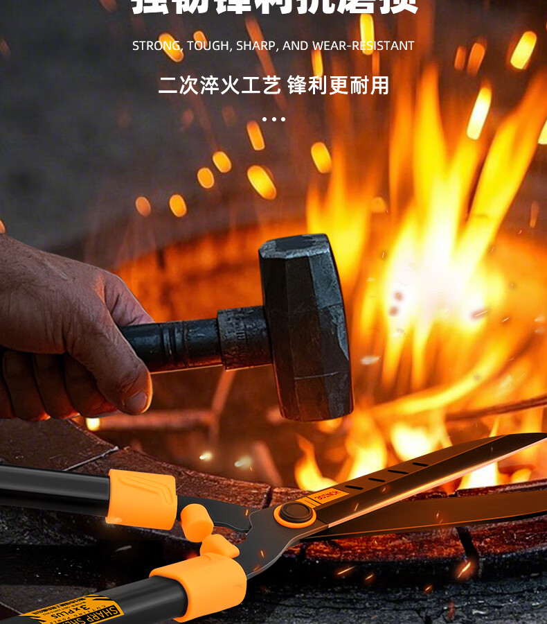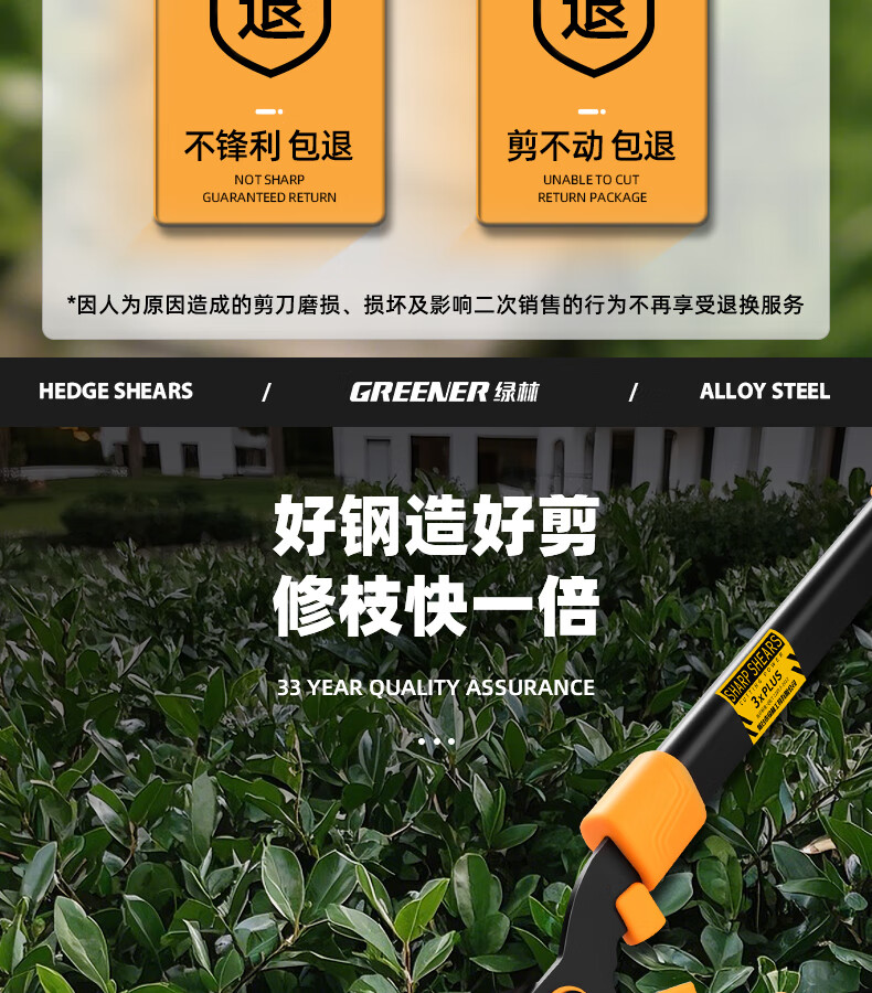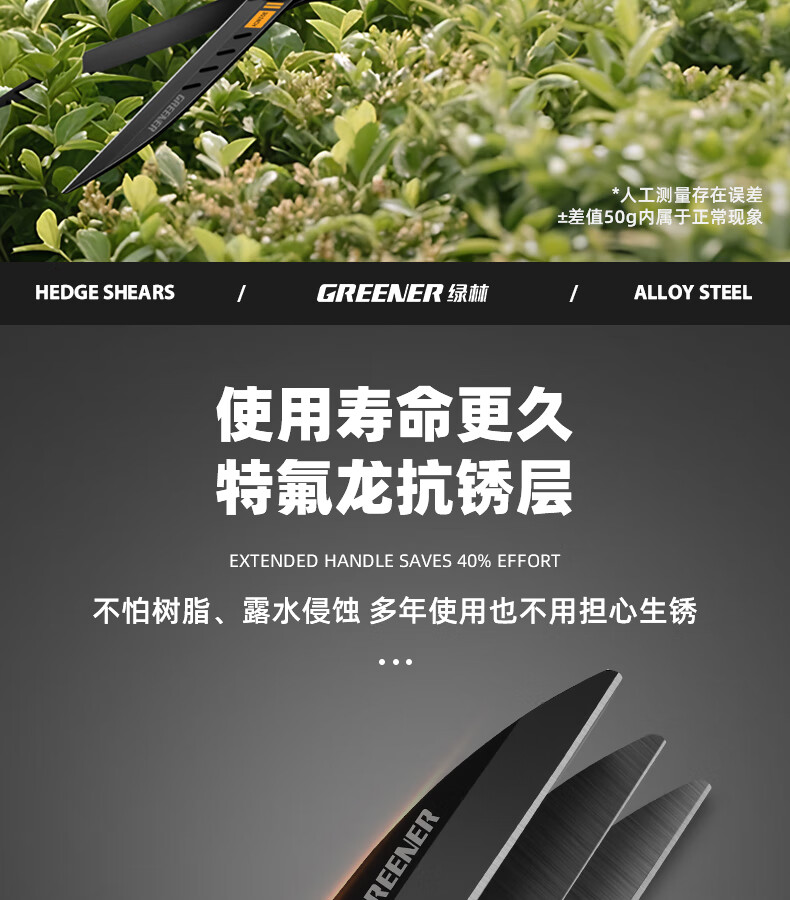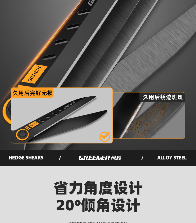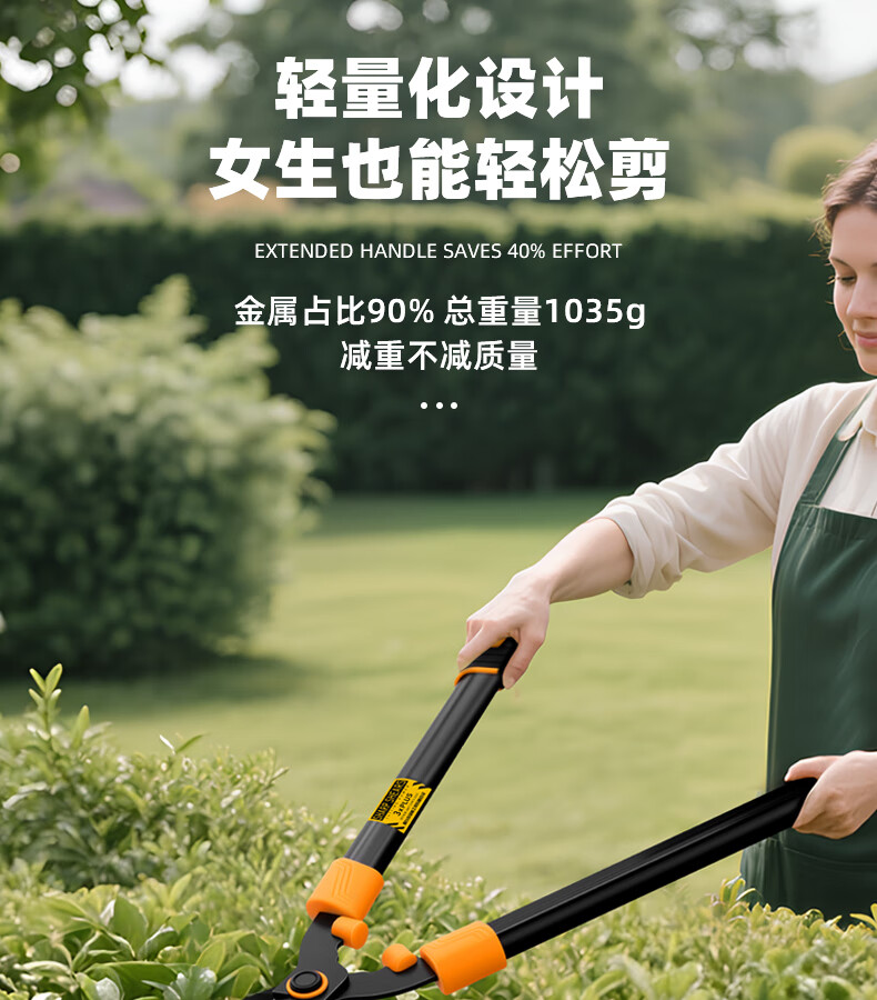 Green forest gardening scissors, lawn hedges, gardening shears, saplings, high branch shears, special scissors for pruning branches, 99% pruning selection grade - straight blade - 65MN steel blade