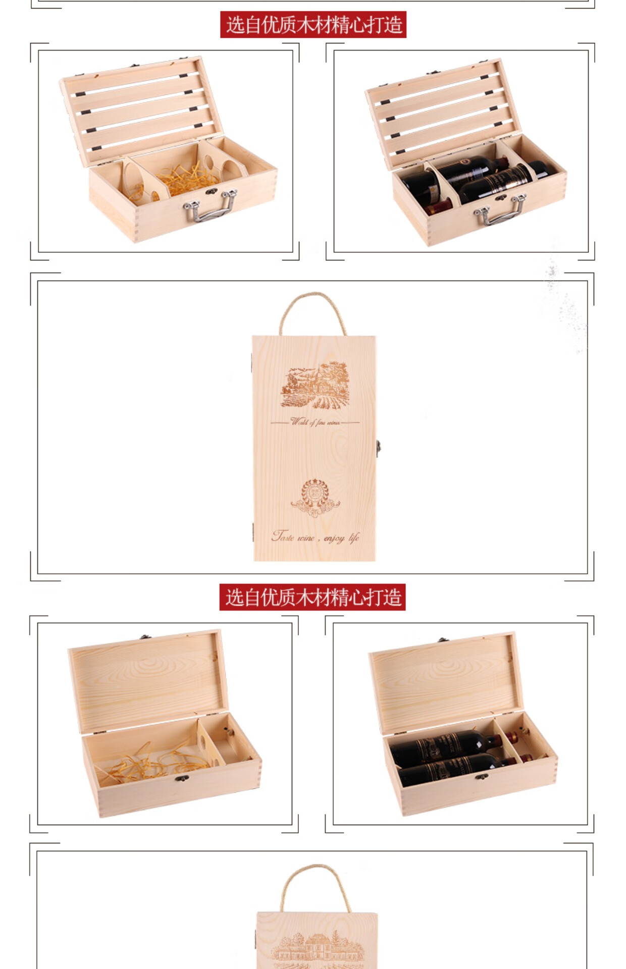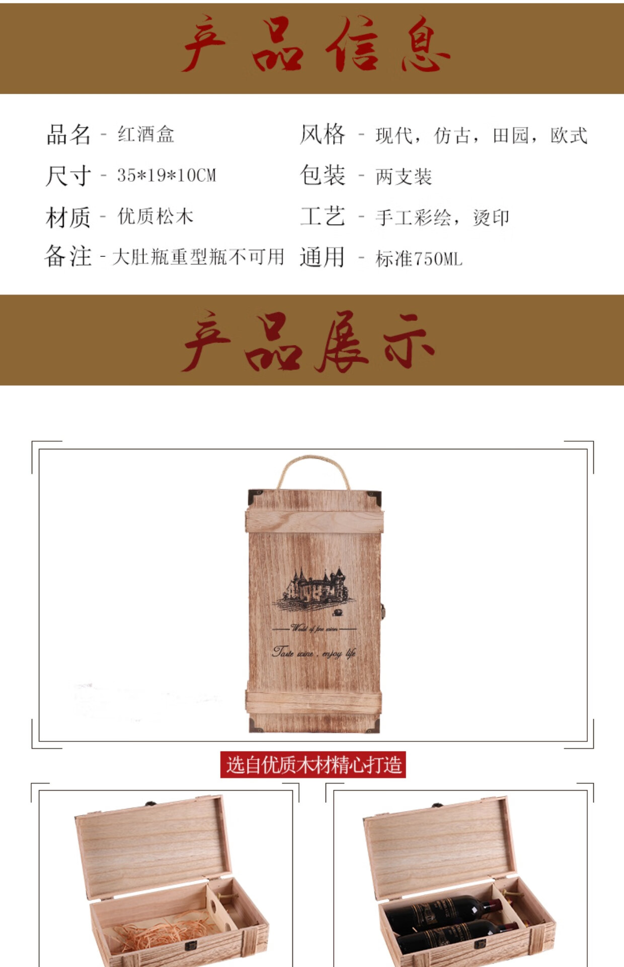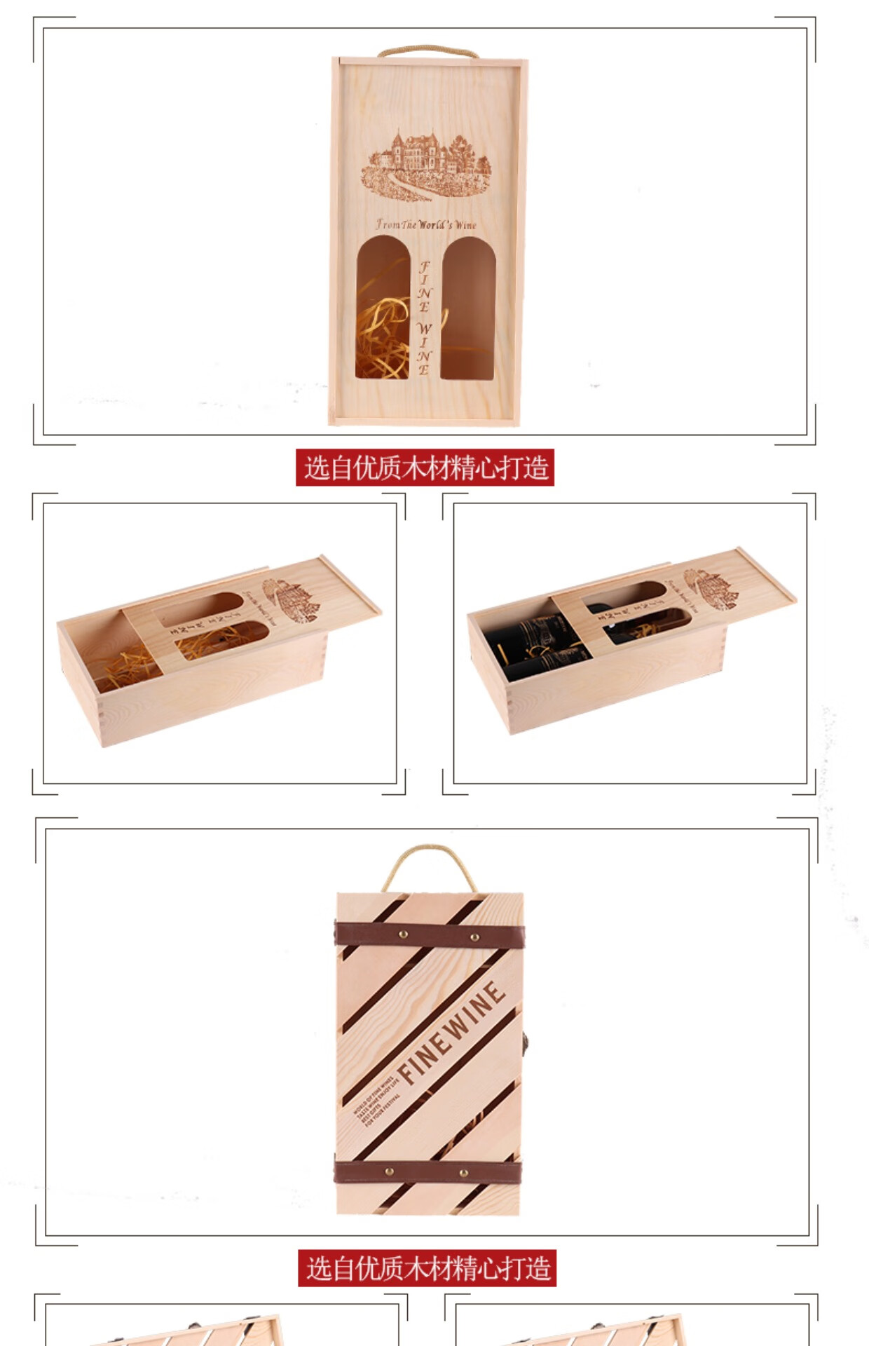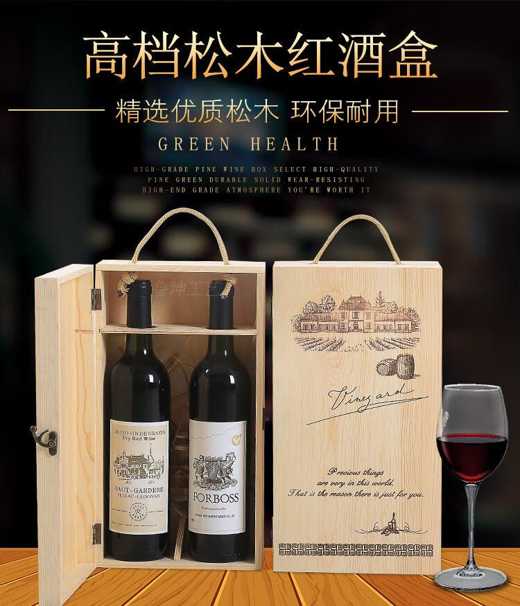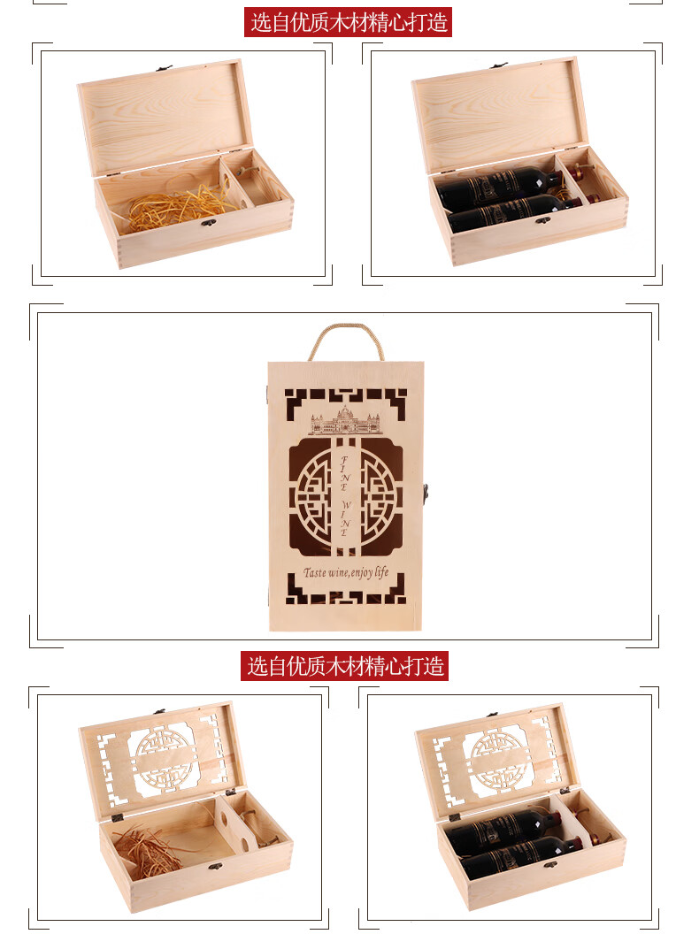 Red wine gift box empty box high-end single and double Paulownia wine packaging box universal red wine wooden box 2-pack double Paulownia wine not included