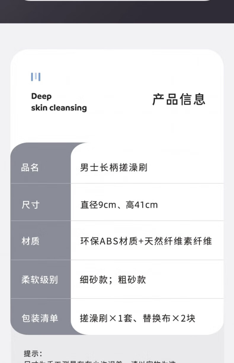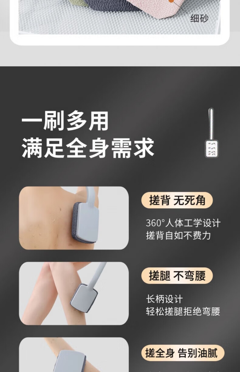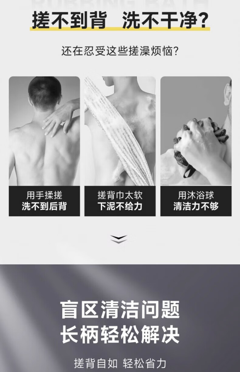 JCZS German brand men's special bath brush and back artifact bath towel rubs back and back powerfully rubs mud on body with long soft hair, relieves itching and removes oil, gray and coarse sand, spiral buckle does not fall off
