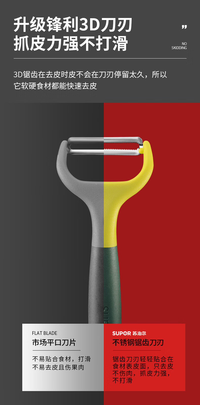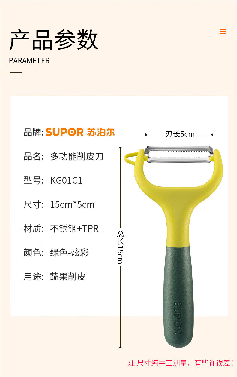 SUPOR paring knife, kitchen household multifunctional peeling knife, potato peeling tool, fruit knife, peeling knife, melon planer, sharp horizontal paring knife (serrated version)