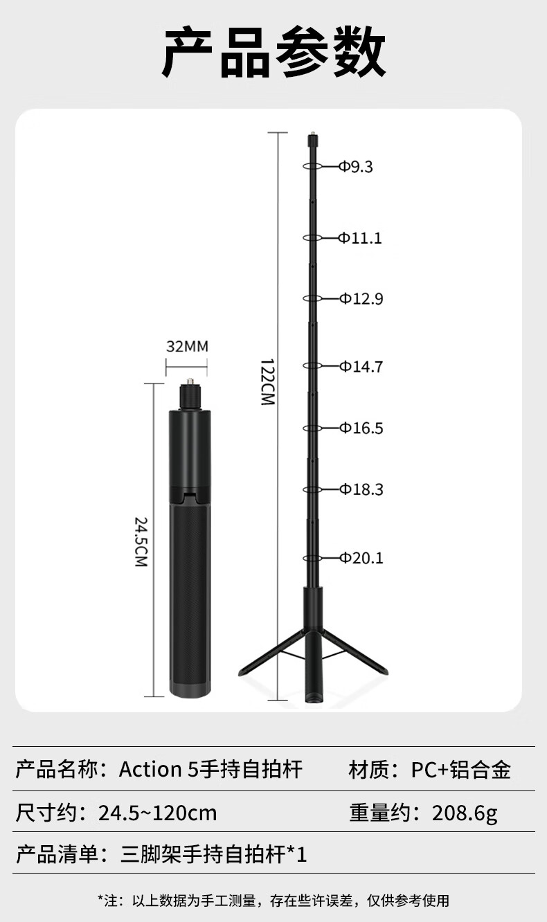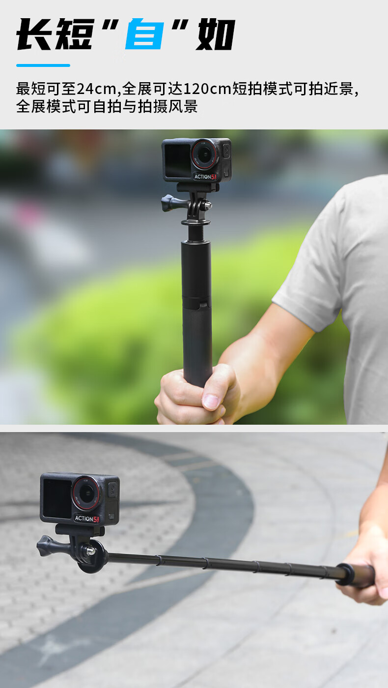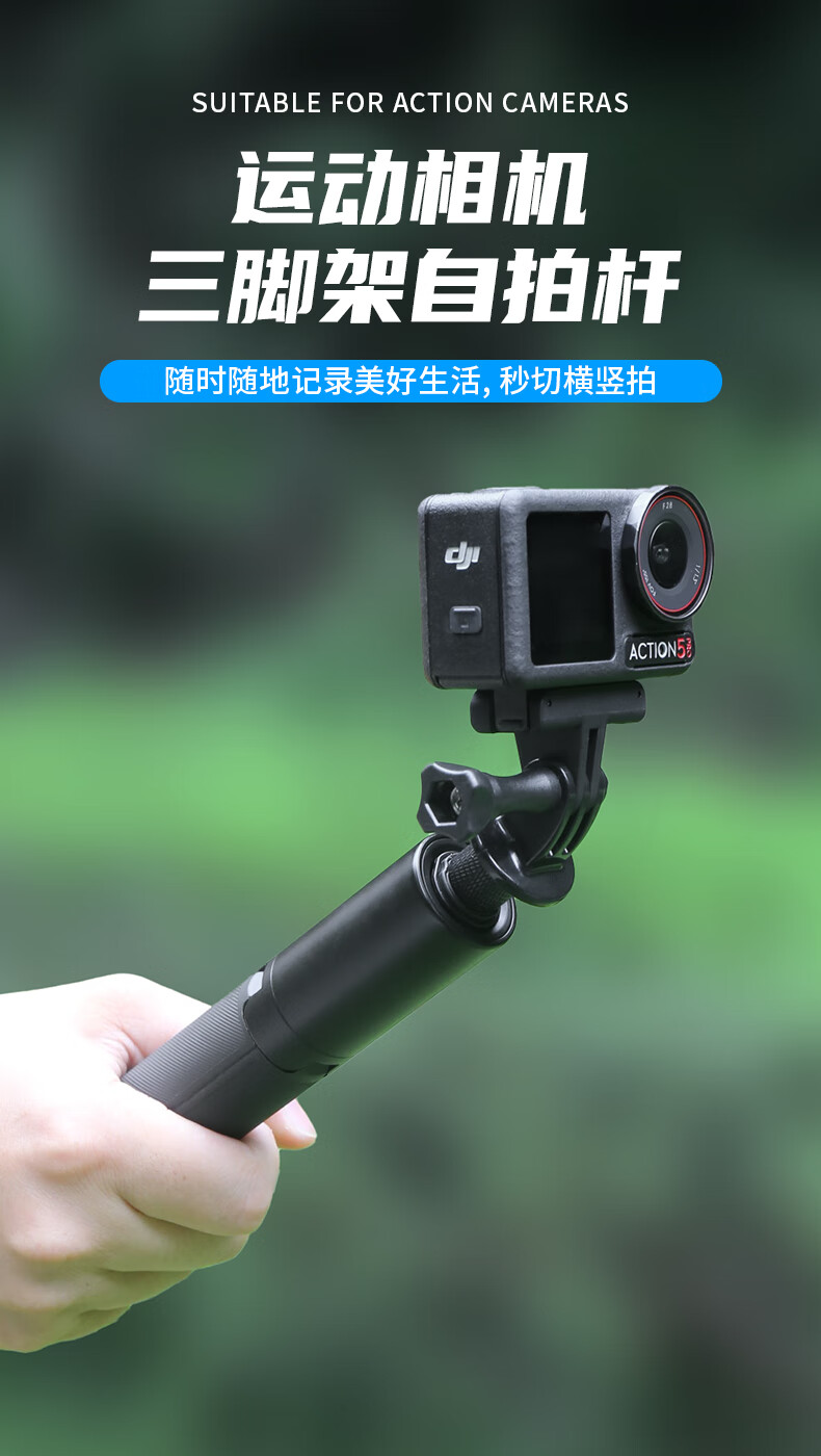 WLOONG DJI Action6/5Pro/4/3 Selfie Stick Handheld Action Camera Accessories Extension Rod Tripod Fixing Bracket Retractable Handheld Floor Tripod + Storage Bag