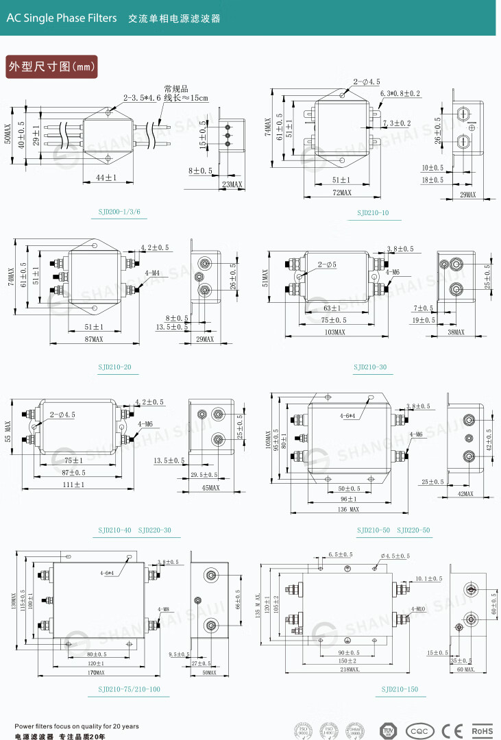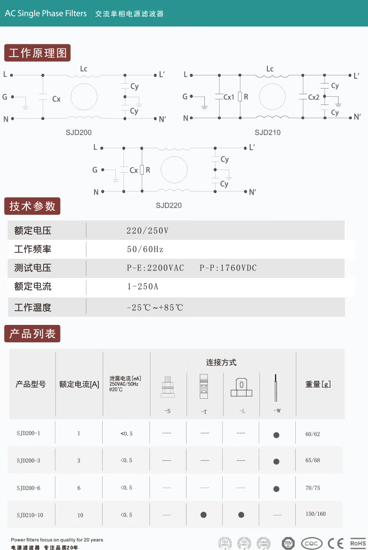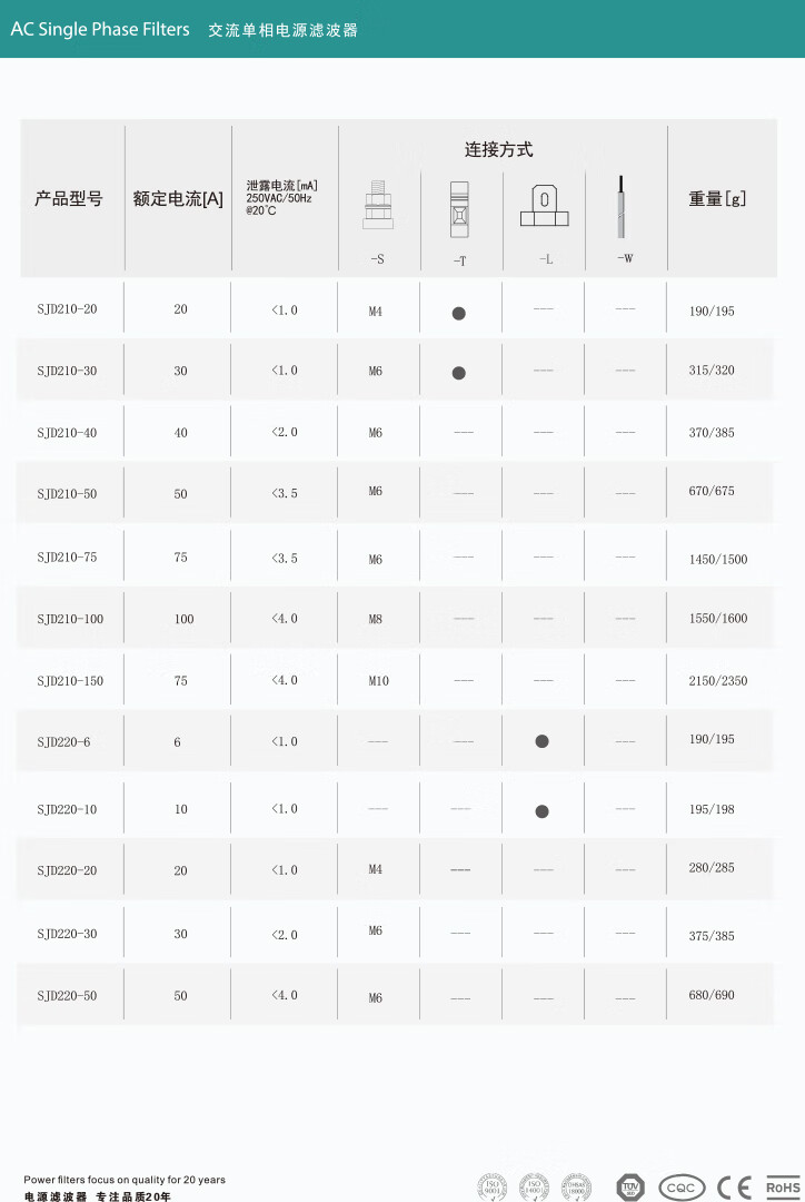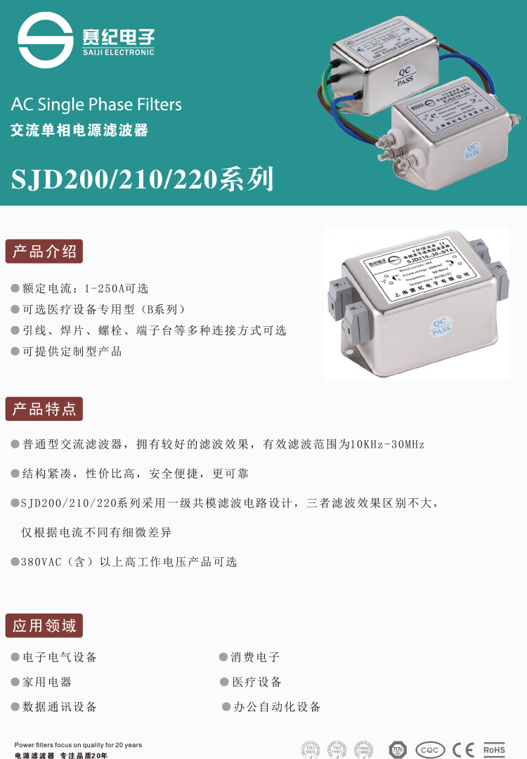 Saiji power filter SJD200 210 single-phase AC 220V low-pass anti-interference purification universal 3A6A10A20A SJD200-1A filter