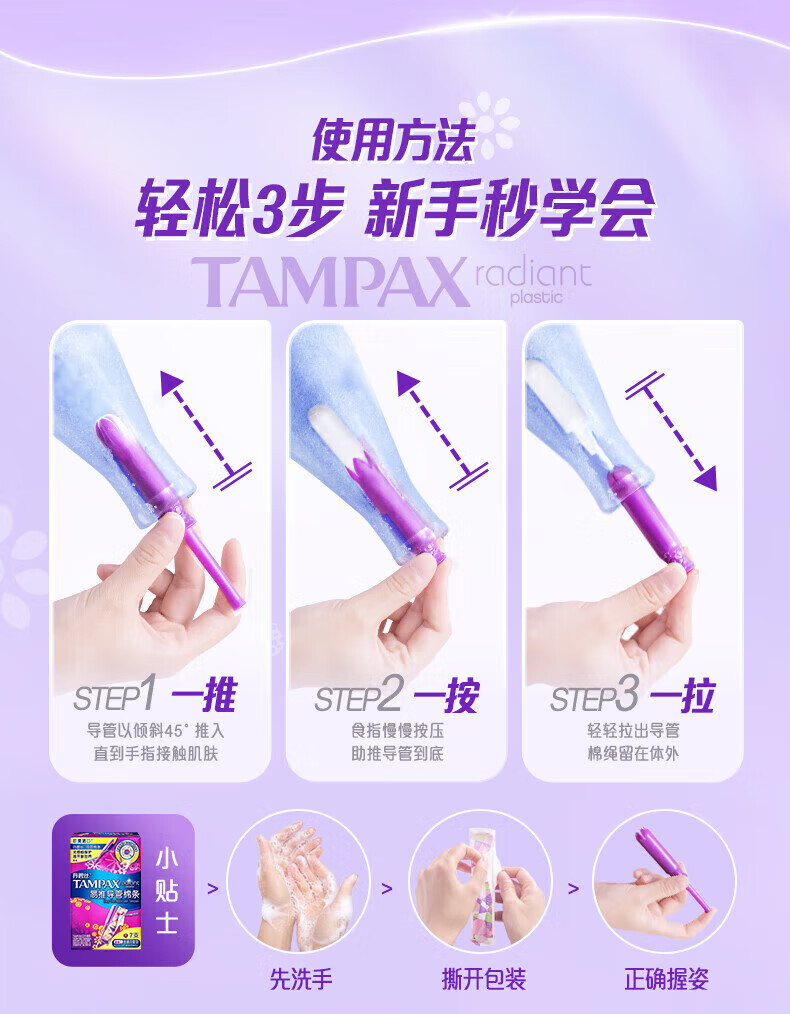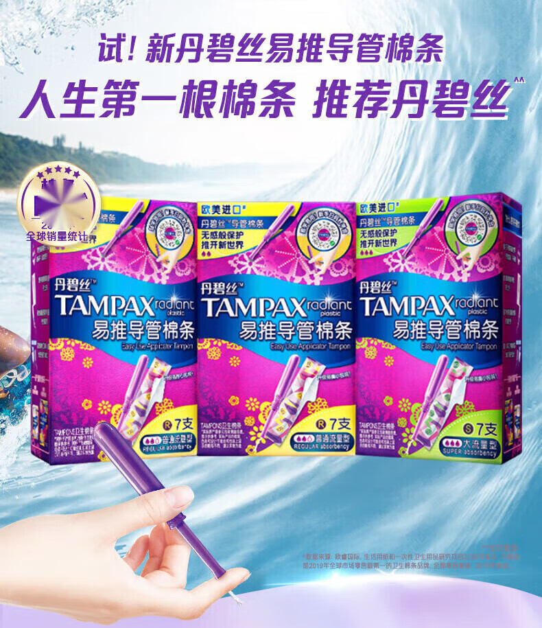 Danbisi imported easy-to-push catheter-type tampons, novices try swimming built-in sanitary napkins, portable short catheter, large flow, 7 pieces, 1 pack