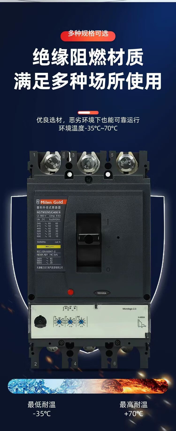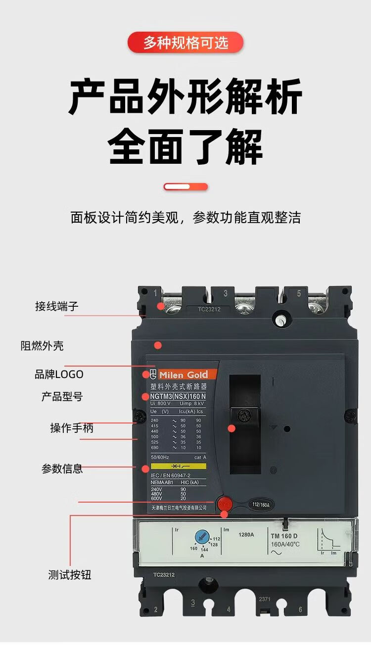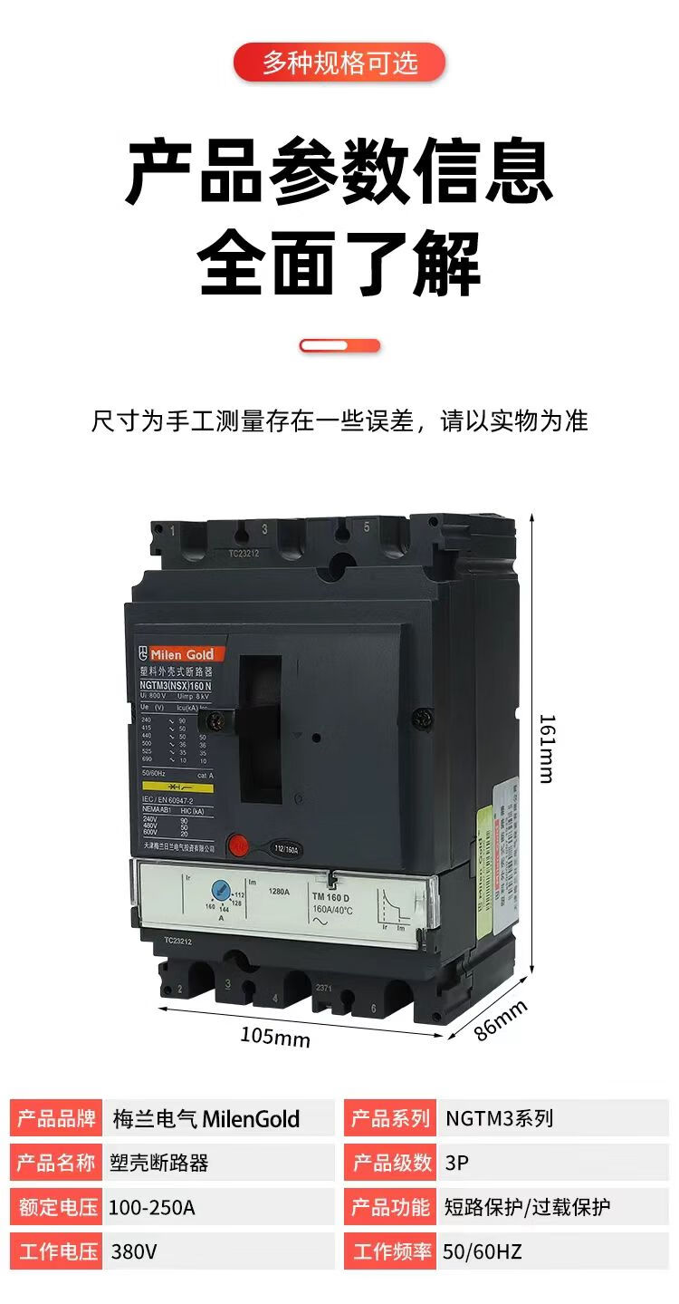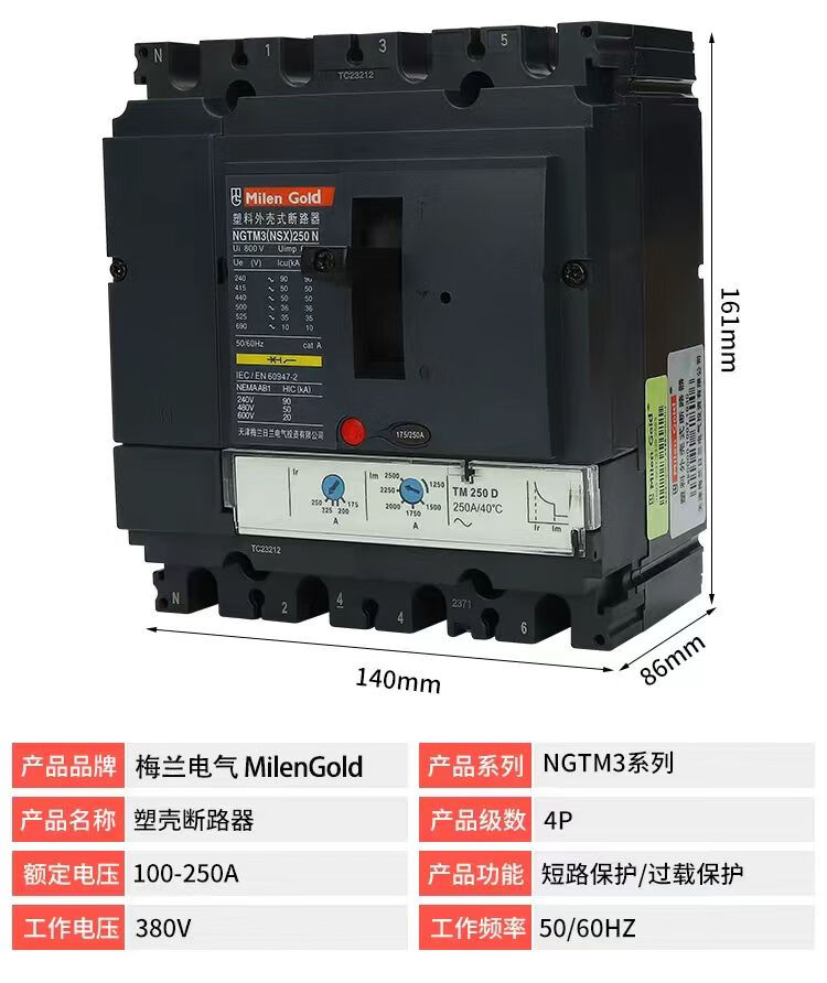 Tianjin Meilan Rilan NSX molded case circuit breaker NS100A master control switch 630A molded case air switch 100A 3P