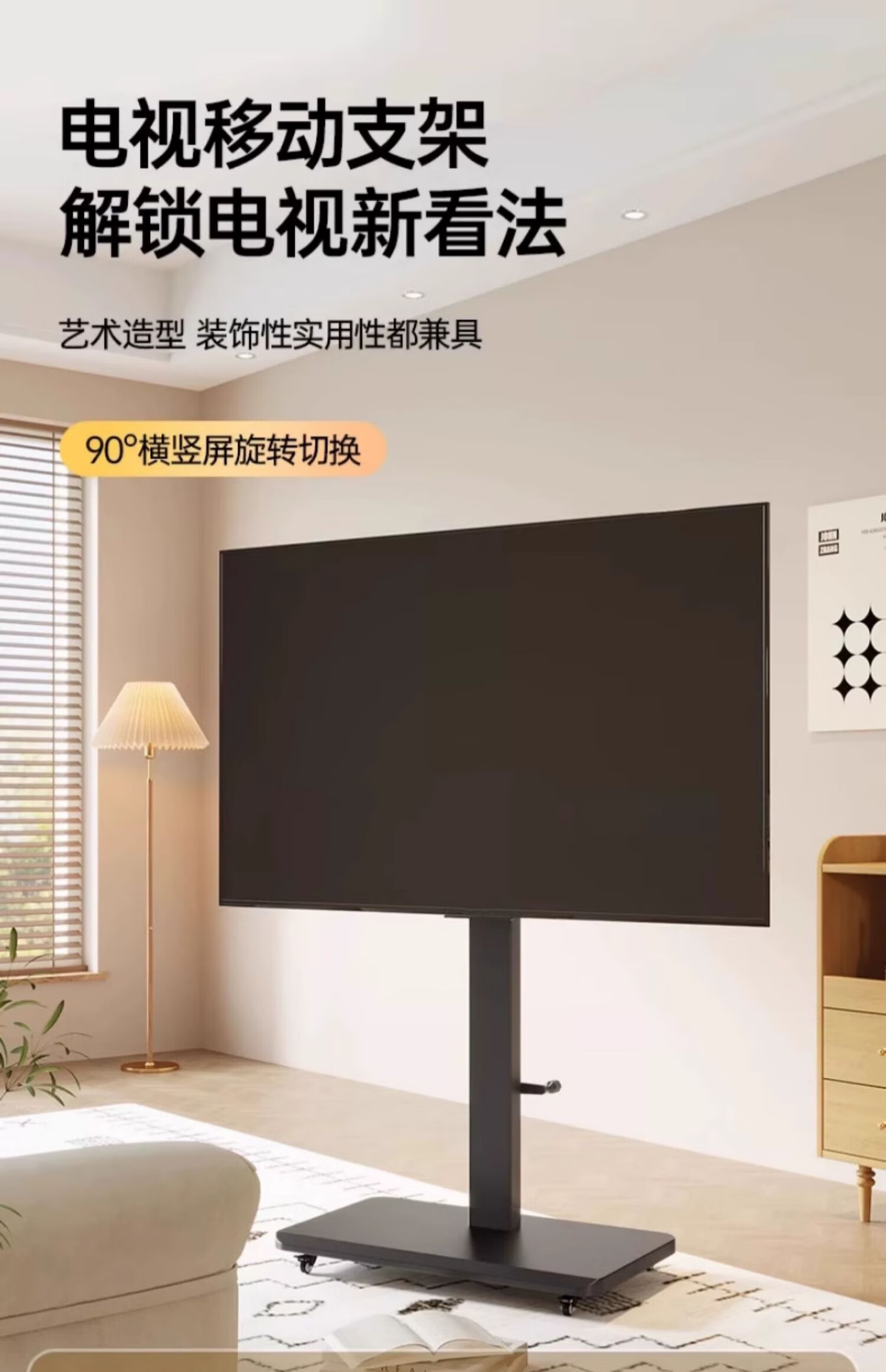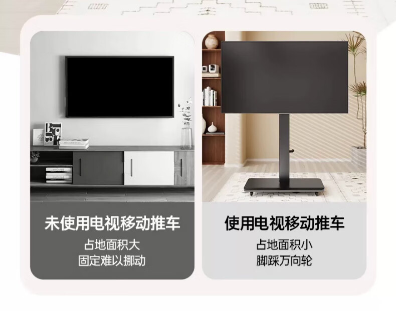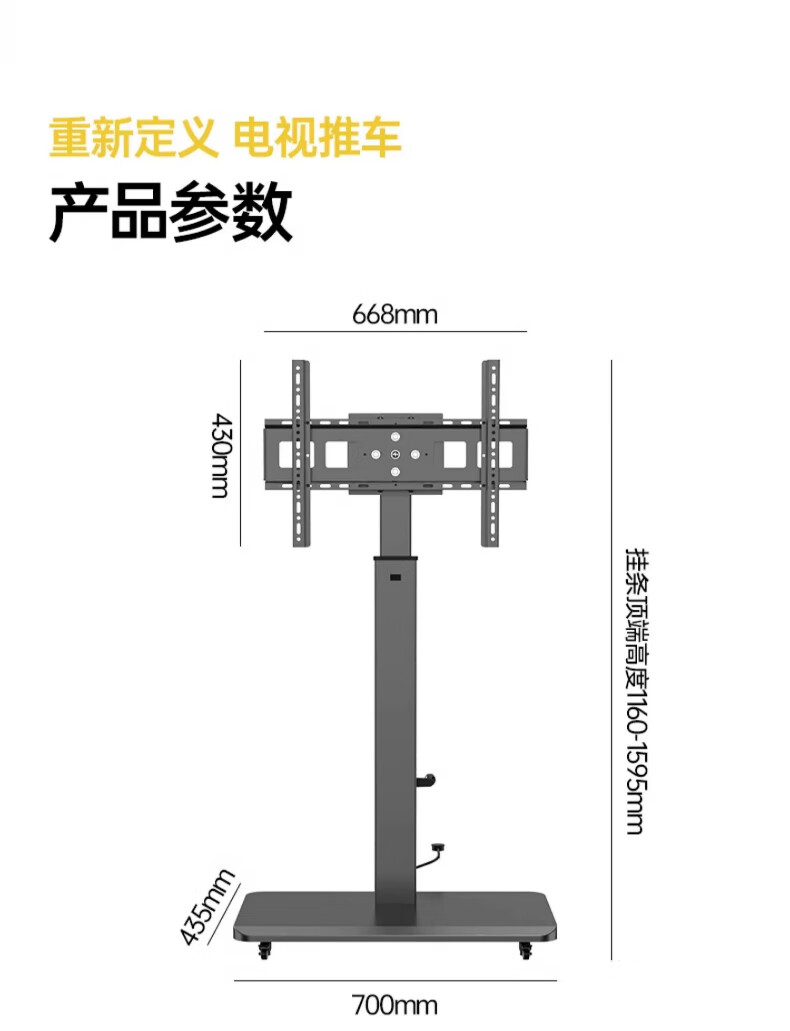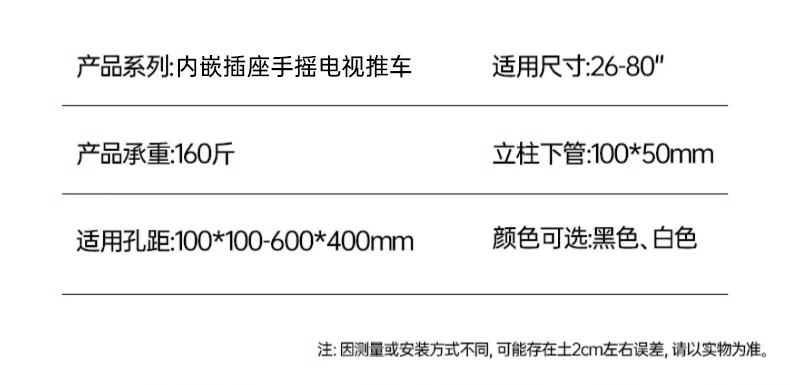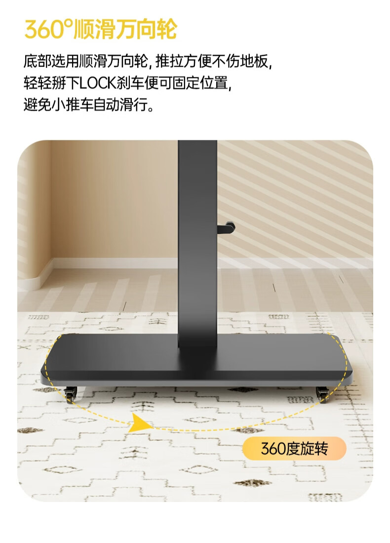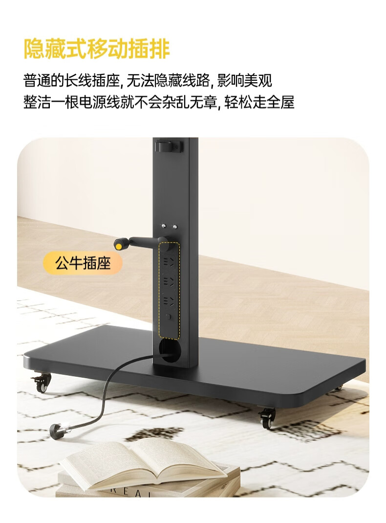 Movable TV stand floor-standing built-in plug-in hand-crank lift wheel trolley monitor universal hanger black 26-65 universal horizontal and vertical screen rotation in seconds