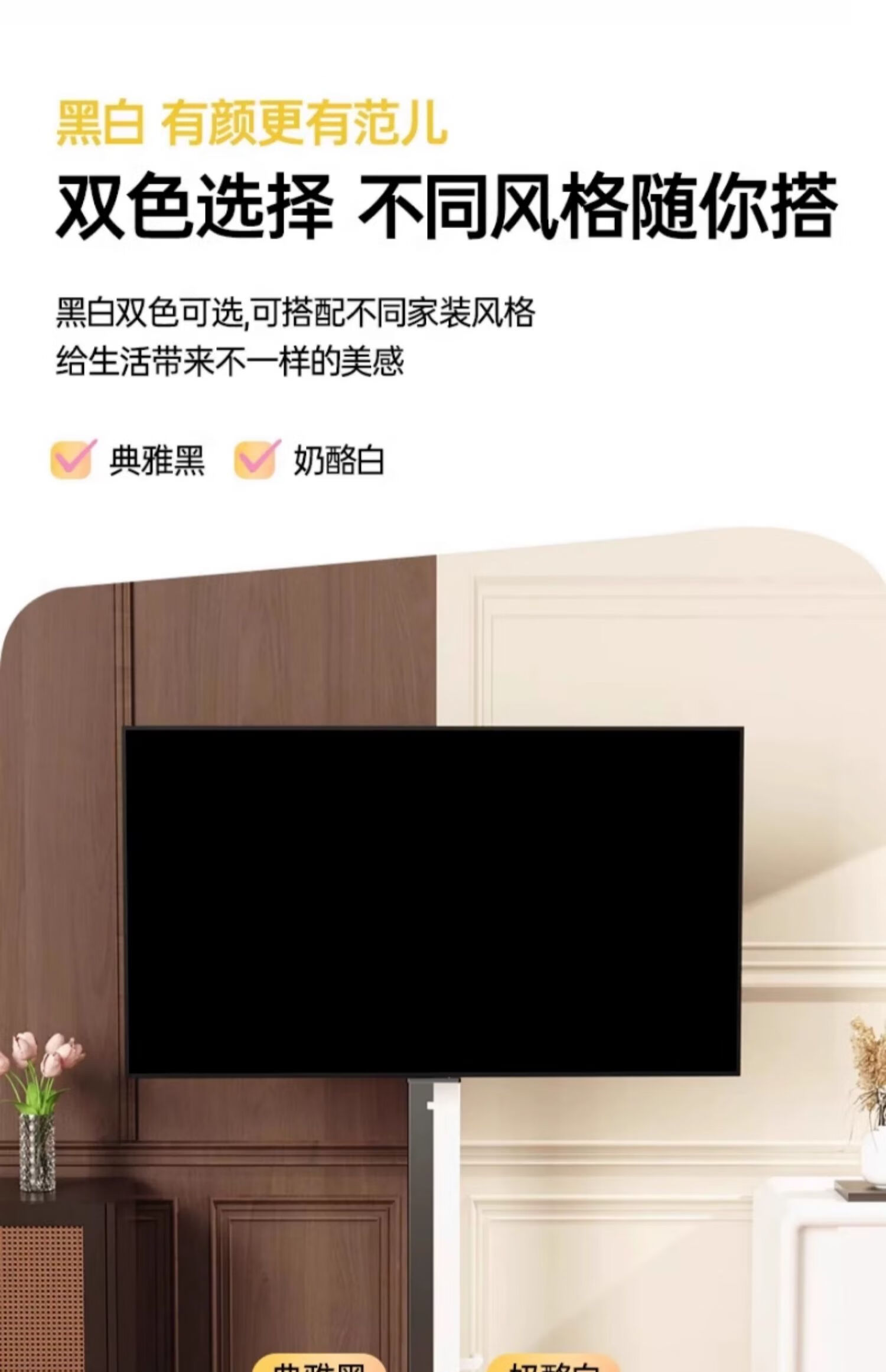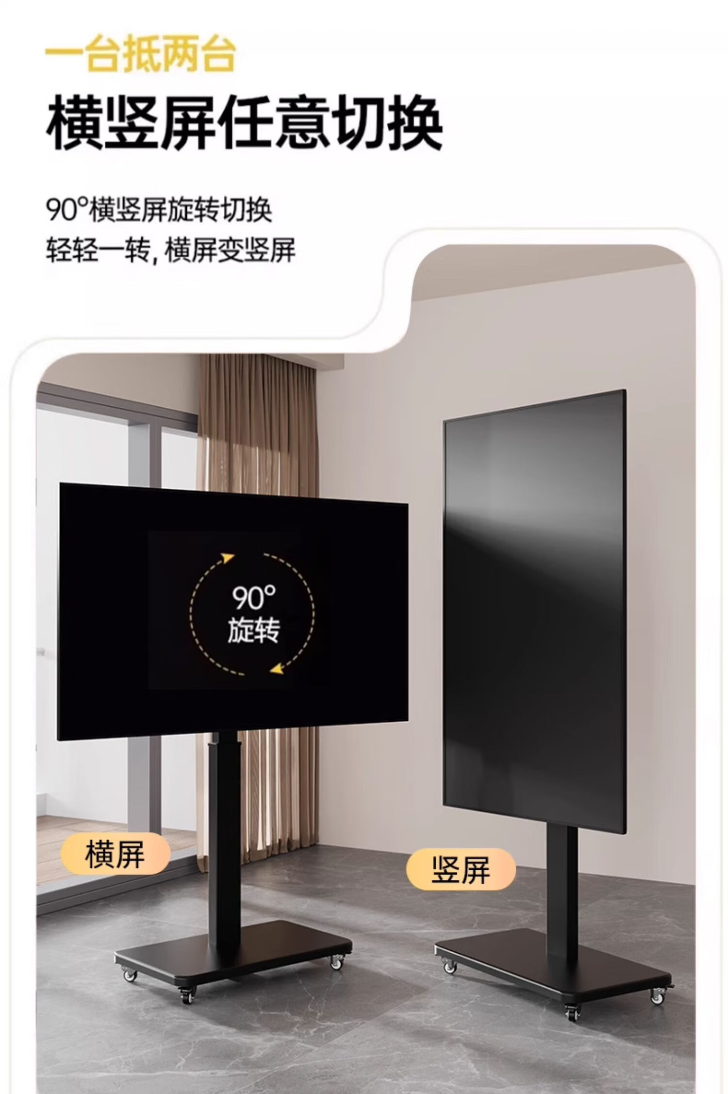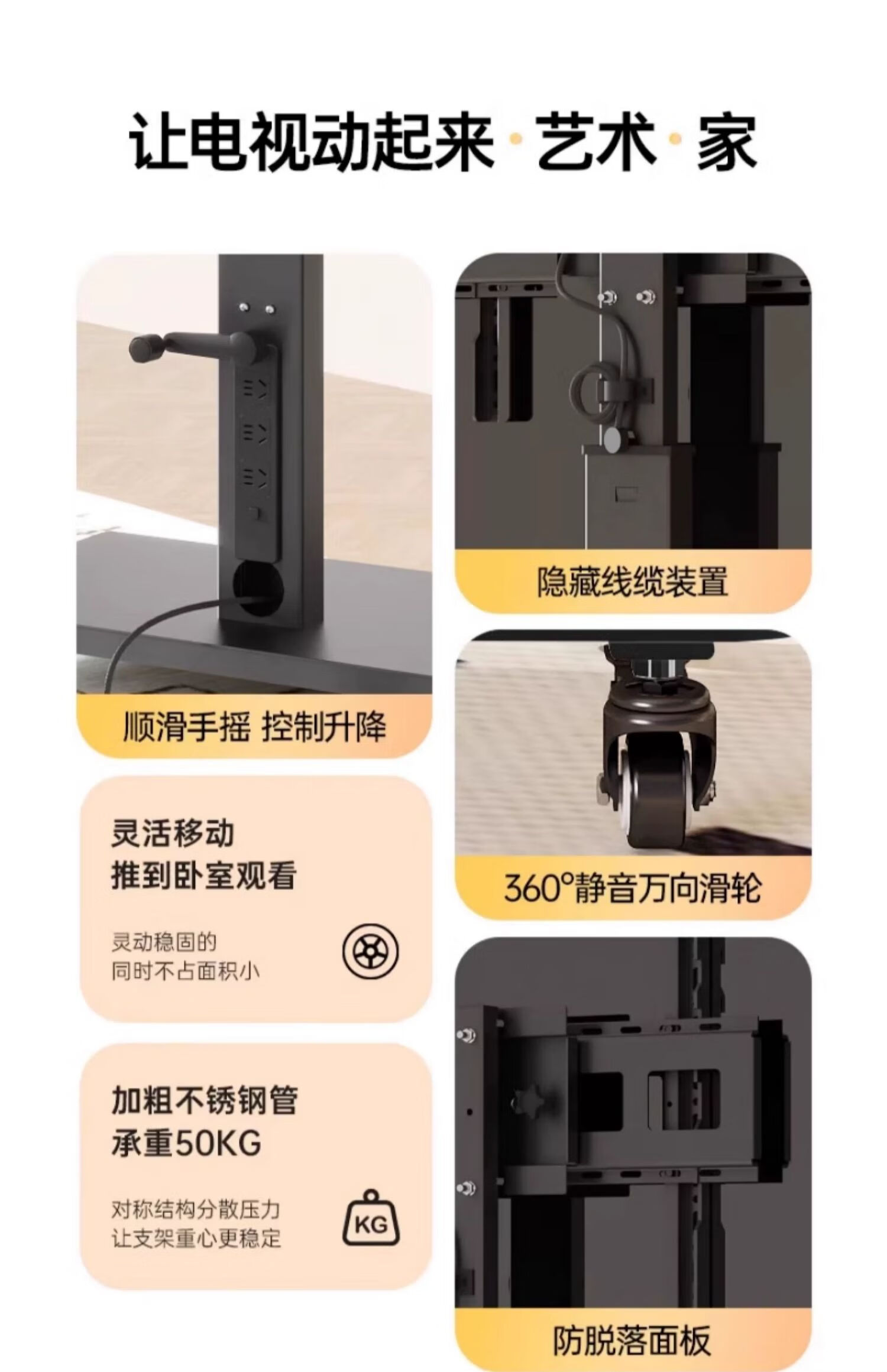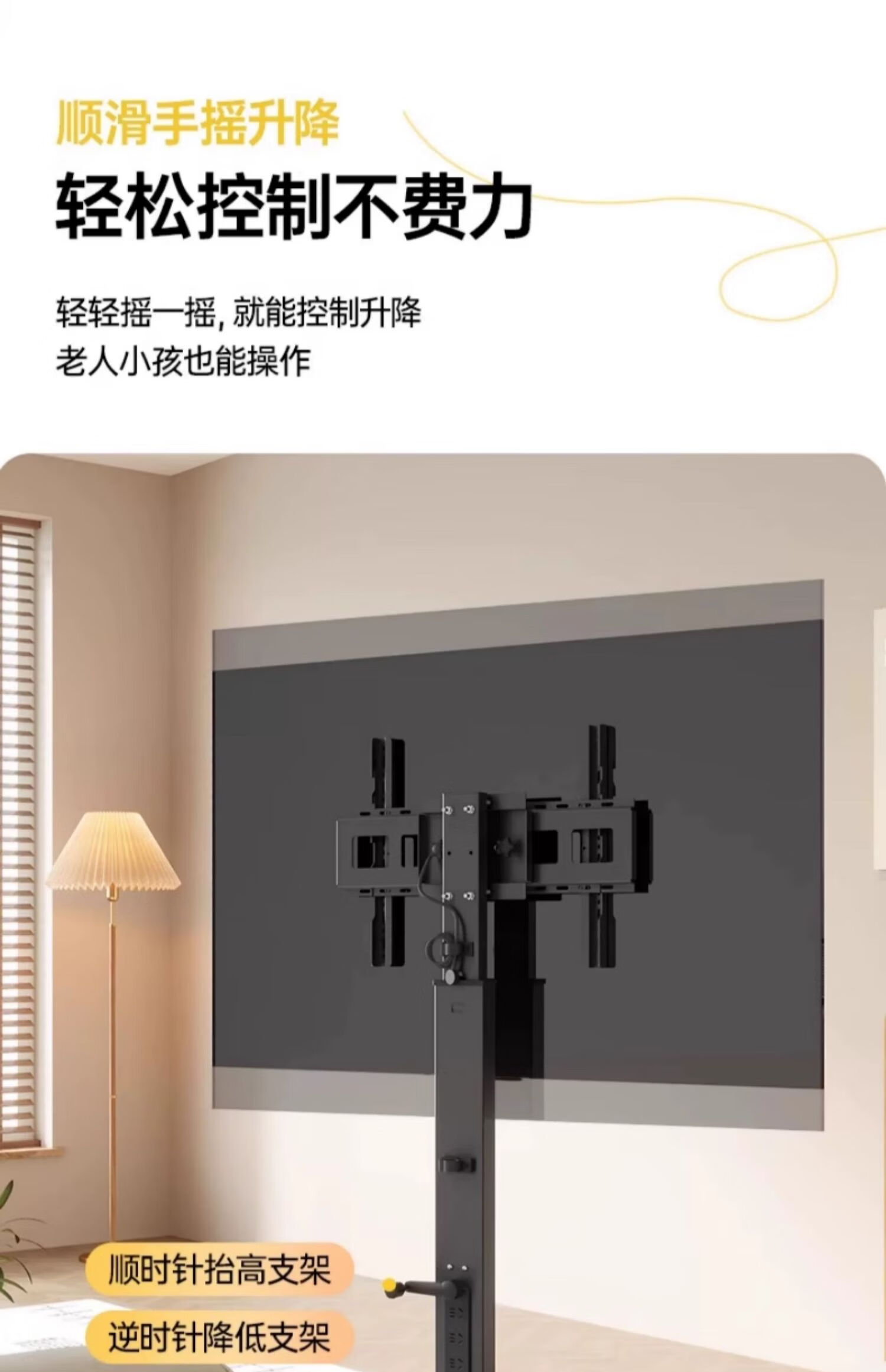 Movable TV stand floor-standing built-in plug-in hand-crank lift wheel trolley monitor universal hanger black 26-65 universal horizontal and vertical screen rotation in seconds