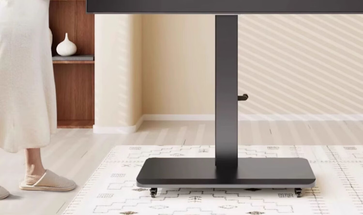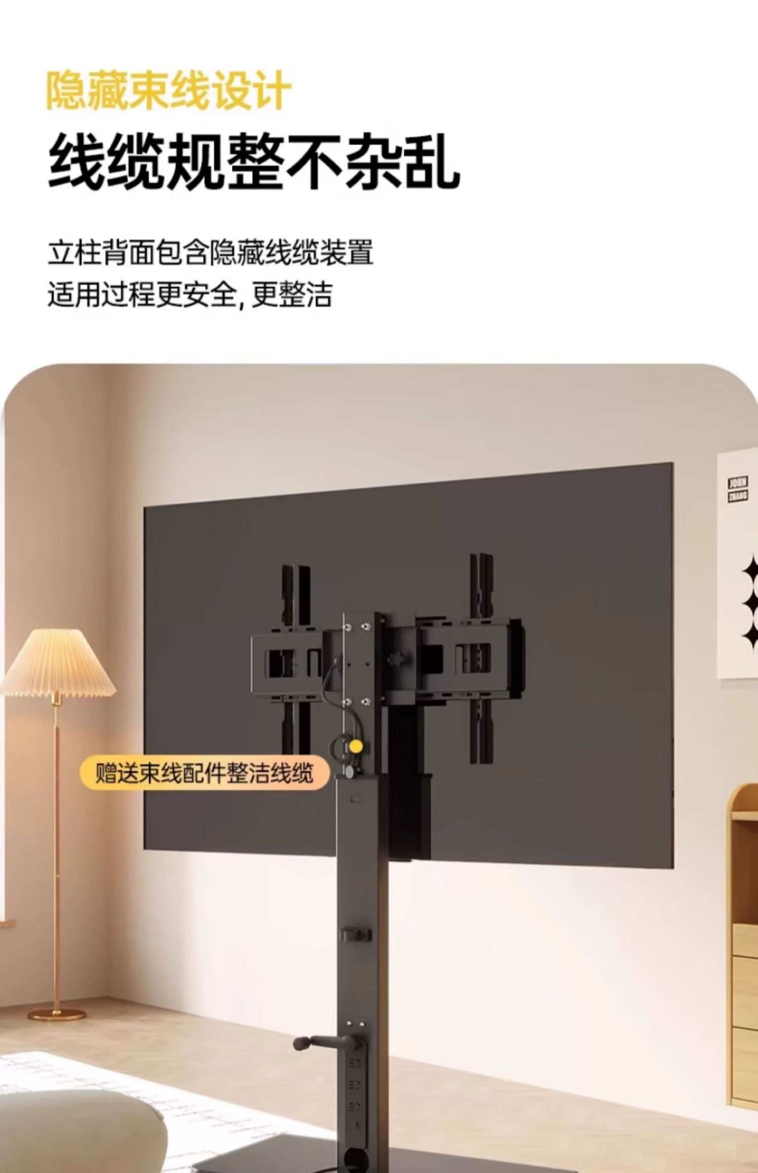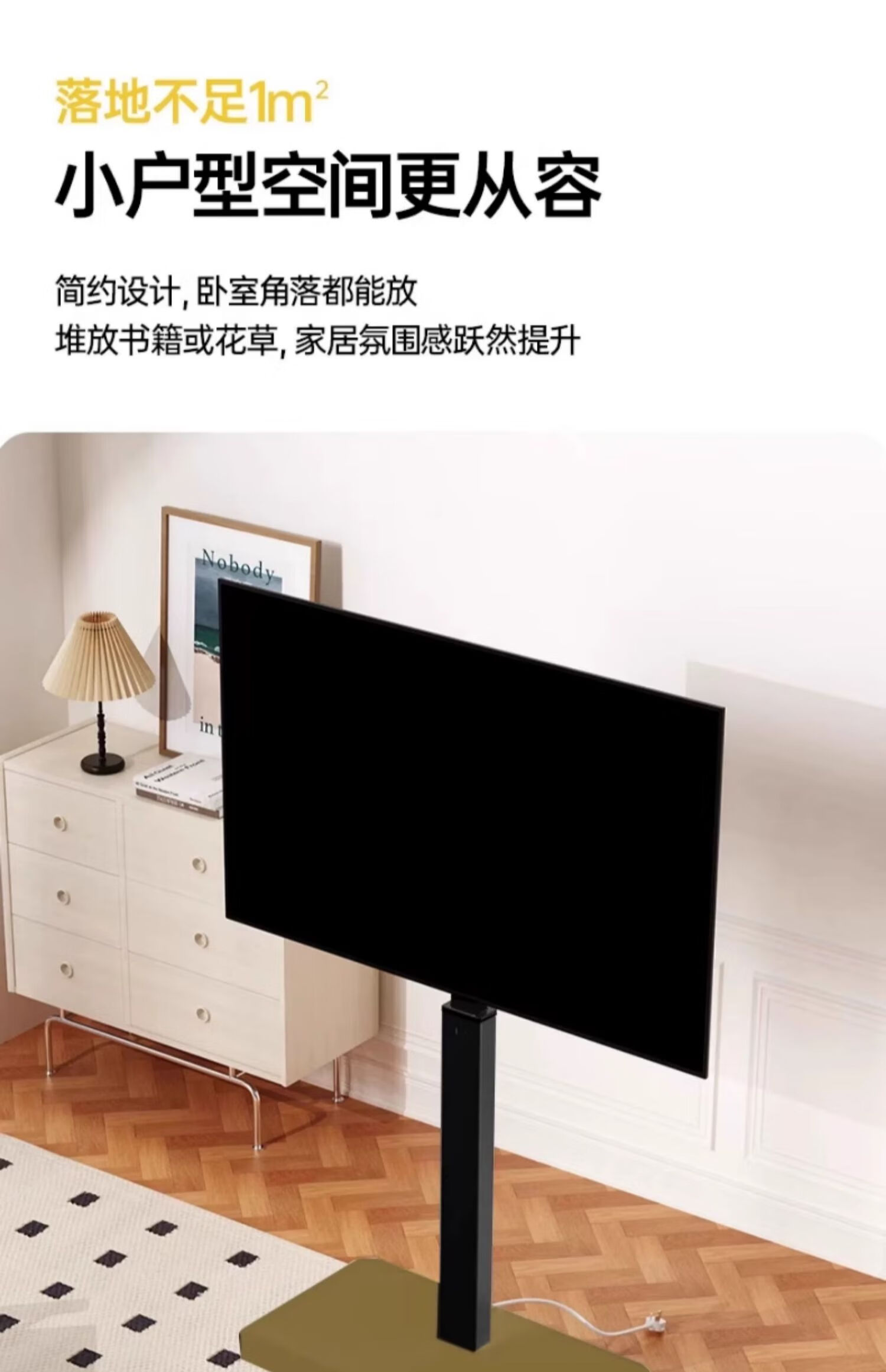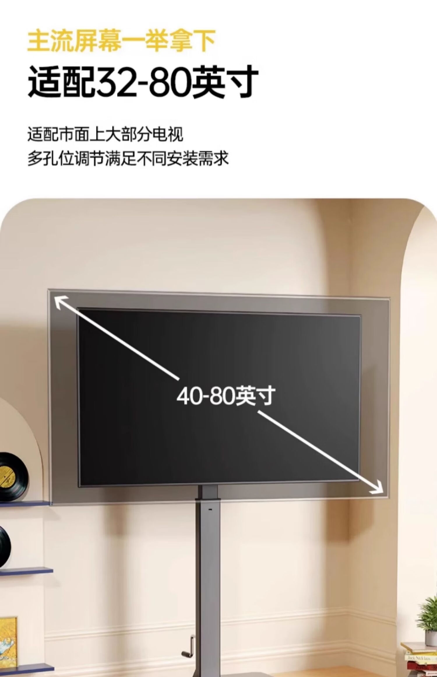 Movable TV stand floor-standing built-in plug-in hand-crank lift wheel trolley monitor universal hanger black 26-65 universal horizontal and vertical screen rotation in seconds